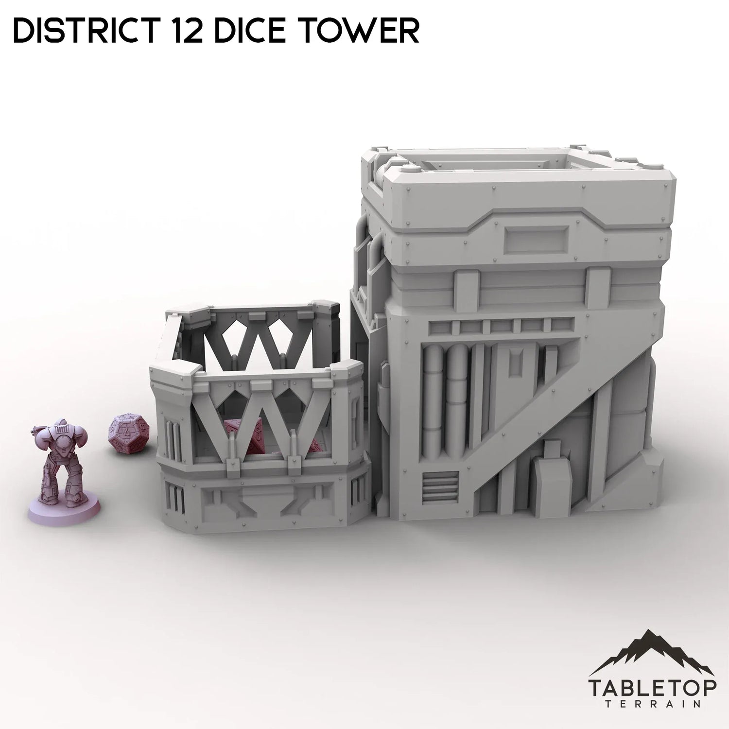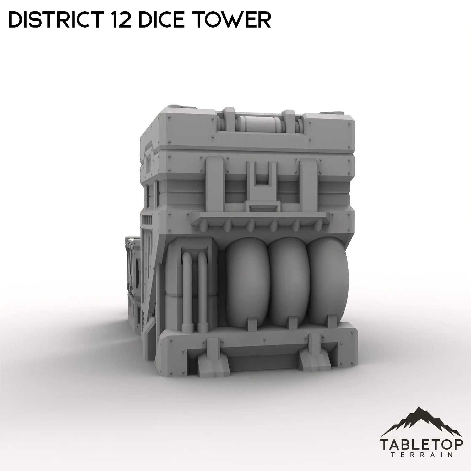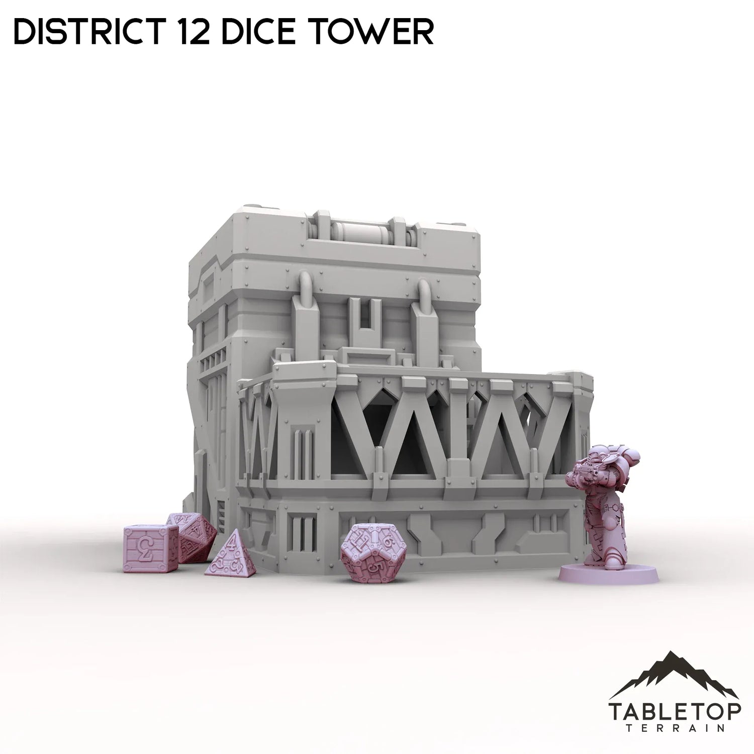 Der District 12 Dice Tower ist ein robuster Turm zum Würfeln am Tisch. Der Turm ist im Stil eines Industriegebäudes für Themenspiele gestaltet und wird zur einfachen Aufbewahrung in zwei Teilen geliefert.
