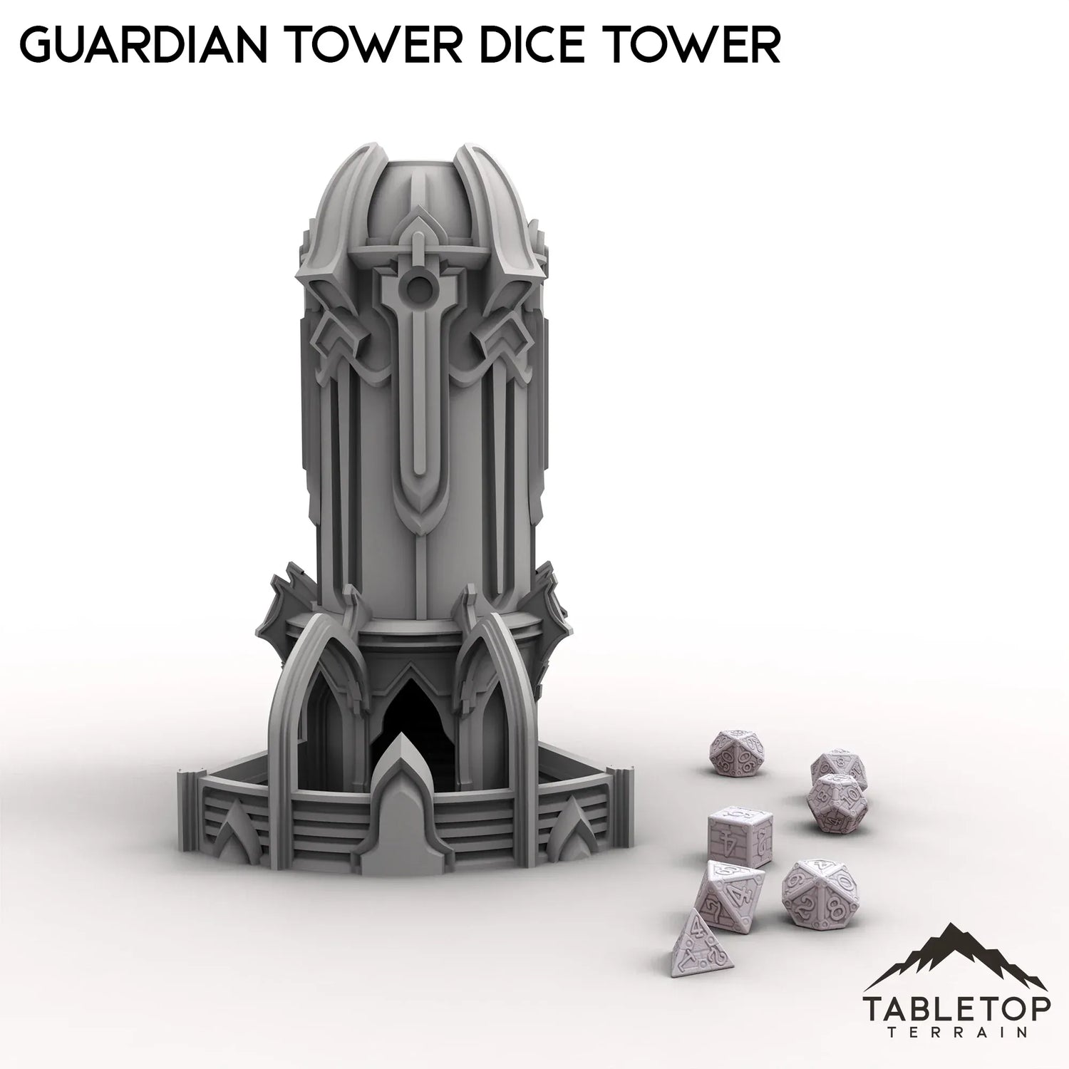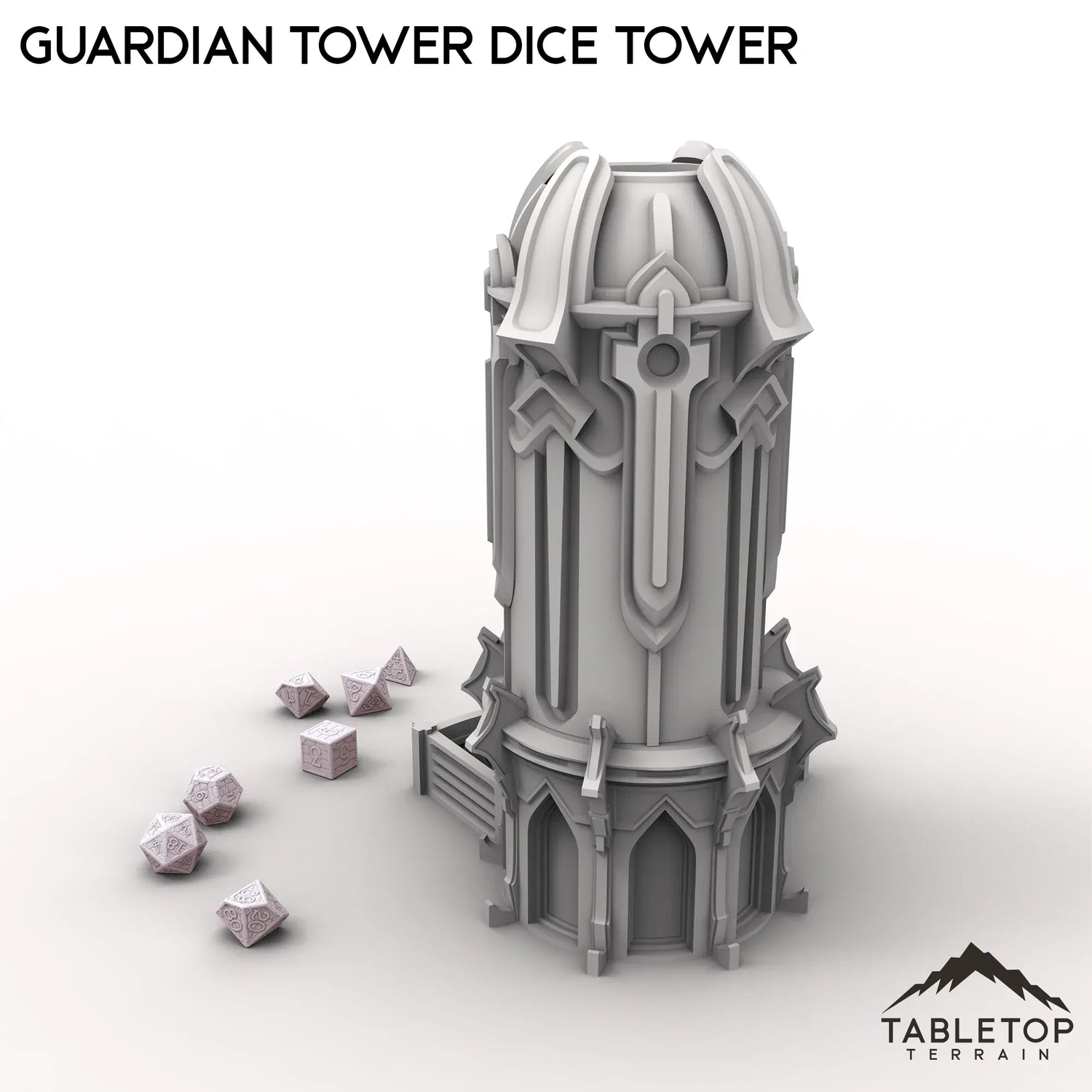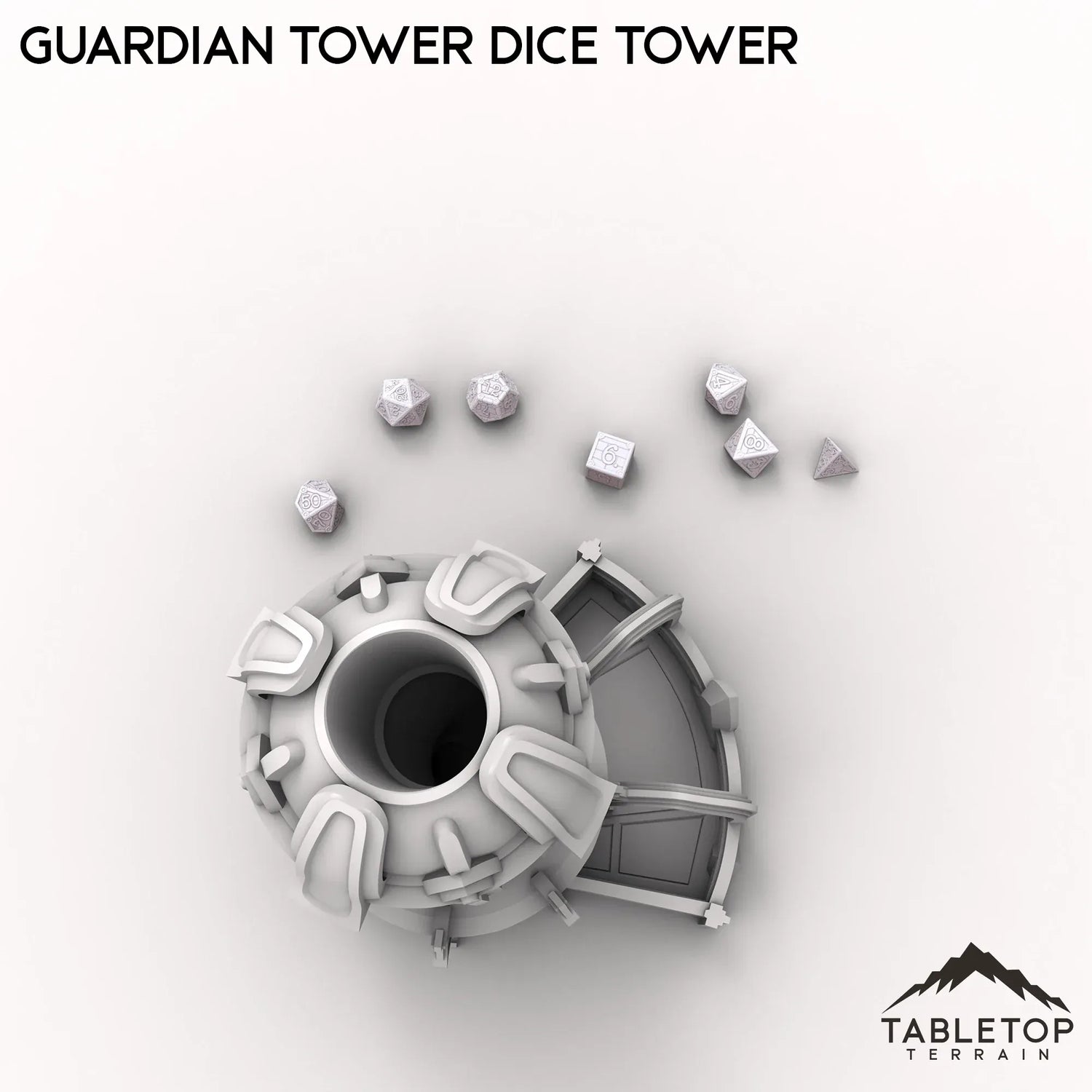 Der Guardian Tower Würfelturm ist für nahezu jedes Genre geeignet und somit der perfekte Würfelturm für verschiedene Spiele. Der Turm besticht durch sein schlichtes, aber stilvolles Design, eine Öffnung oben, die groß genug für Würfel in Standardgröße ist, und einen kleinen „Hof“, der die Würfel auffängt, sobald sie fallen. Der Turm wird in zwei Teilen geliefert, um die Lagerung und den Transport zu erleichtern.