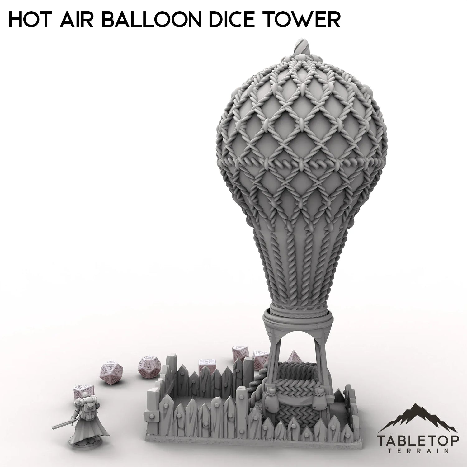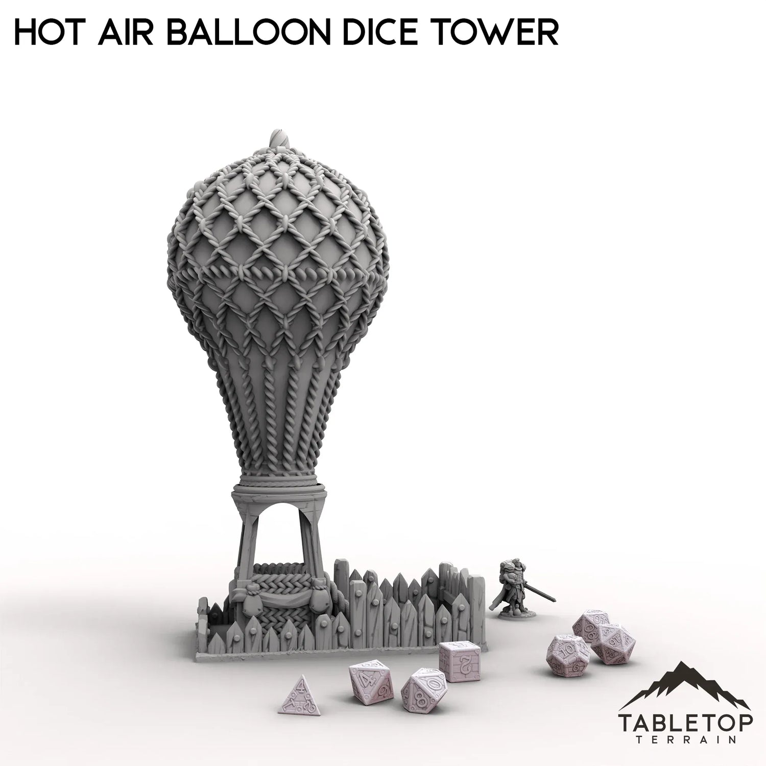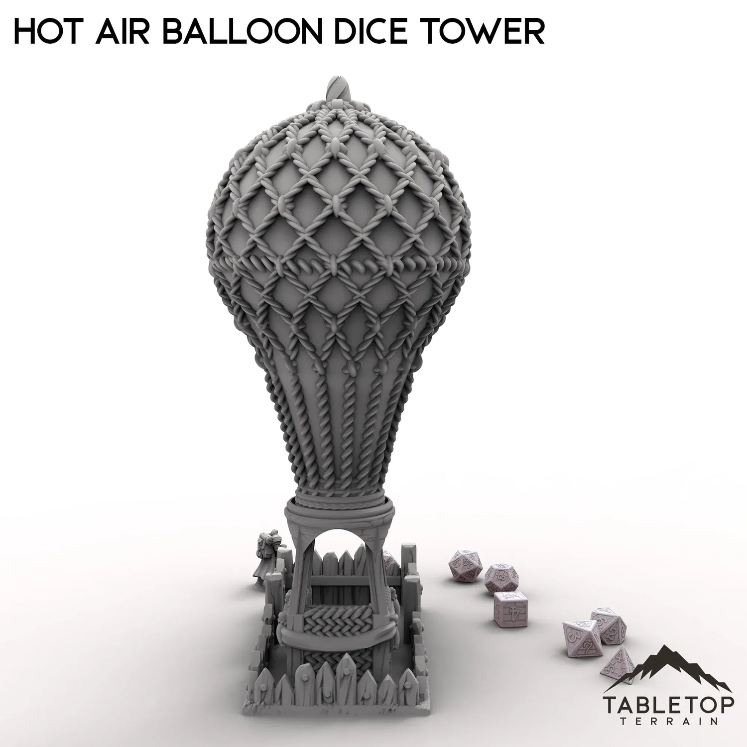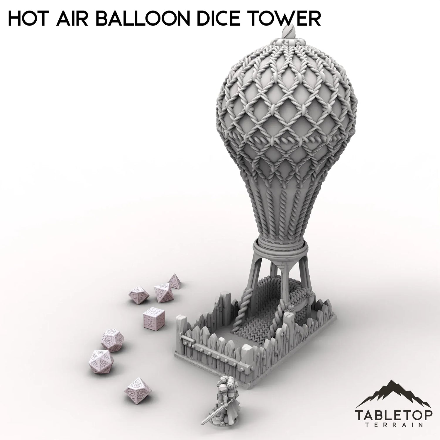 Ein Würfelturm aus Heißluftballons schwebt über Ihnen, von dessen Spitze Würfel fallen und in den Korb darunter rollen. Eine unterhaltsame und einzigartige Möglichkeit, Ihrem Spiel etwas Abenteuer zu verleihen.
