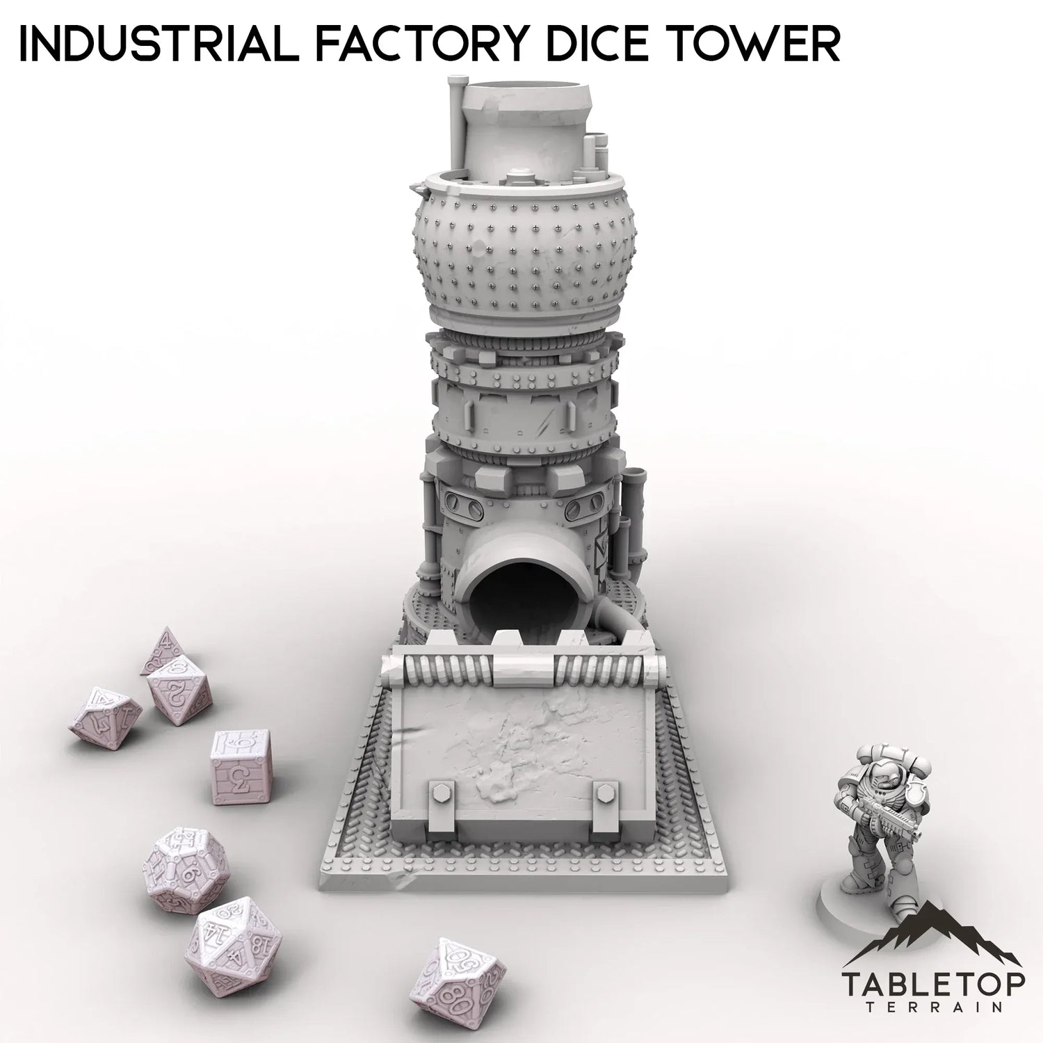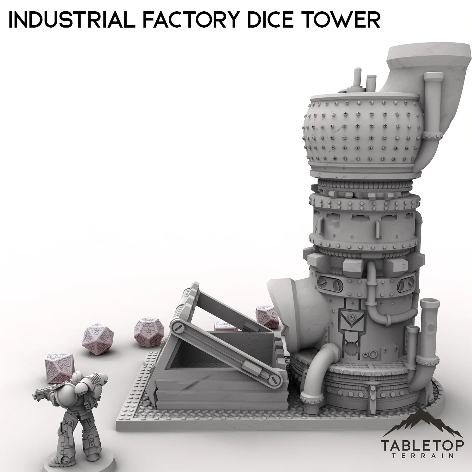 Dieser industrielle Fabrik-Würfelturm hat ein robustes, ofenähnliches Design. Werfen Sie die Würfel von oben hinein, und sie purzeln durch die Maschinerie, klirren nach unten und fließen schließlich aus einem Rohr am Boden. Eine solide, schnörkellose Art zu würfeln – mit etwas robustem Stil.
