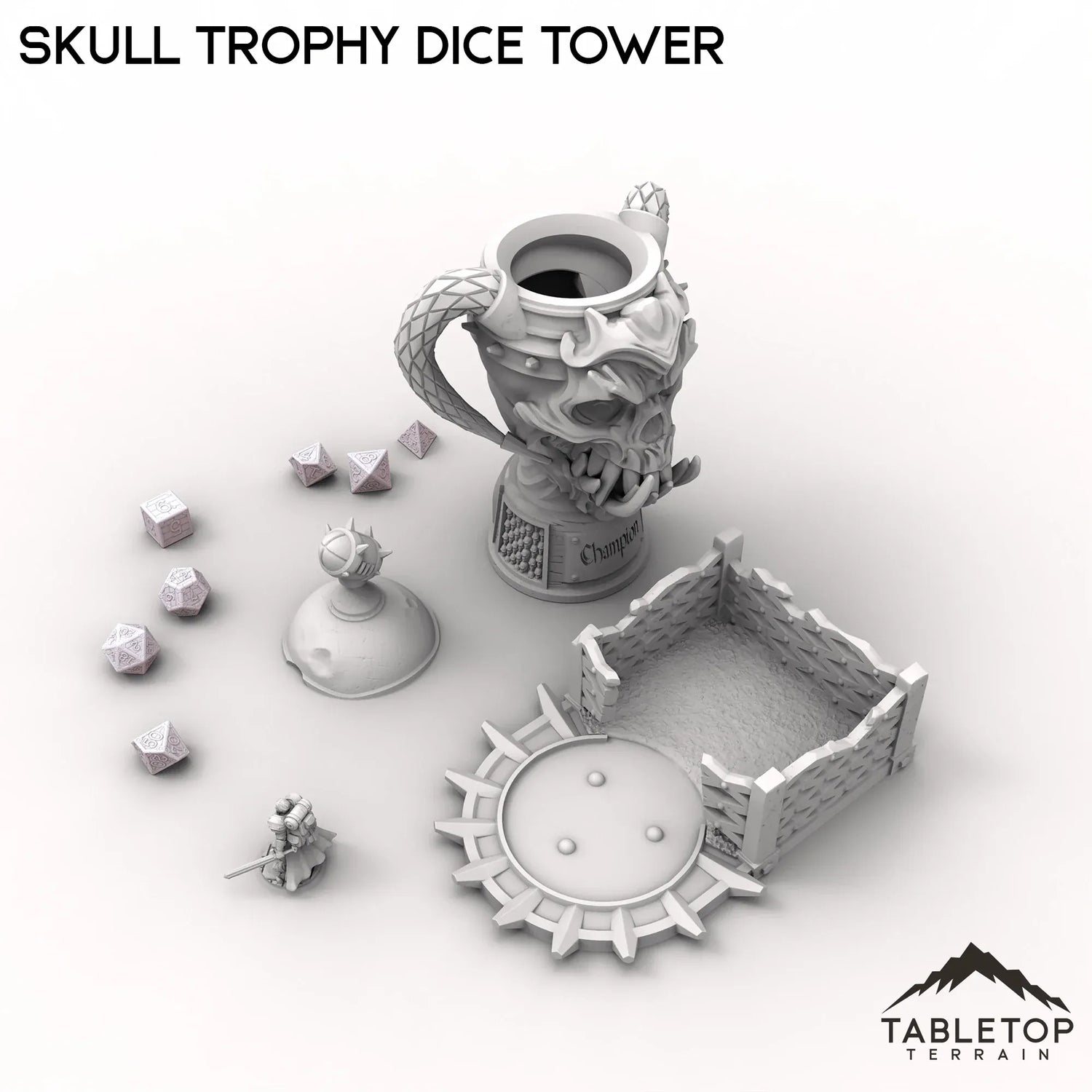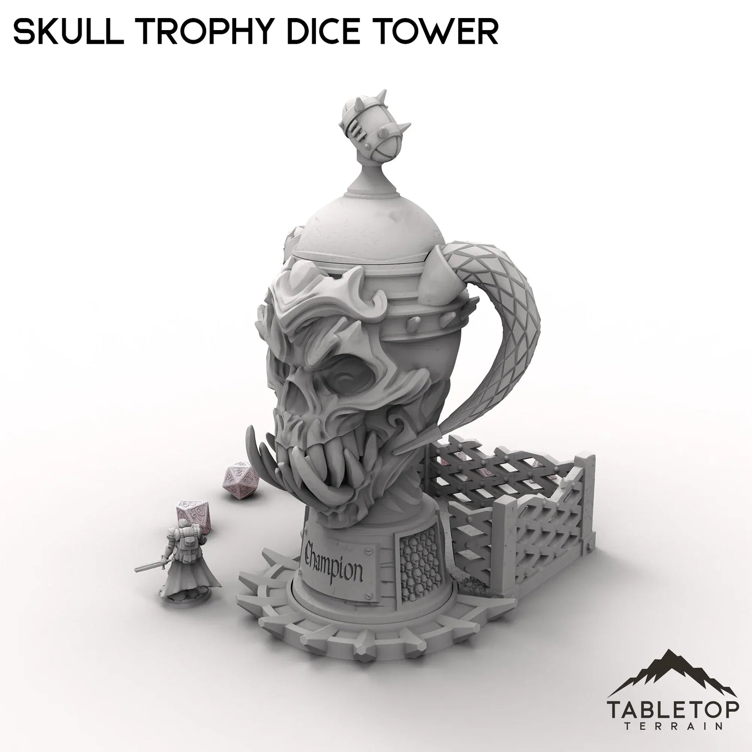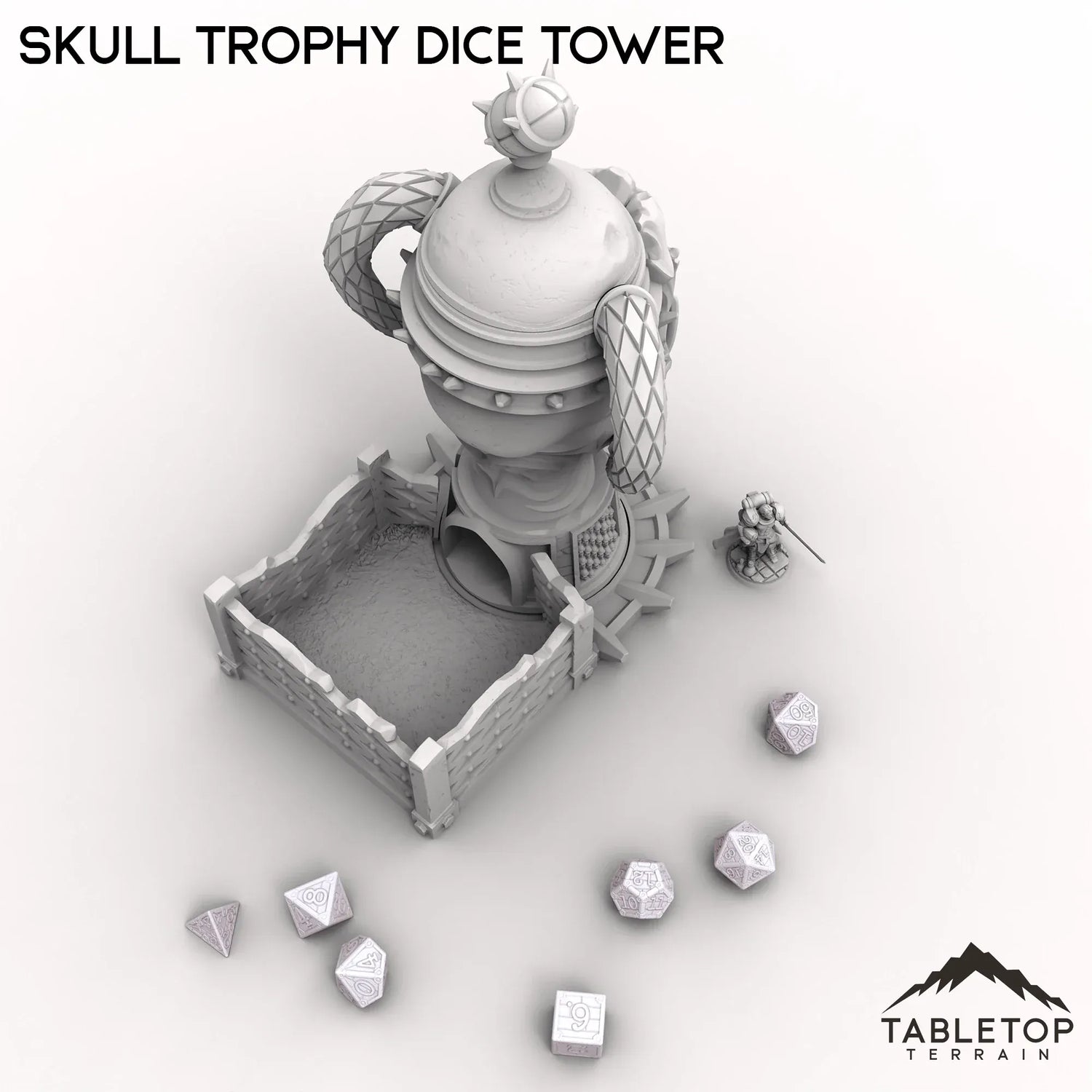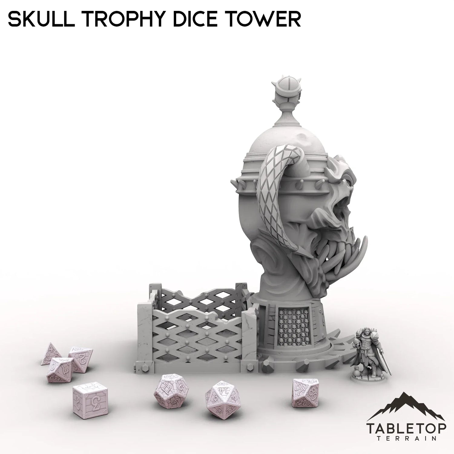 Ein Totenkopf-Trophäen-Würfelturm (3 Stück) mit den Maßen 136 x 182 x 226 mm / 5,4 x 7,2 x 8,9 Zoll