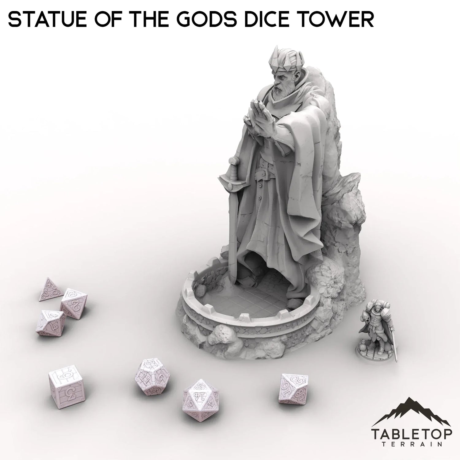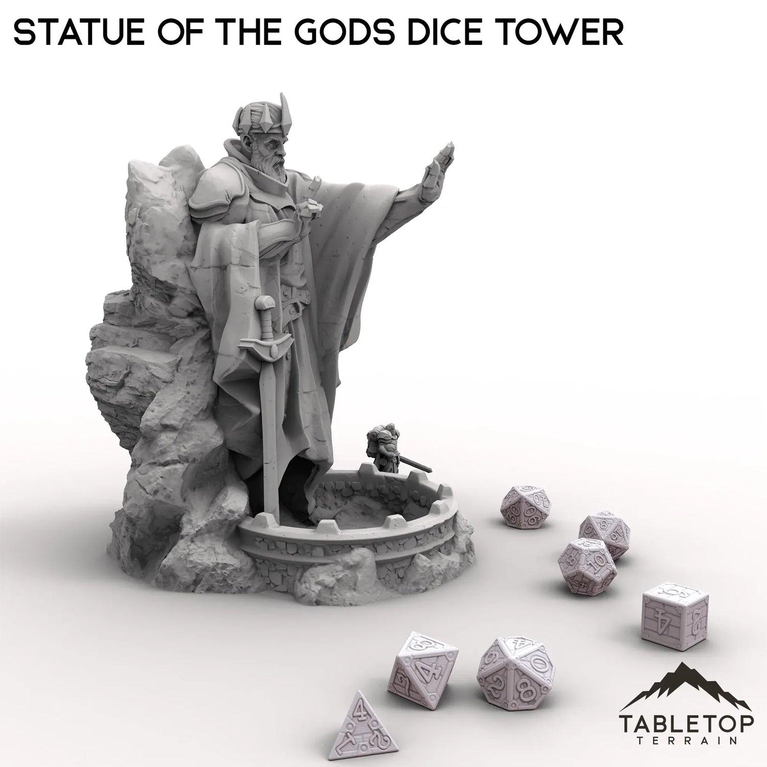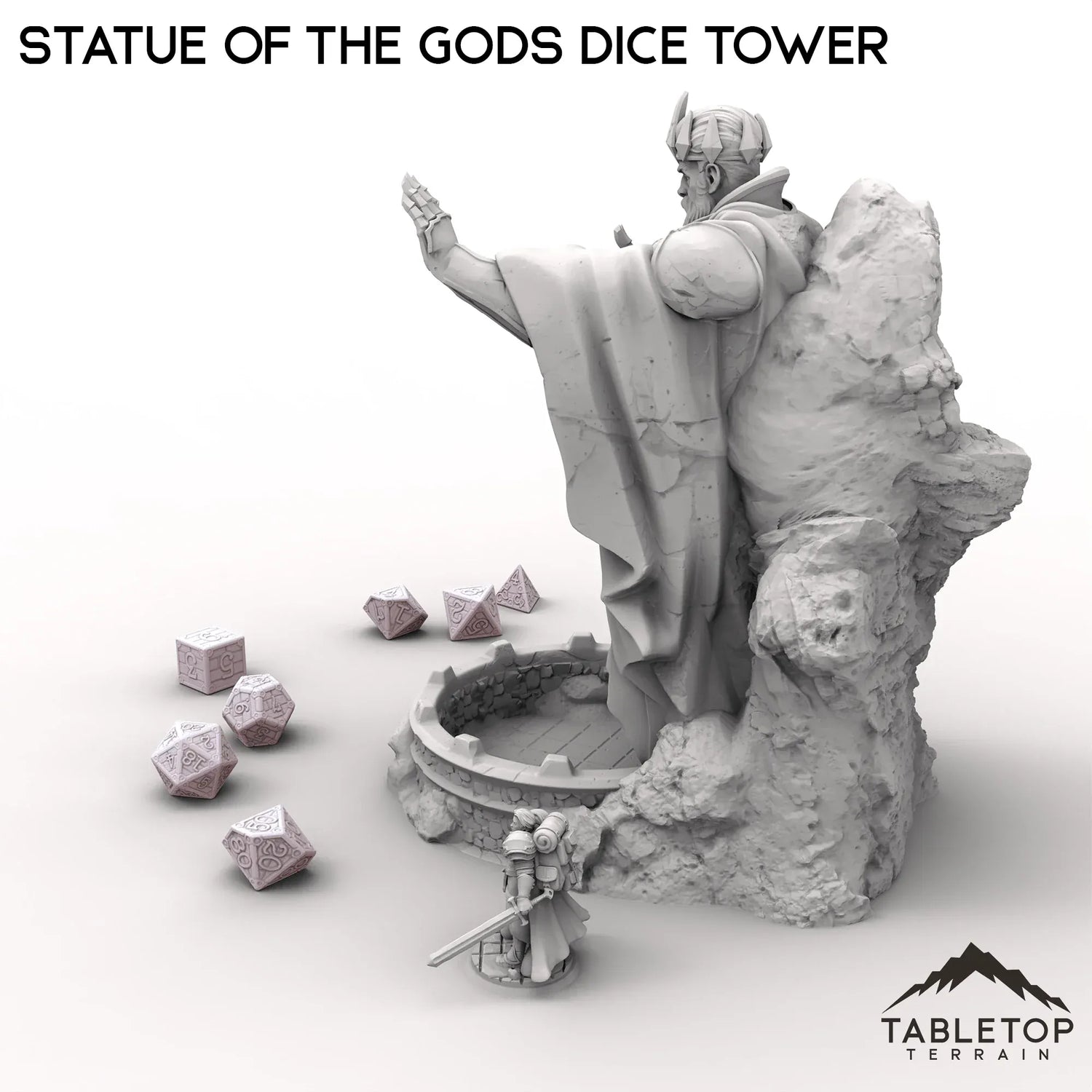 Der Würfelturm „Statue of the Gods“ zeigt einen mächtigen Kreuzritter, der aufrecht steht und seine Handfläche wie einen Zauberspruch ausstreckt. Mit seinen aufwendigen Details verleiht dieser beeindruckende Turm Ihrem Spiel eine Aura göttlicher Stärke und Magie.