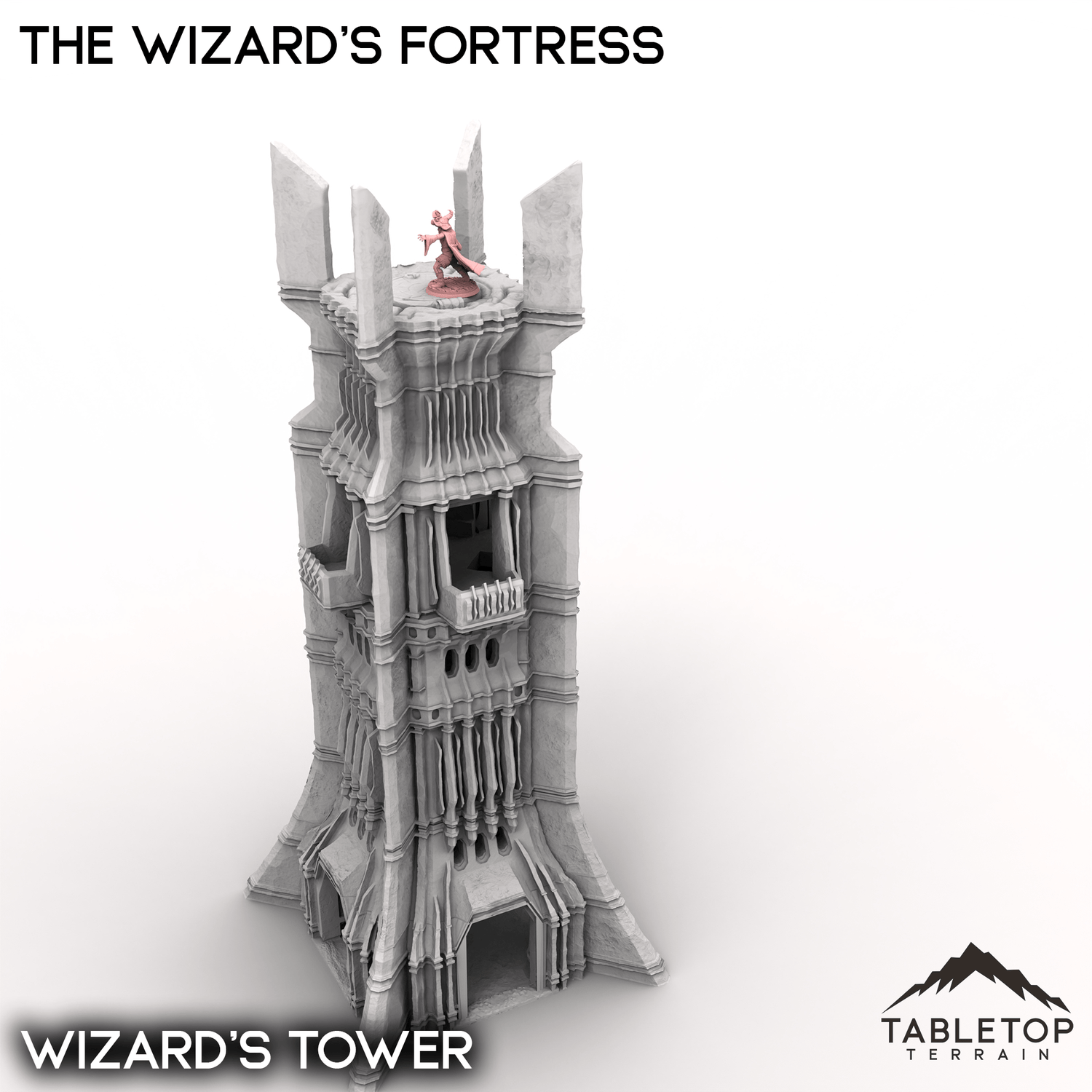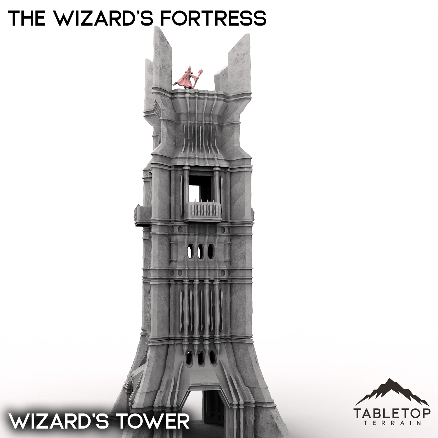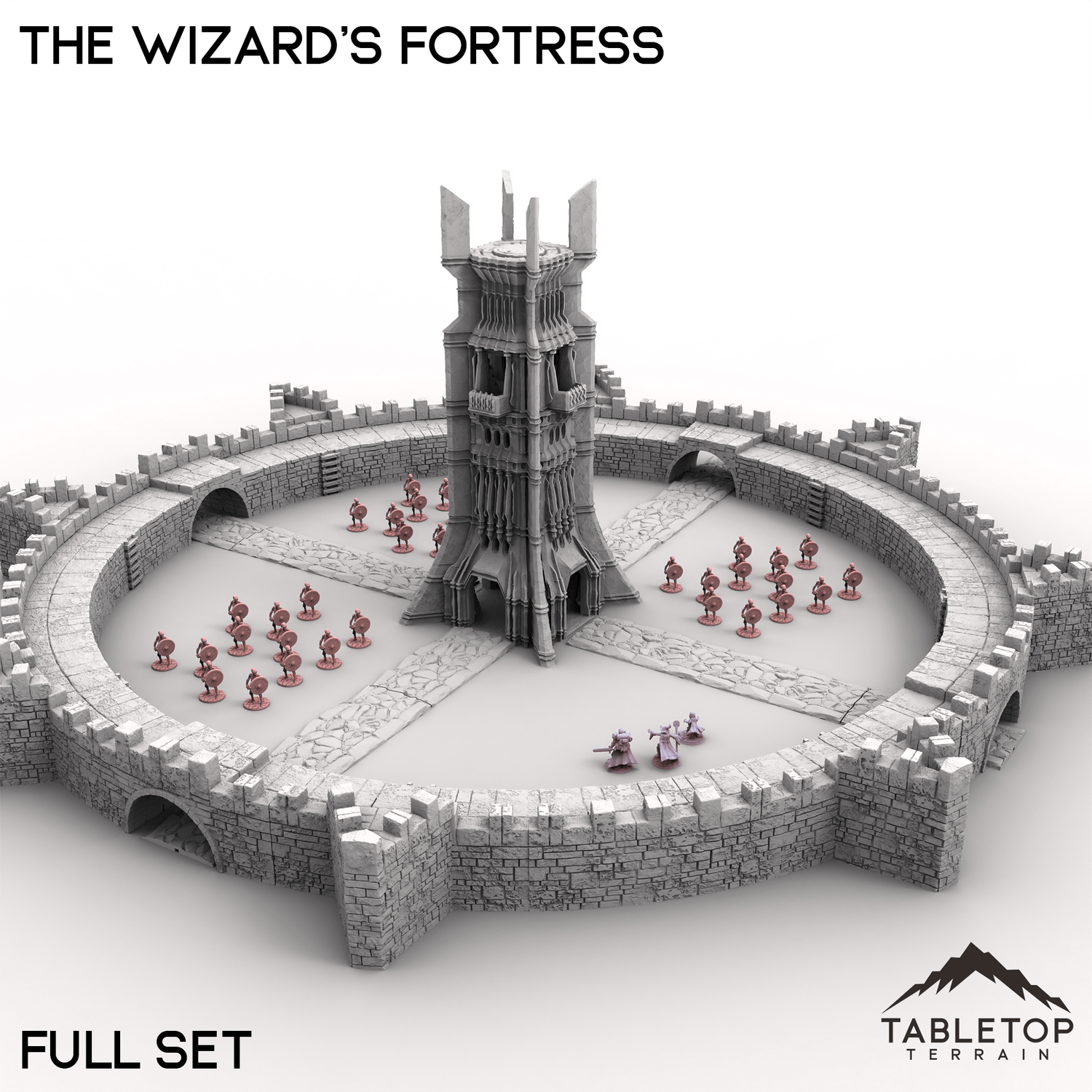 Am Ende des Gebirges, in der Nähe des Landes der Reitermeister, befindet sich die Festung des Zauberers. Der von einer dicken Mauer aus Fels und Metall umgebene Turm aus dunklem Stein ist kilometerweit gut sichtbar. Einst war er die Domäne eines weisen und mächtigen Zauberers, doch nun ist er der Kontrolle des bösen Herrschers zum Opfer gefallen. Der Turm ist halbmodular und die Wände können für Ihren Tisch beliebig angeordnet werden. Die Wände selbst haben Leitern am inneren Ring. Der Turm ist innen leicht detailliert und verfügt über verschiedene Stockwerke und Treppen für jeden Abschnitt. Das massive Mauerset kann eine große Zahl an Miniaturen gleichzeitig für gewaltige Belagerungsschlachten und Angriffe aufnehmen. Die Mauersets – und das vollständige Set – enthalten Erd- und Steinpfade für jedes Tor in den Mauern.