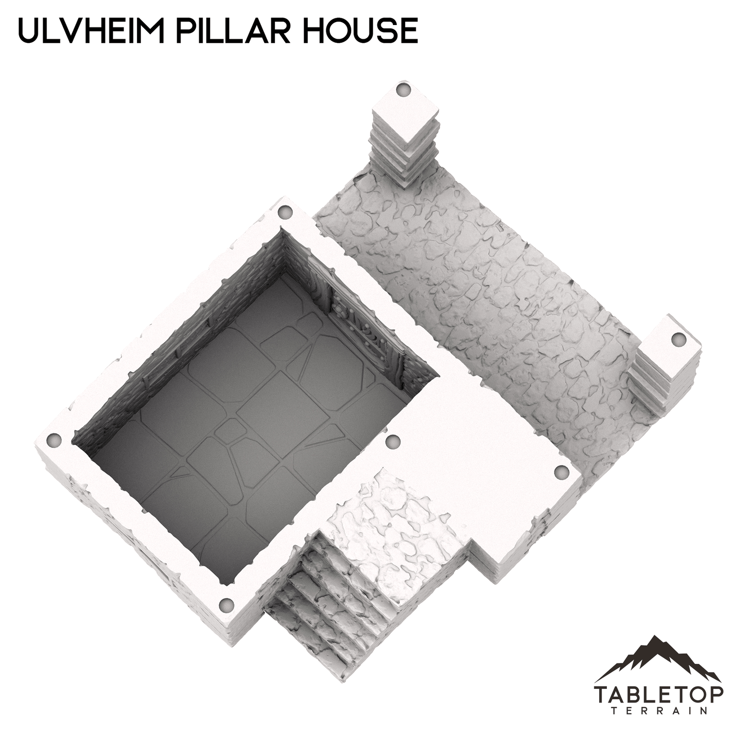 Das Ulvheimer Säulenhaus ist ein zweistöckiges mittelalterliches Steinhaus mit einem hohen Dachgaubendach. Jede Etage ist abnehmbar, damit die Miniaturen darin platziert werden können, und kann entweder mit Stapelstiften oder Magneten befestigt werden.