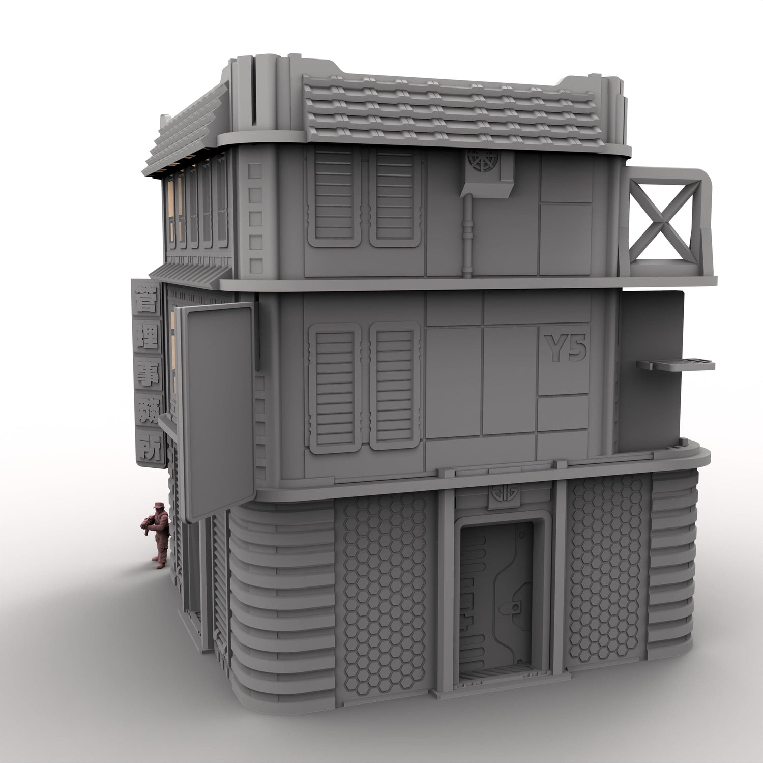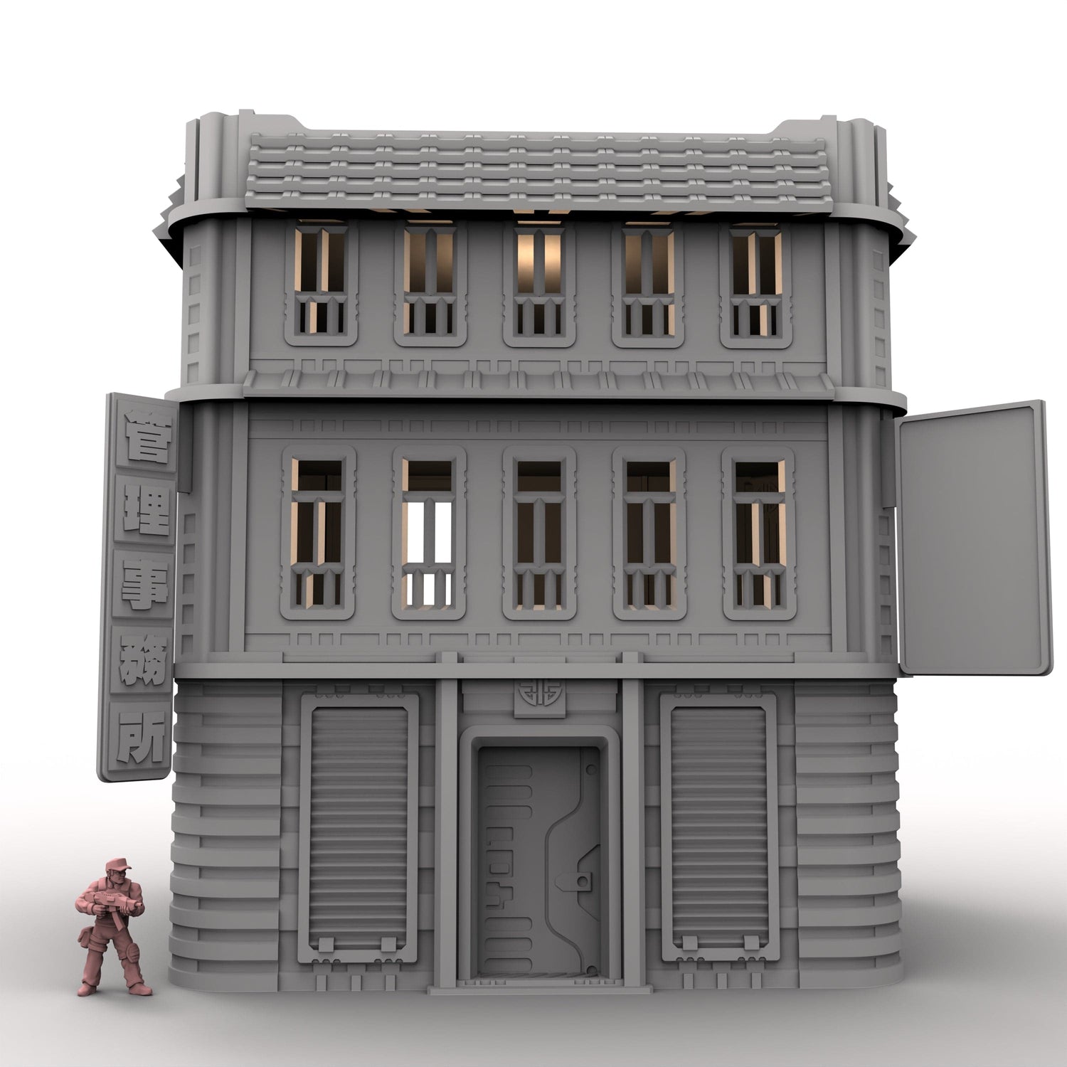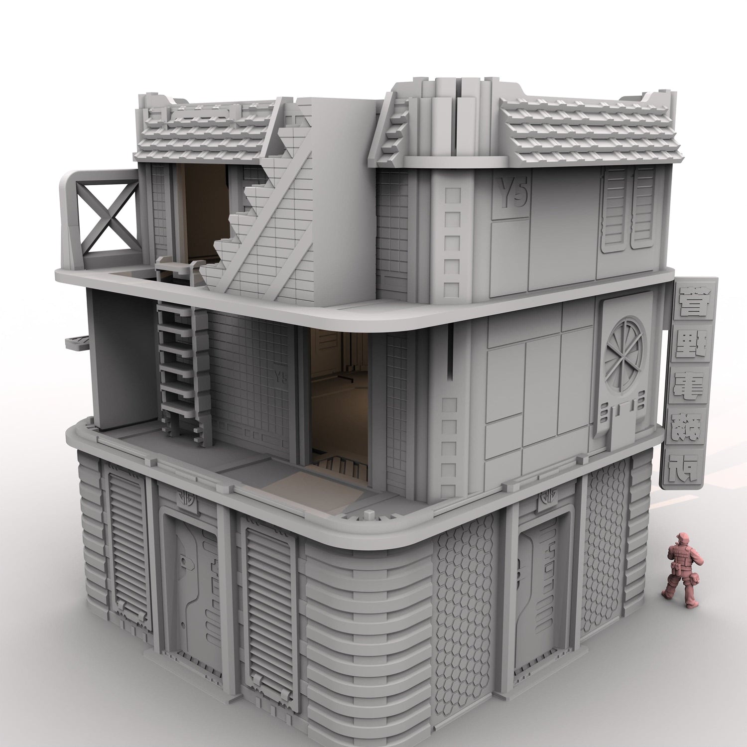 Der Turm ist für MCP vorskaliert oder passt zu den meisten anderen Spielen im Maßstab 28–40 mm.