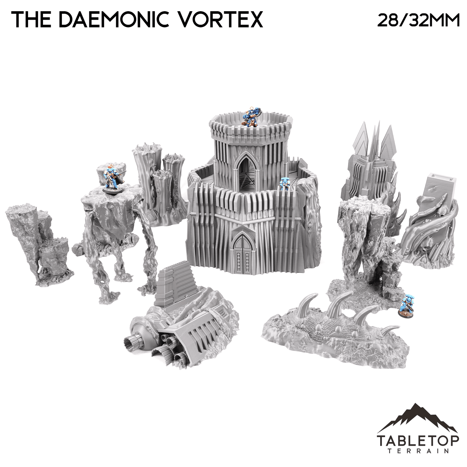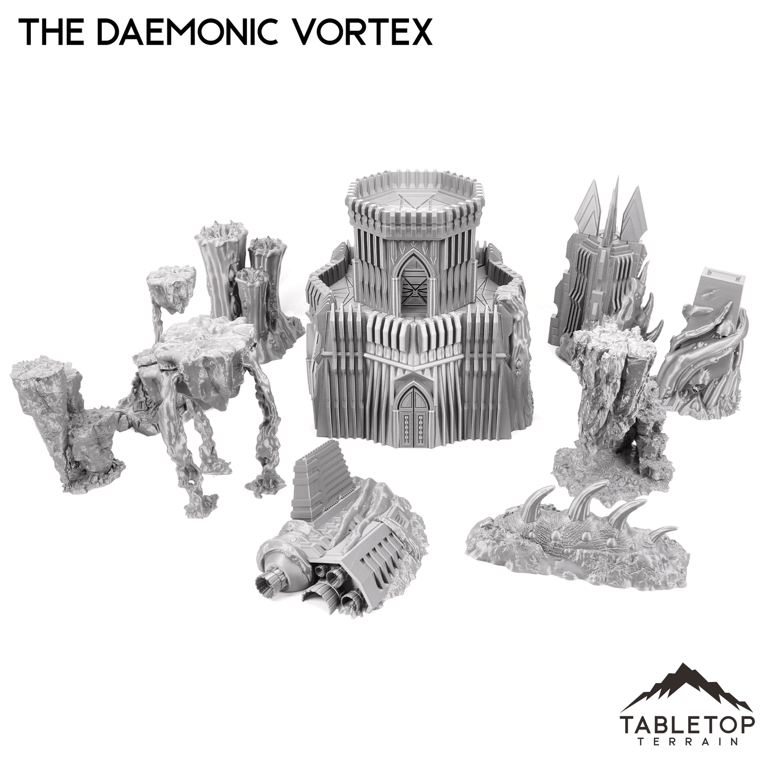 Dieses Grimdark-Tischset stellt die Ödlandruinen von Chaotic Demon dar. Es besteht aus vielen einzigartigen Teilen, die sich gut zu einem vollständigen Schlachtfeld zusammenfügen. Das vollständige Set füllt einen 6x4-Tisch mit vielen dynamischen Geländeelementen, einschließlich großer Sichtlinienblockierungen auf den höheren Strukturen. Jeder Artikel ist einzeln erhältlich, aber wenn Sie das vollständige Set kaufen, ist ein integrierter Rabatt enthalten.