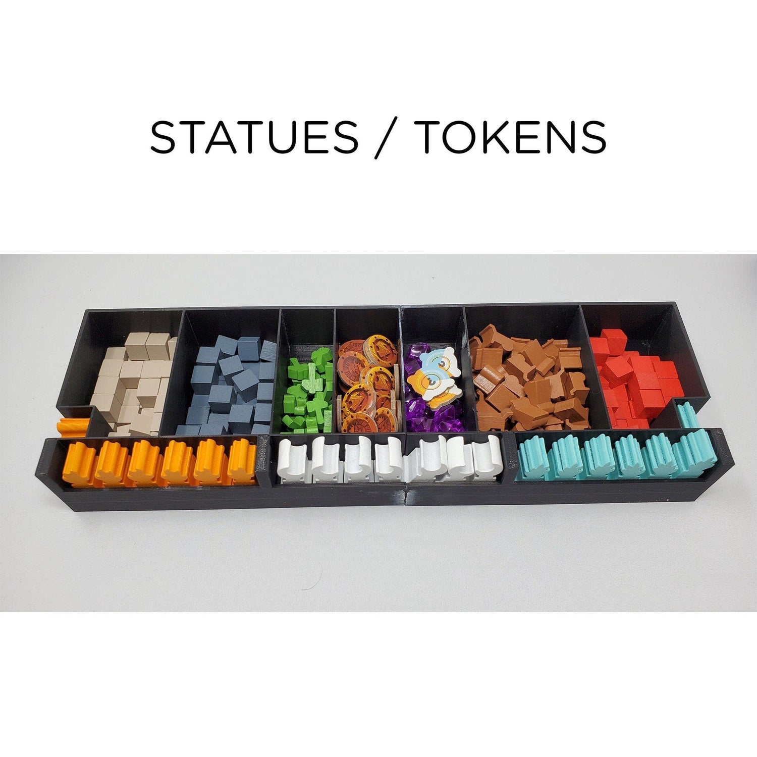 Dieser Einsatz enthält den gesamten Inhalt des Basisspiels. Der Deckel sitzt bündig mit der Schachtel, ohne darüber zu ragen. Alle Teile lassen sich leicht aus der Schachtel entnehmen. Enthält auch einen Organizer für die Troll Horde-Karten. Bitte beachten Sie: In die Kartenhalter passen nur ungesleevte oder sehr dünne Hüllen. Die Statuen-/Token-Schachtel besteht aus zwei kleineren Teilen, die zusammengeklebt sind, sodass möglicherweise leichte Sekundenkleberrückstände vorhanden sind. Außerdem ist die Dicke der Werkstattfliesen etwas uneinheitlich. Meine Fliesen sind etwas dicker als normal, sodass ein paar zusätzliche Fliesen in den Überlaufbereich mussten (siehe Foto 6).