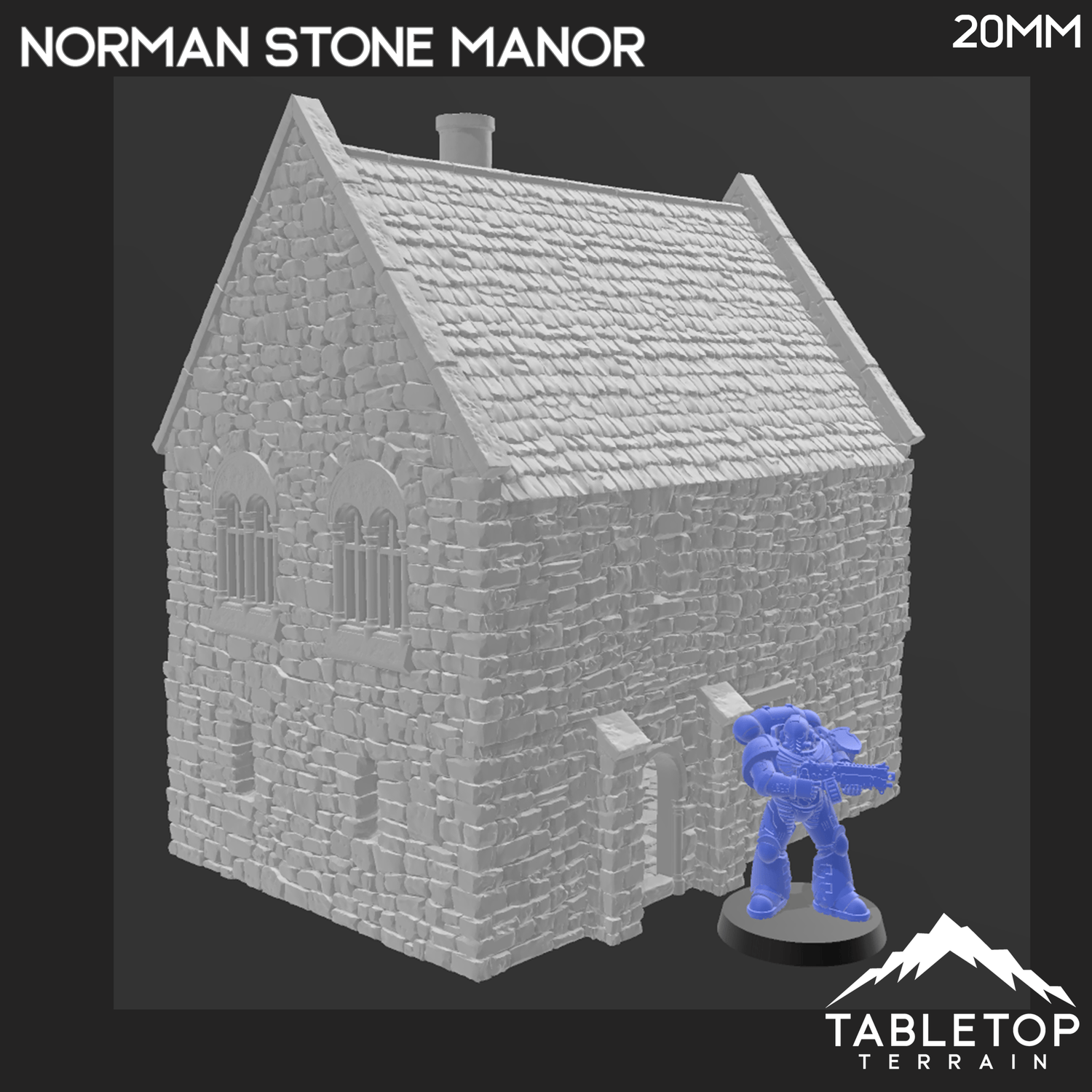 The Norman Stone Manor is a two story stone house with a removable roof and fully detailed interior. The second floor is accessed by a staircase and the Manor has a fireplace with chimney. The Manor is designed to be connected to the Norman Stone Keep via a connected walkway. It would work great for historical games, such as WII Bolt Action, Flames of War or Fields of Glory. It would also work great for Fantasy RPG games such as DND, Age of Sigmar, Kings of War, or Conquest. The building is printed in 32mm, 28mm, 20mm or 15mm scale with other scales available upon request.
