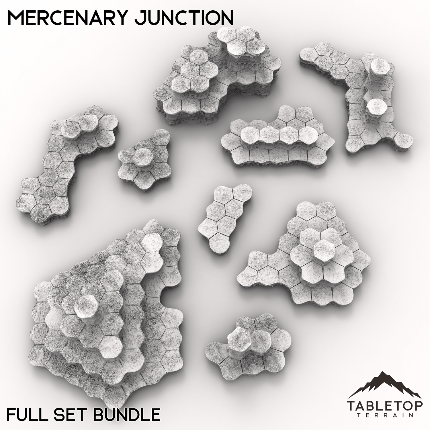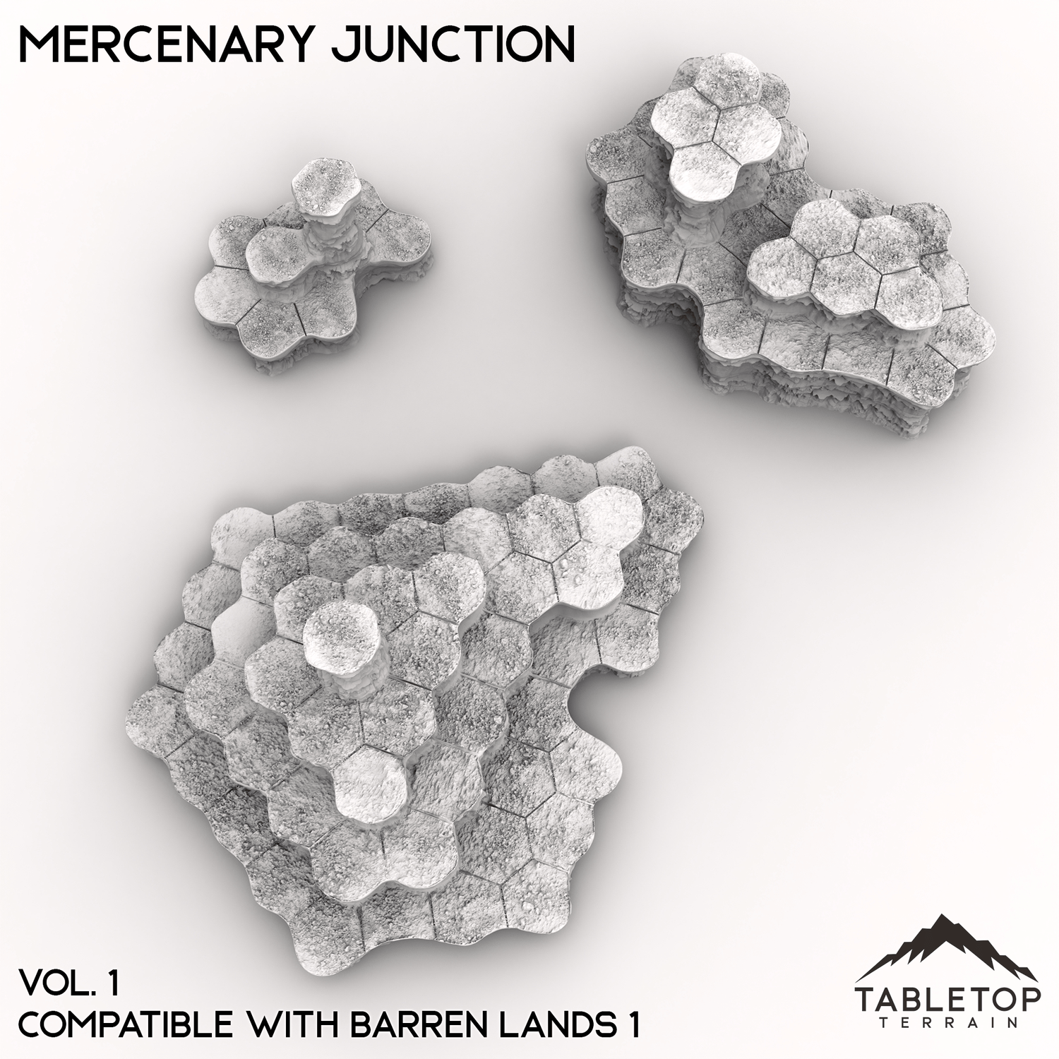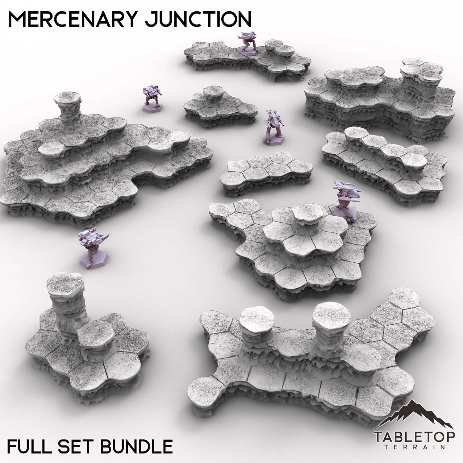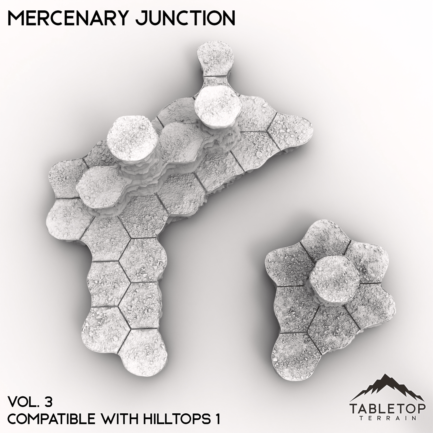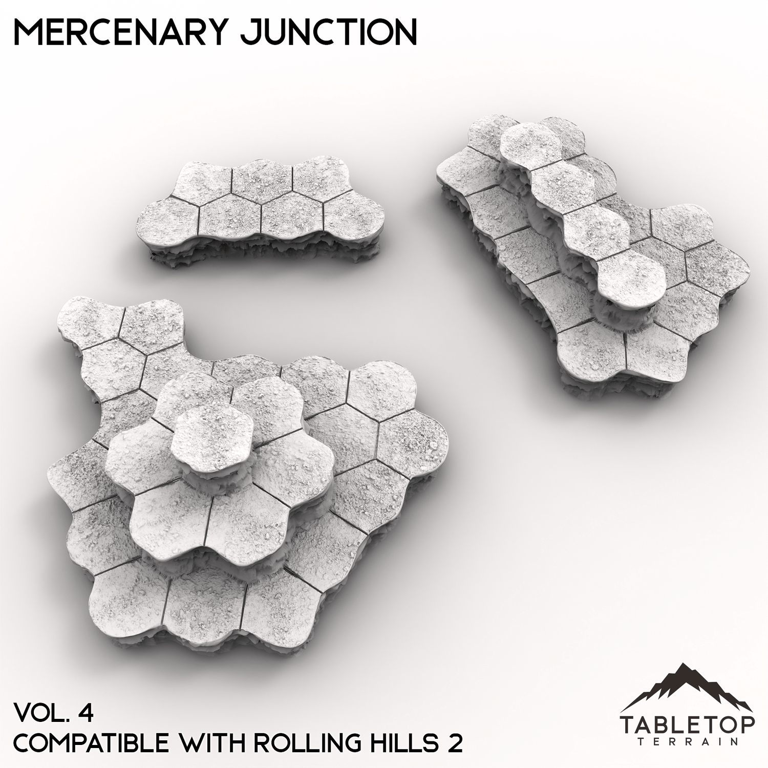 The Mercenary Junction is Map Hill Sets are a set of thematic gaming hills designed to be compatible with the Mercenaries Box maps. The pieces are designed to make painting a smooth process, and can be stored without hassle. The different sets can be bought one by one, or combined into the Full Set Bundle for a built-in discount.