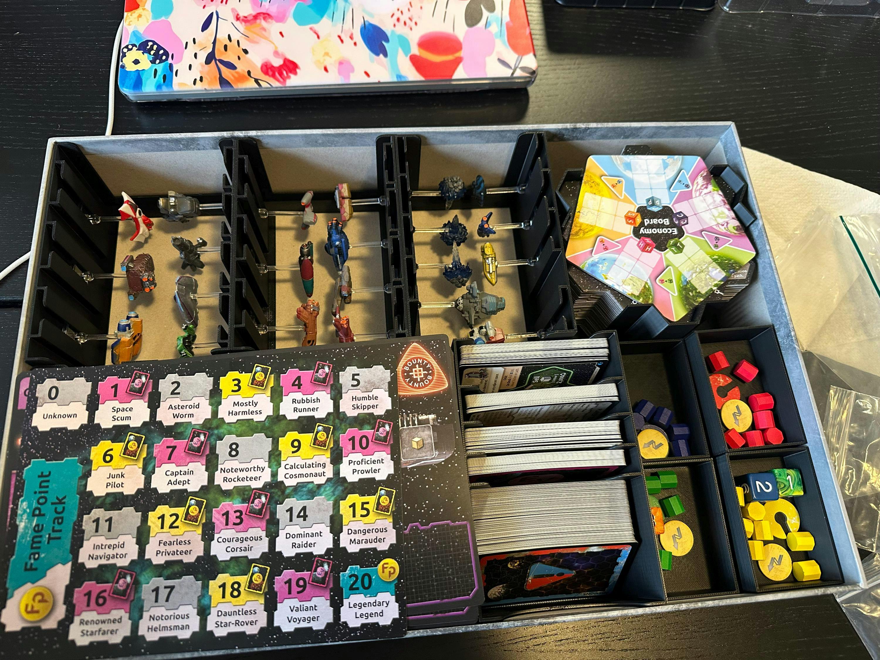 This is an organizer for the boardgame Xia - Legends of a Drift System and the expansions Embers of a Forsaken Star, Missions & Powers, Sellsword MkII.
