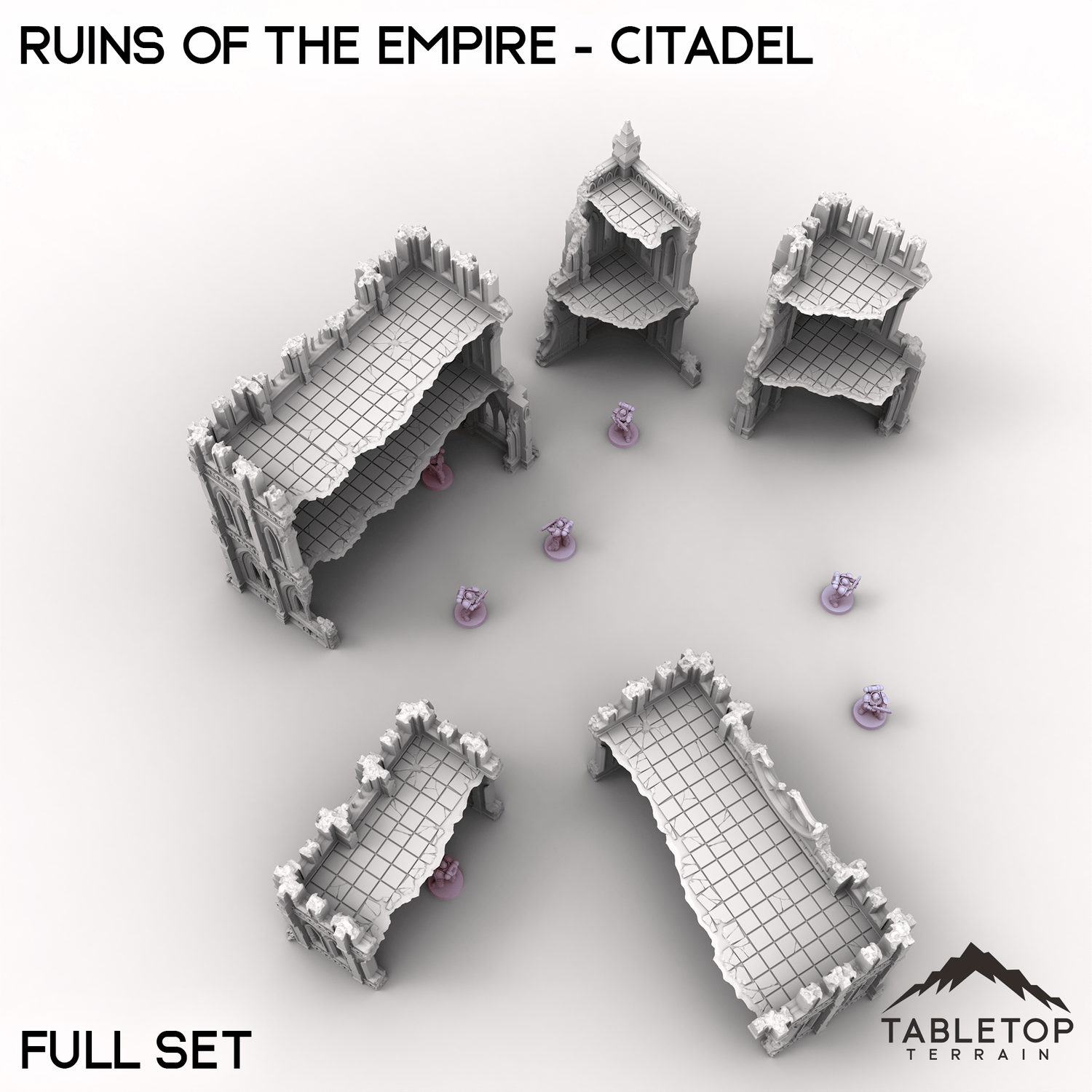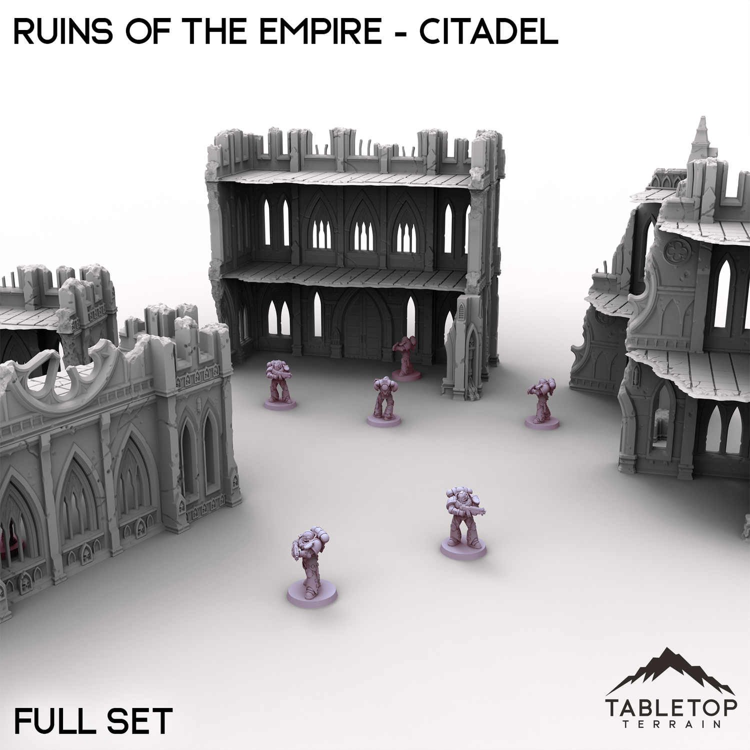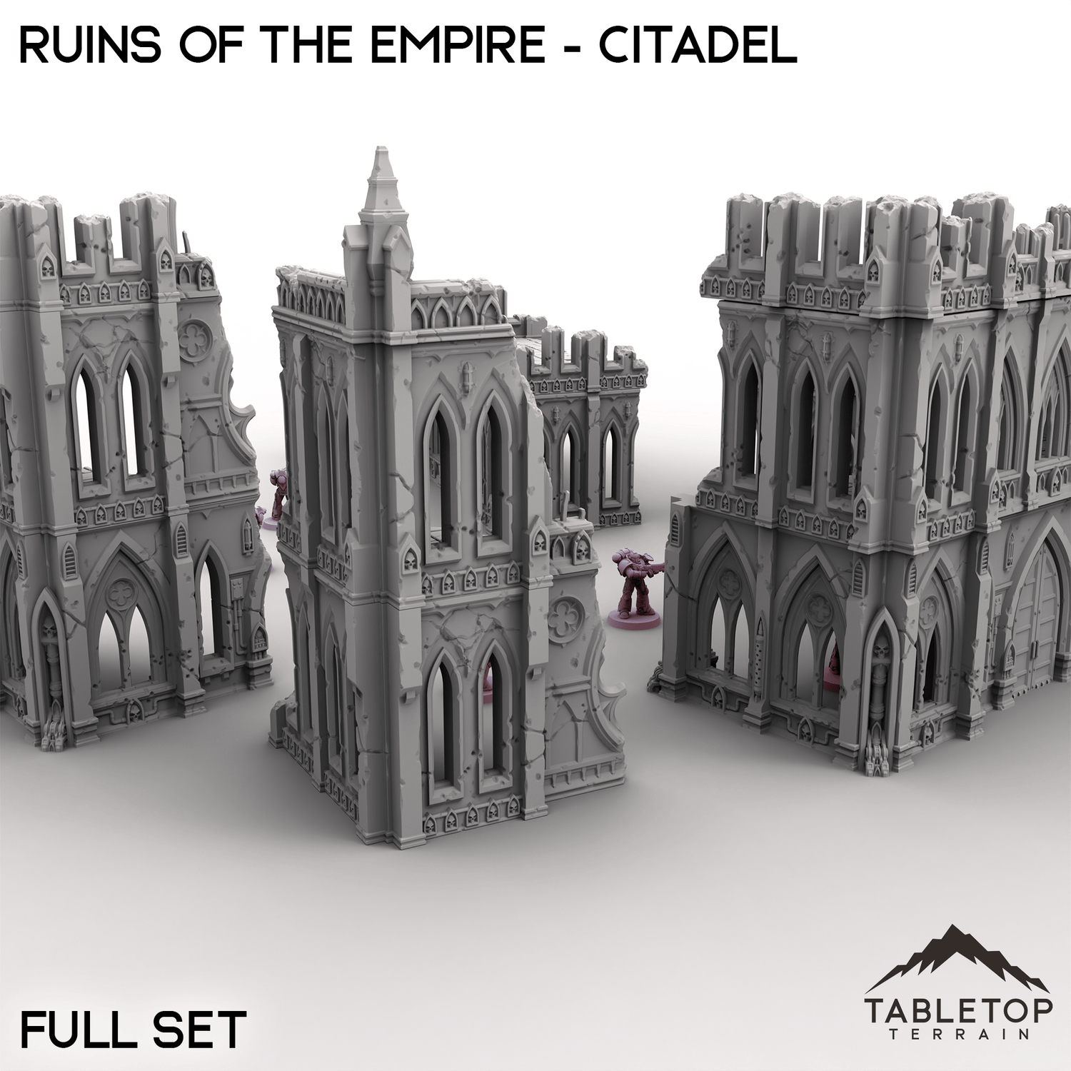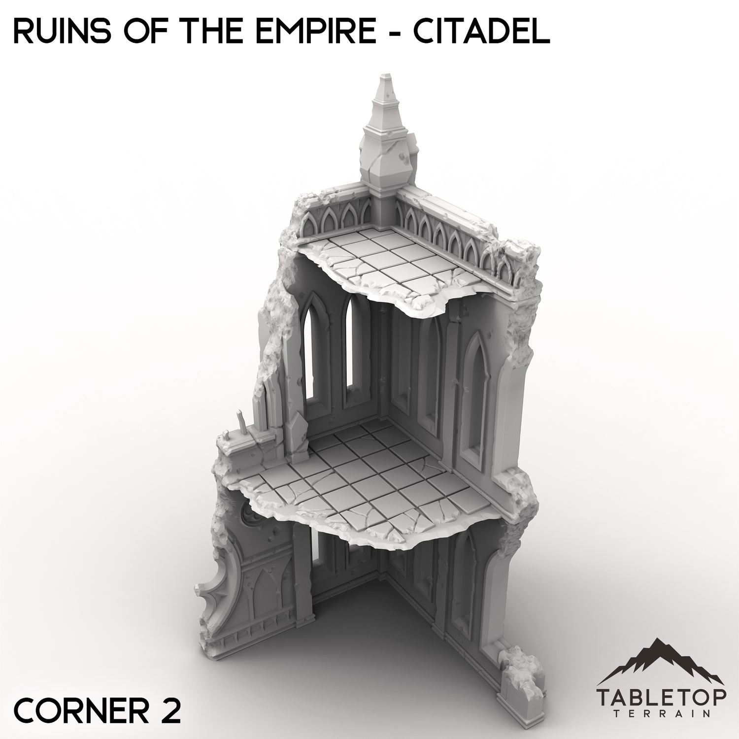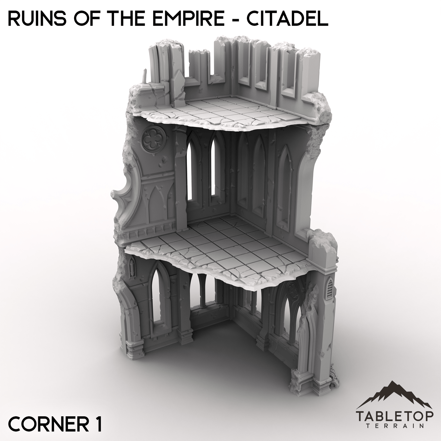 The Ruins of the Empire - Citadel set brings towering gothic ruins to your tabletop. Crumbling walls, broken windows, and jagged corners make this the perfect backdrop for devastating battles. Perfect by itself or used with the other Ruins of the Empire set pieces.