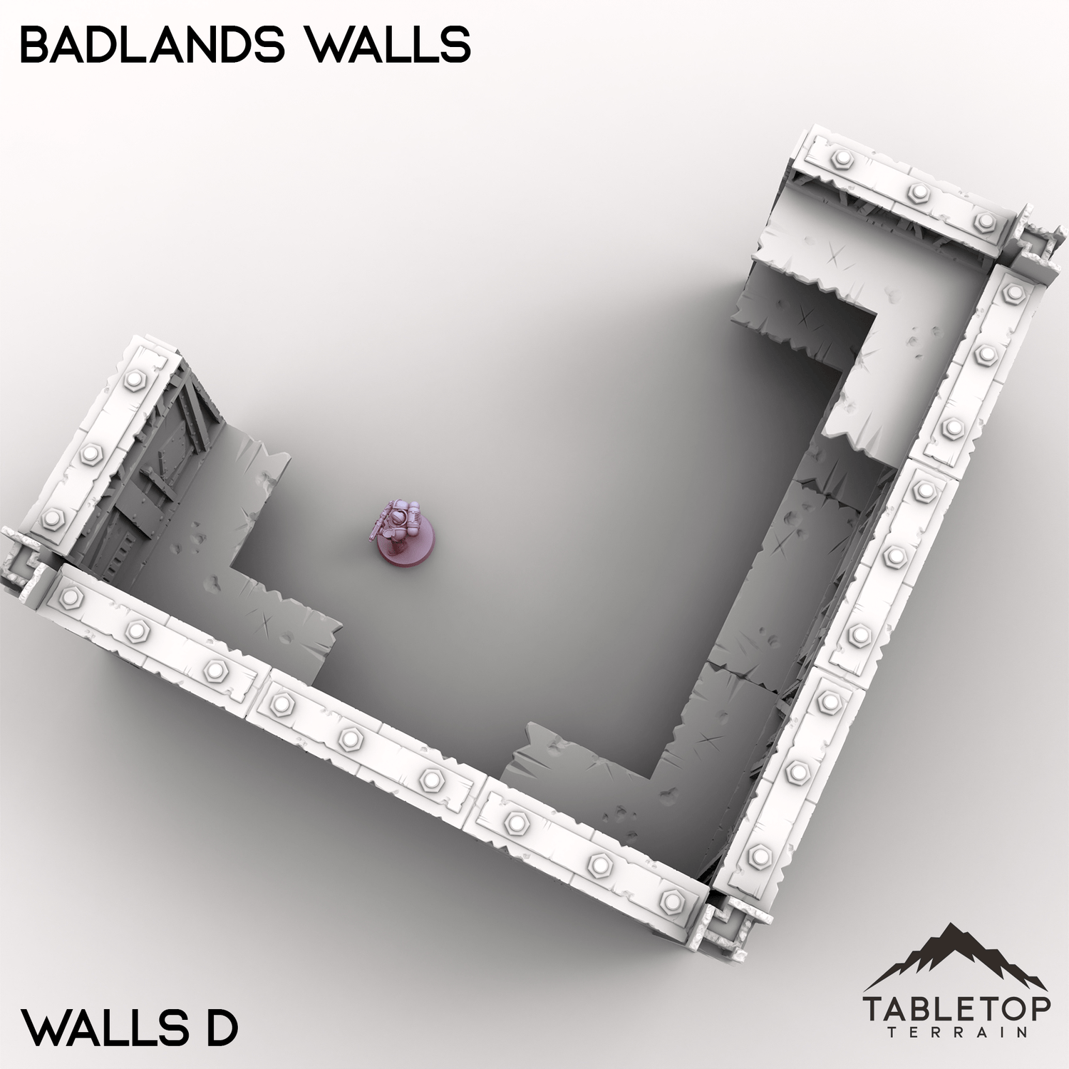 The Badlands Walls set brings rugged, weather-beaten defenses to the edge of civilization. Built from a mix of scrap, and reinforced sections, these modular walls are ideal for protecting frontier outposts, desert settlements, or war-torn strongholds.