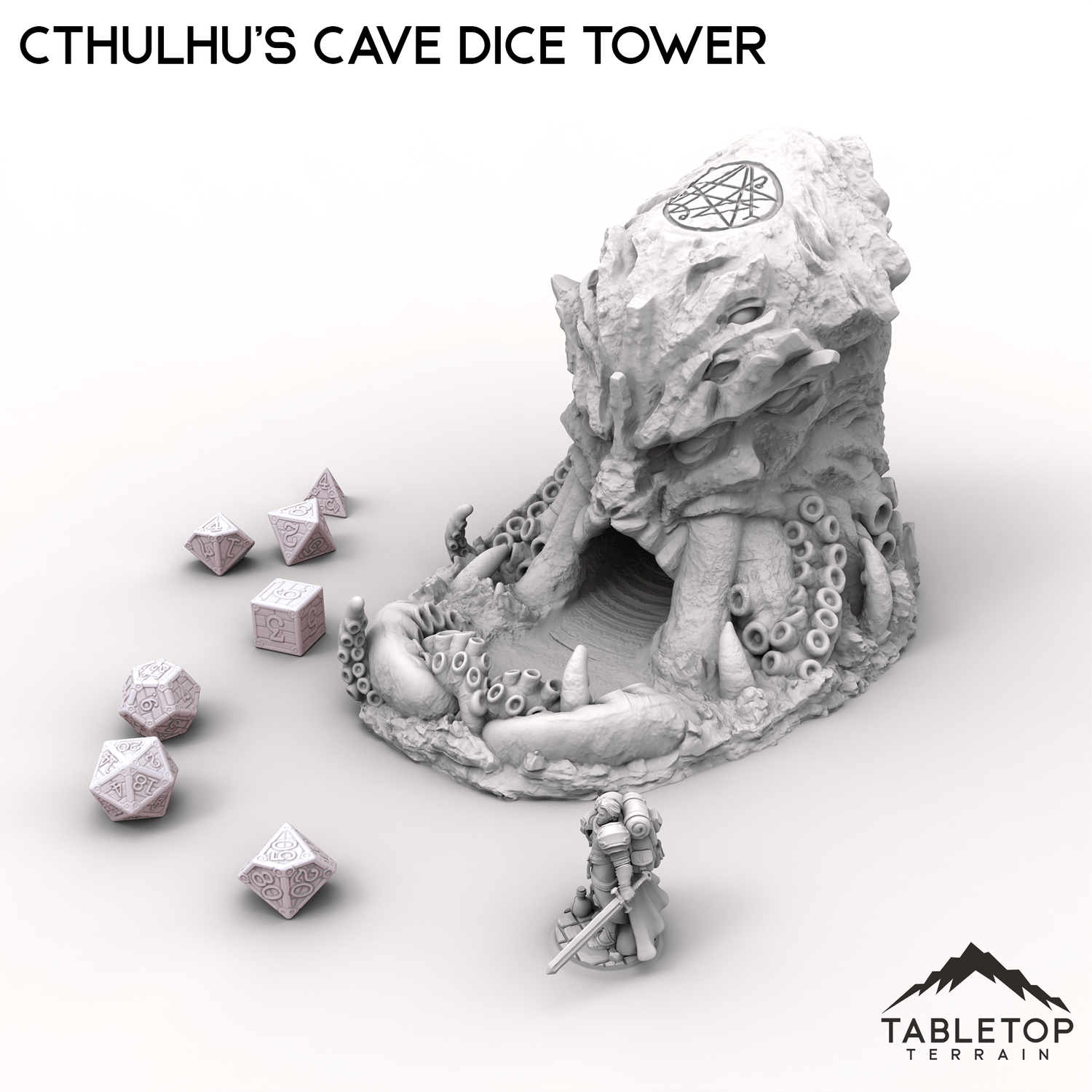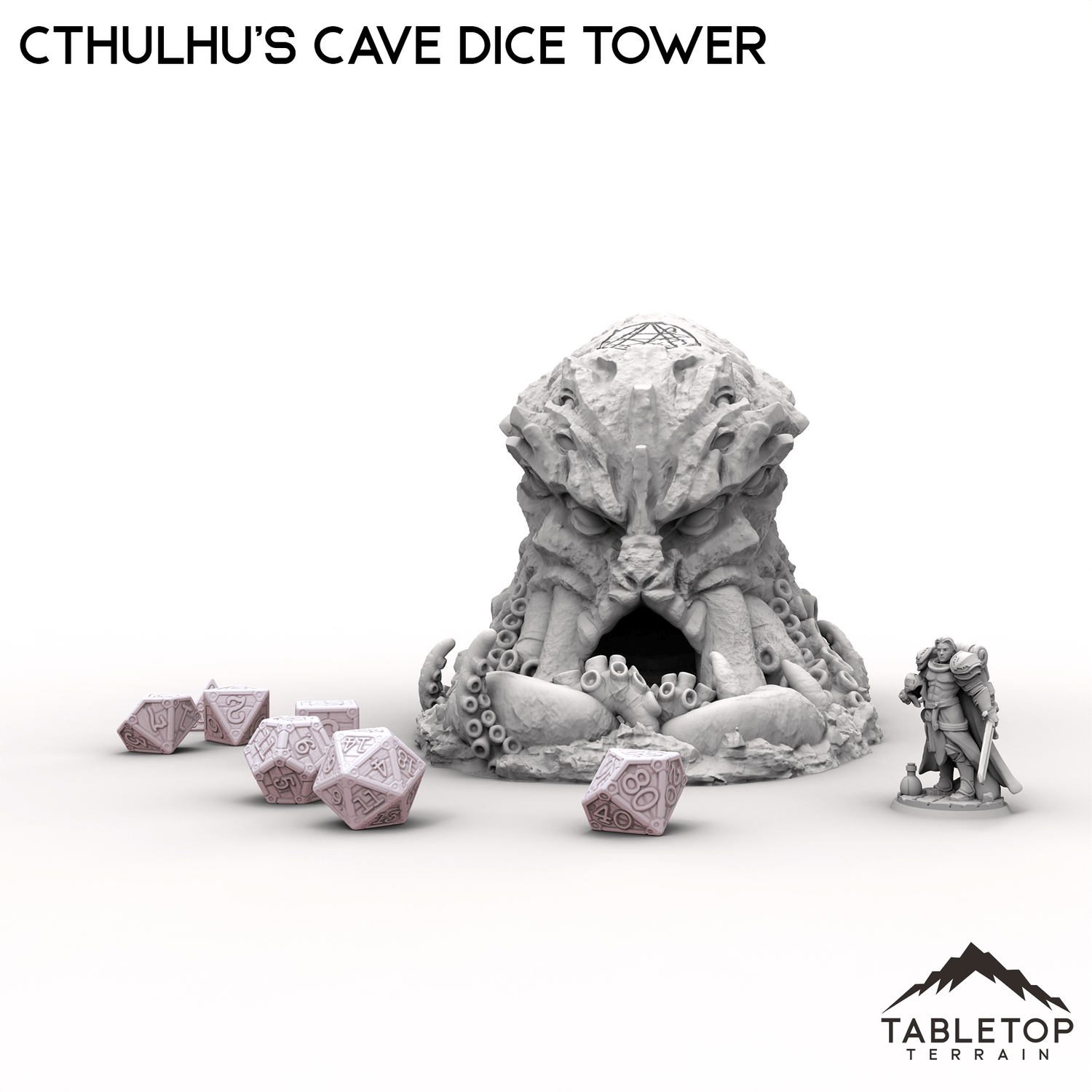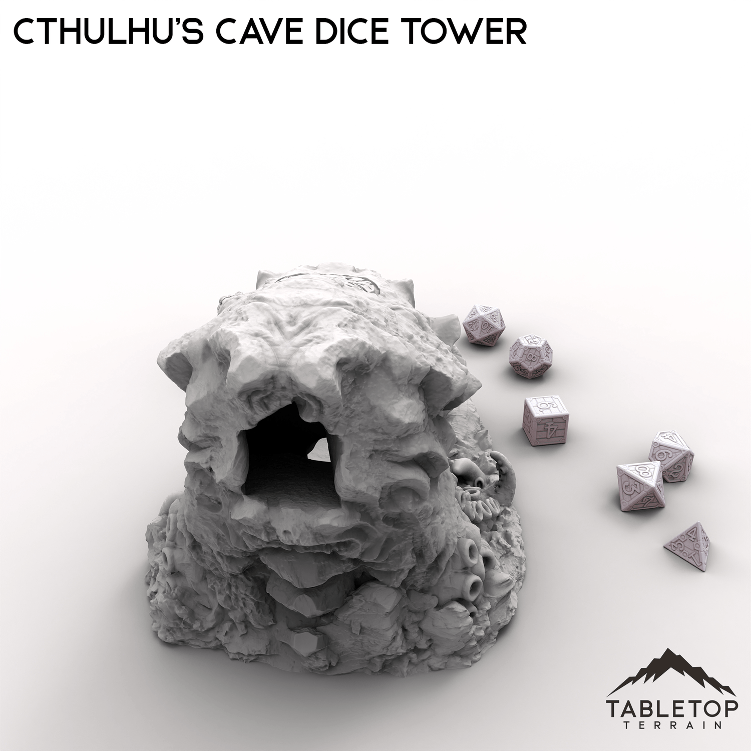 This Cthulhu's Cave Dice Tower is a shrine to eldritch horror, shaped like a monstrous, tentacle-covered entity with a cavernous maw ready to consume your rolls.