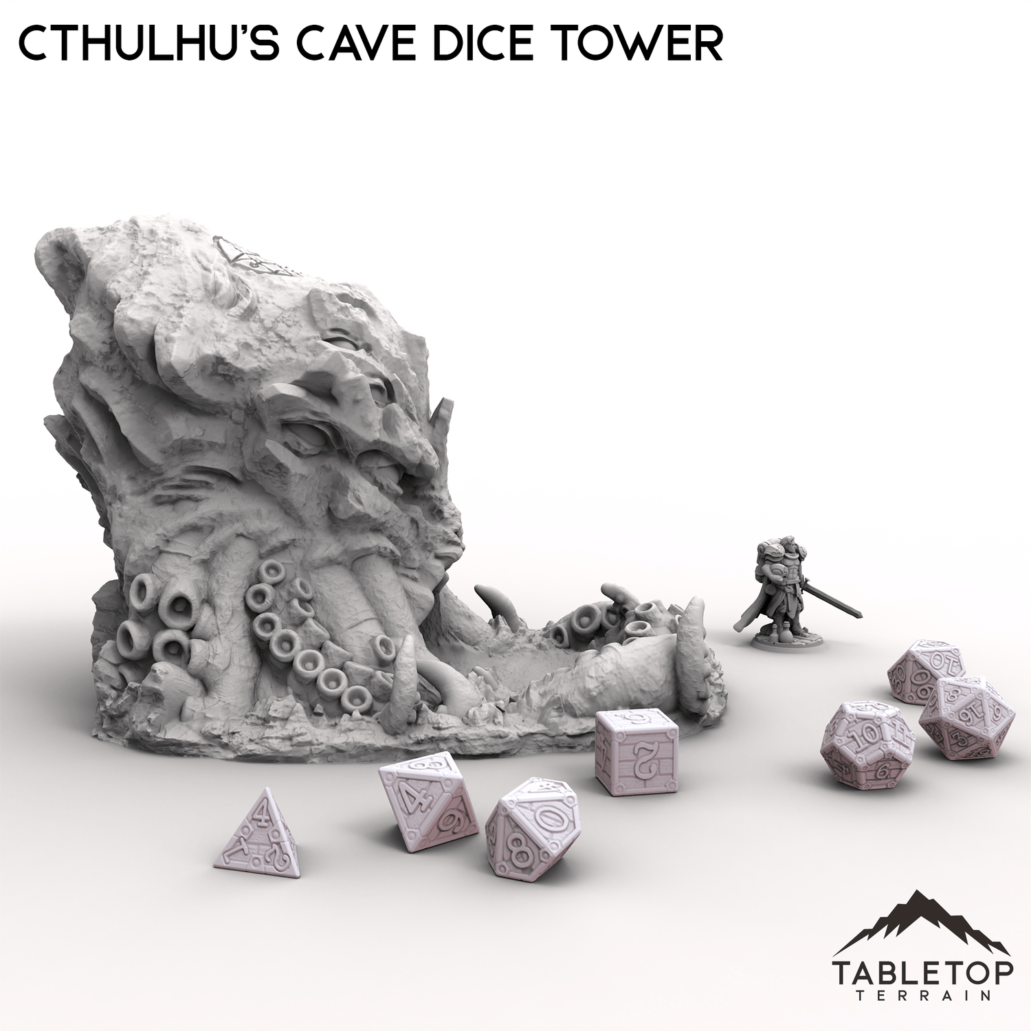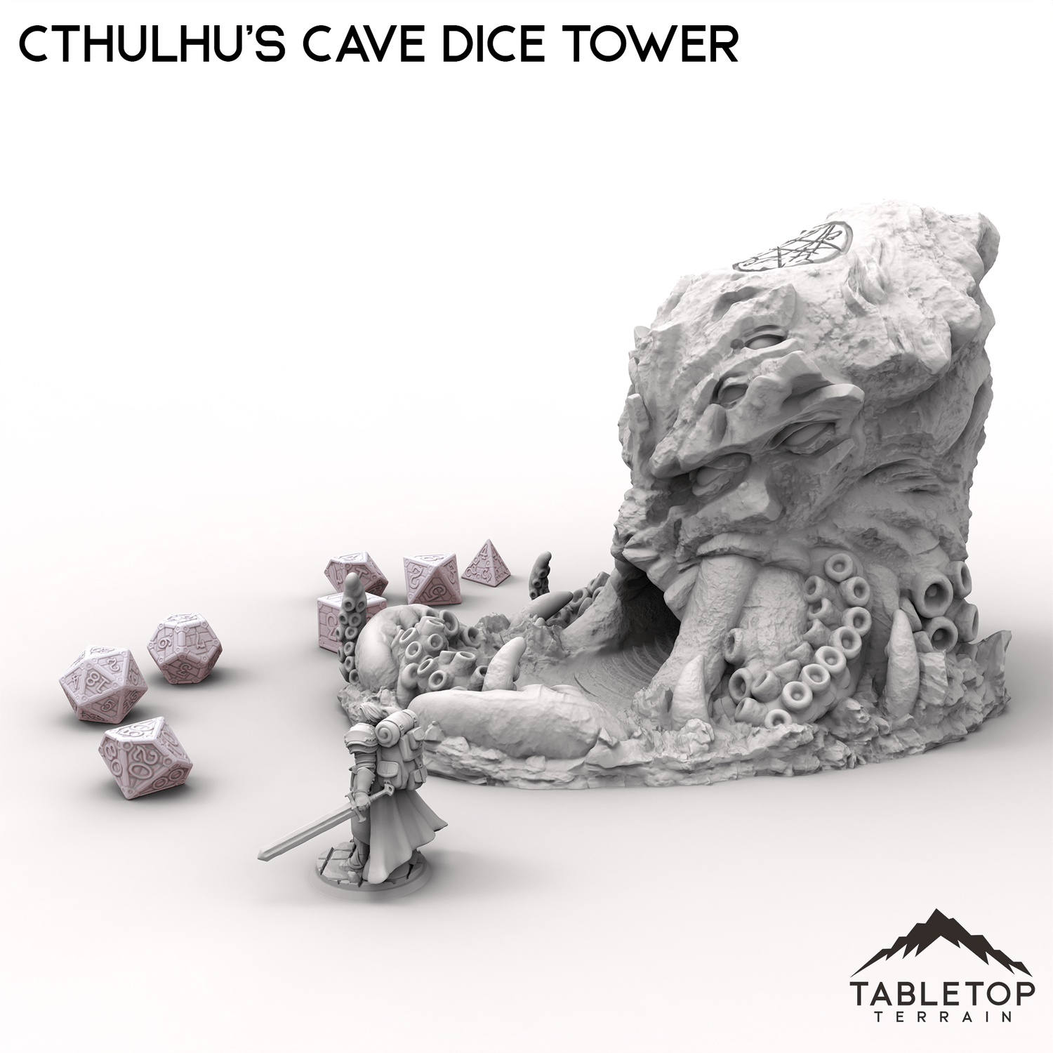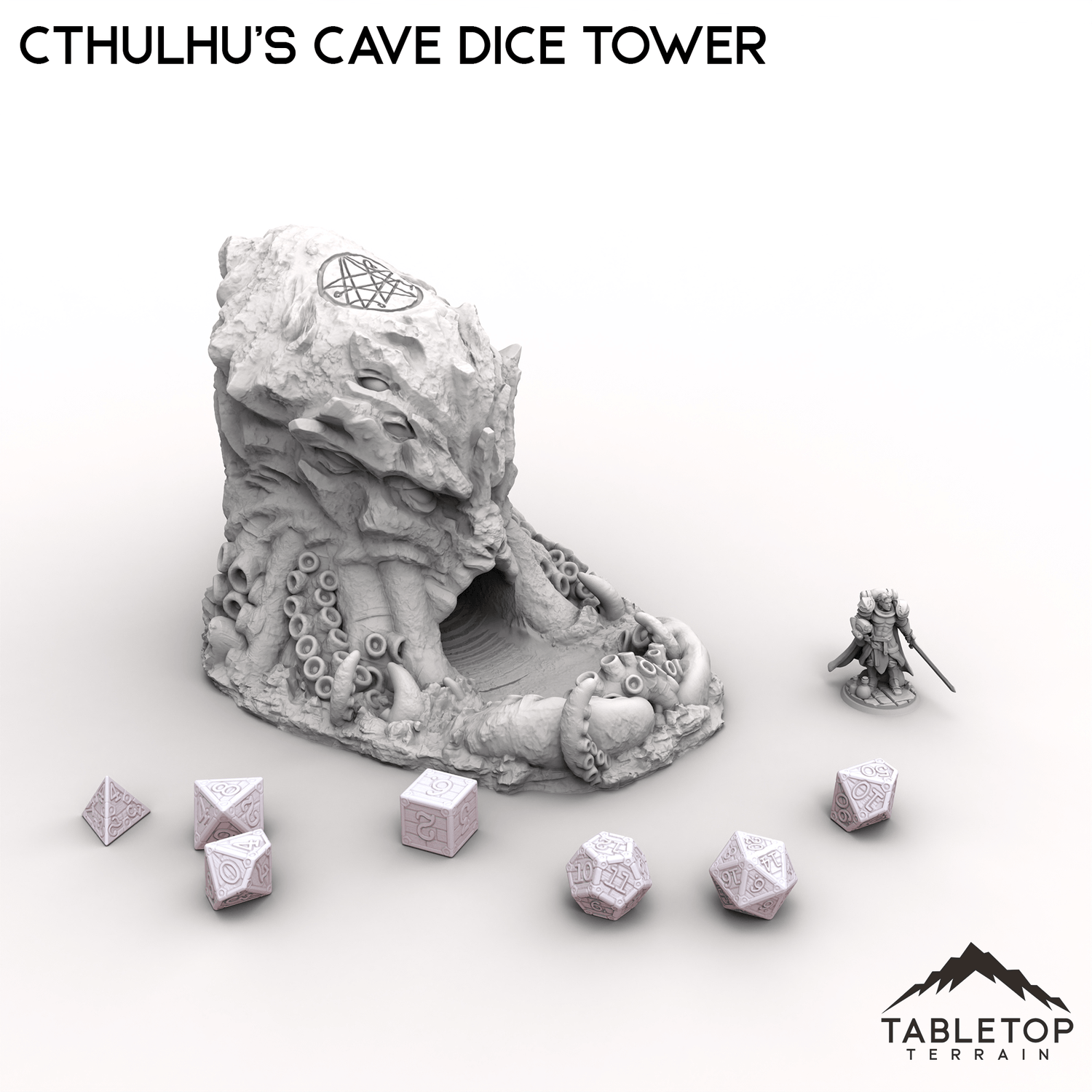 This Cthulhu's Cave Dice Tower is a shrine to eldritch horror, shaped like a monstrous, tentacle-covered entity with a cavernous maw ready to consume your rolls.