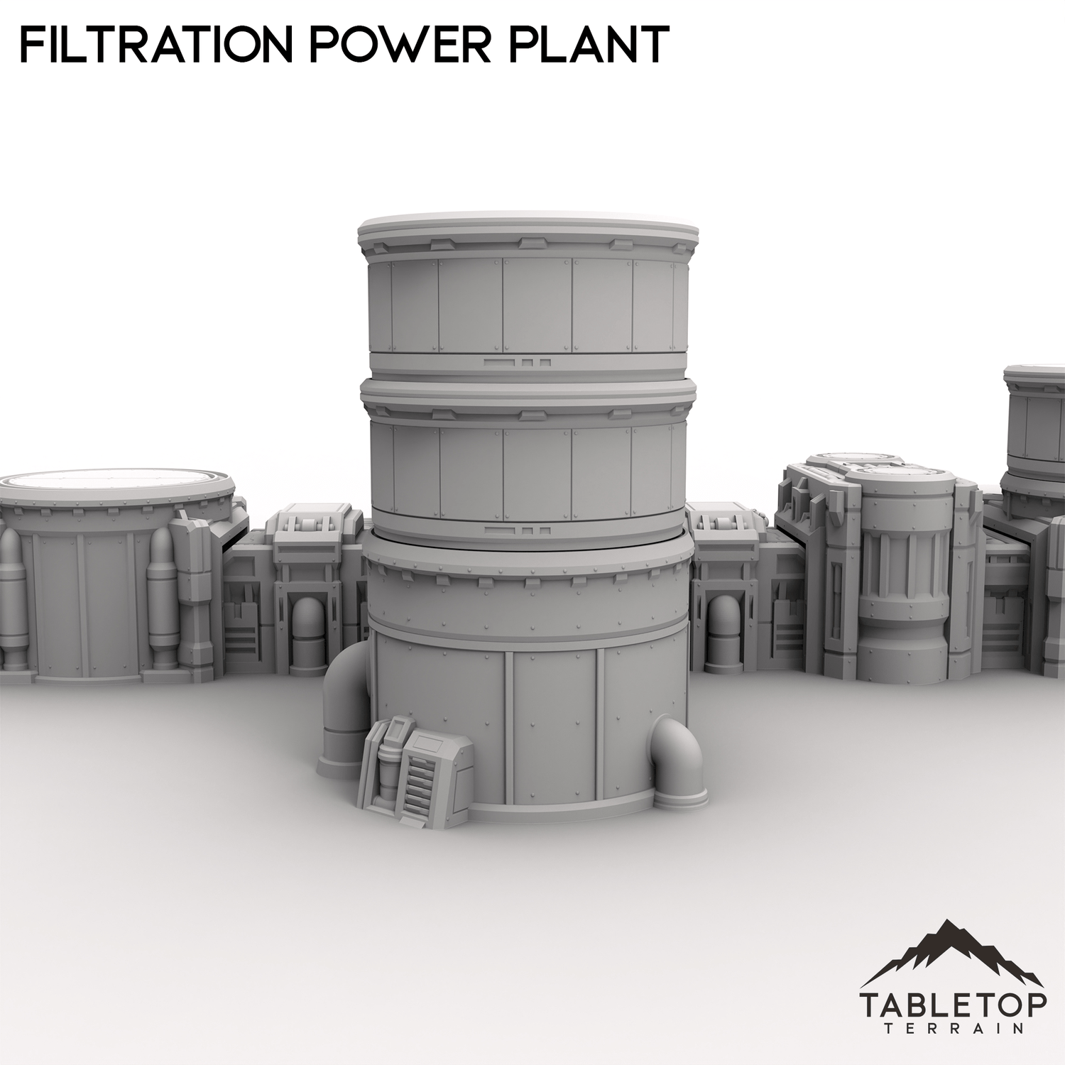 The Filtration Power Plant is a heavy industrial structure designed for polluted worlds and resource-strained colonies. Packed with filtration vents, reinforced piping, and storage tanks, it’s perfect for any setting where survival depends on reclaimed air and power.
