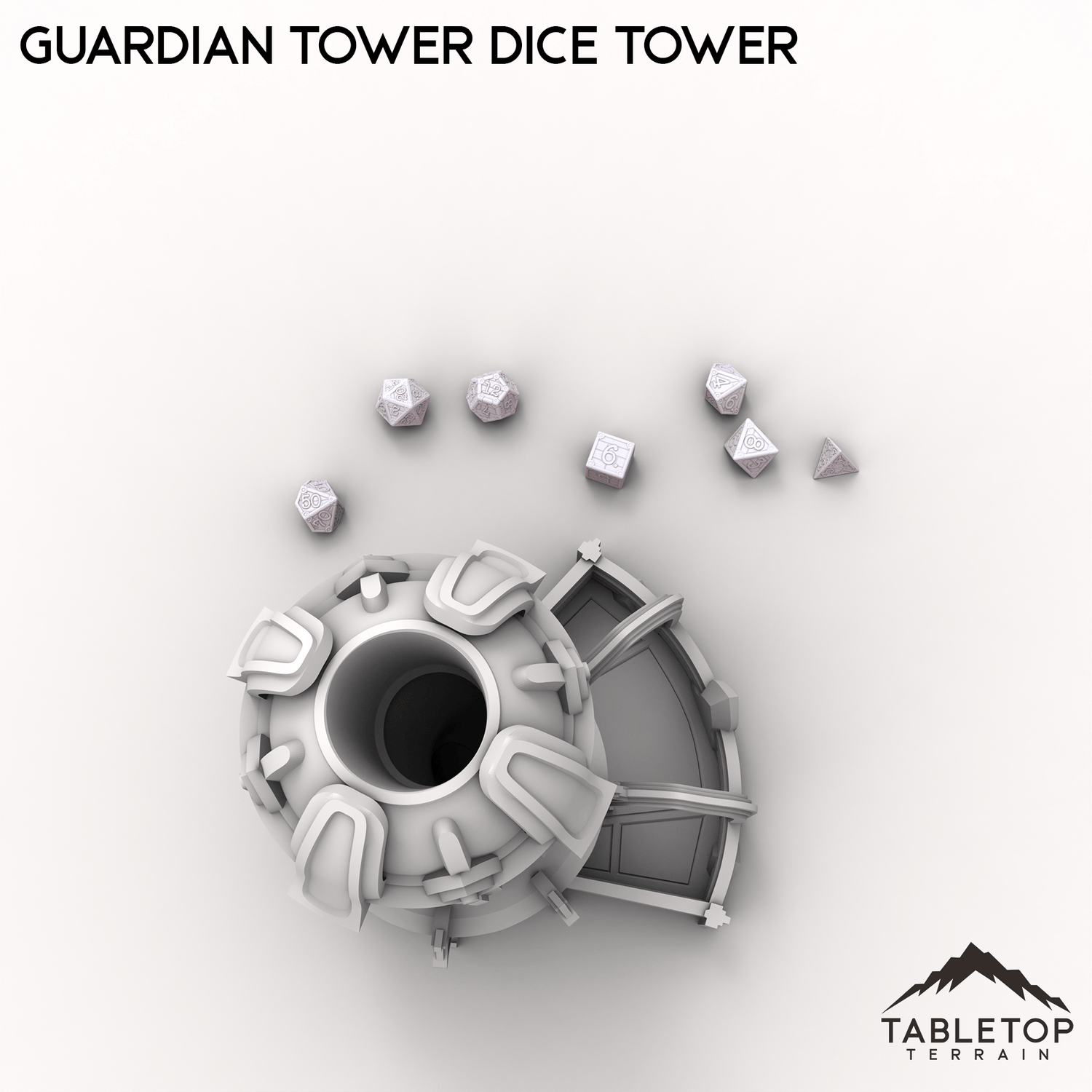 The Guardian Tower Dice Tower is designed to work in almost any genre, making it a perfect dice tower for when you're playing different games. The tower features a simple but stylish design, an opening up top large enough for any standard-sized dice, and a small "courtyard" for catching the dice once they fall. The tower comes in 2 pieces for easier storage/travel.