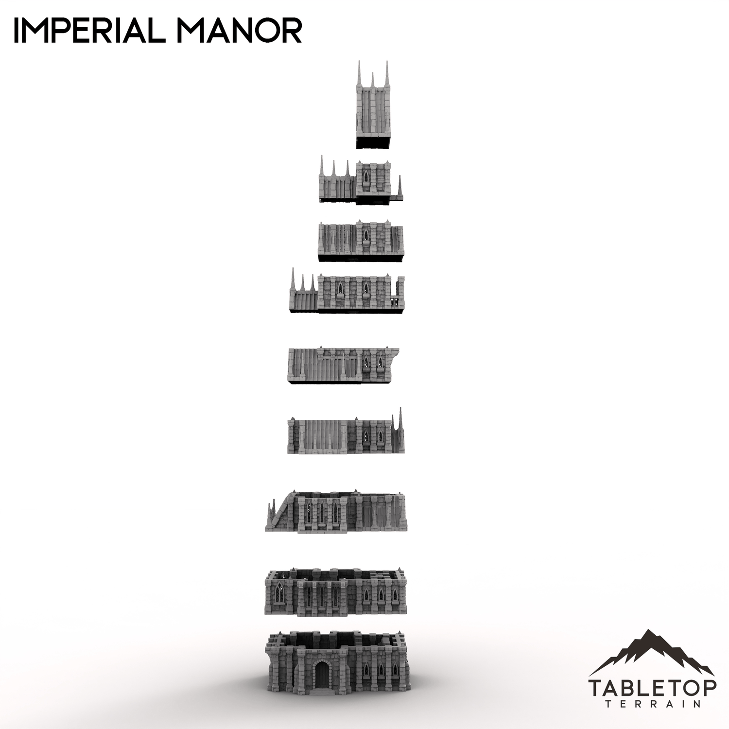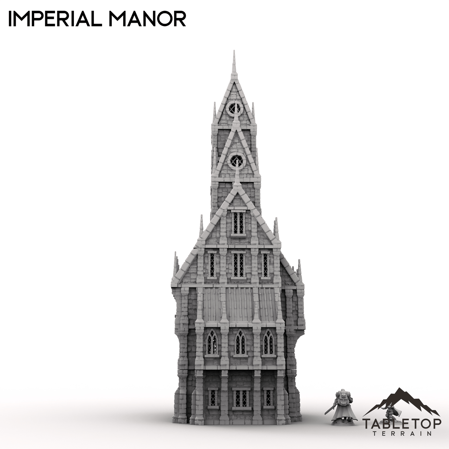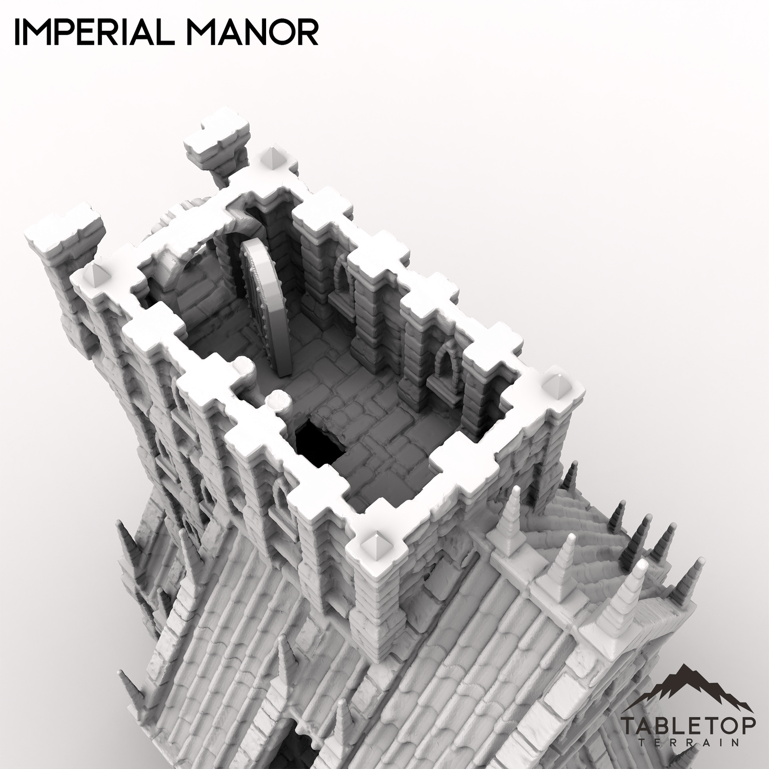 Towering at an impressive 8-stories tall, the Imperial Manor is an imposing sight to behold. Each floor of the manor is open, detailed, and able to hold minis. The set uses small spikes to be held together, so no glue is needed. The 2 doorways are also function, with small doors that can swing open and closed. The set is technically designed for fantasy tabletops, like our other Imperial buildings (such as the Imperial Bridge or Imperial Bastion), but it will work fine for any 28/32mm scale game.
