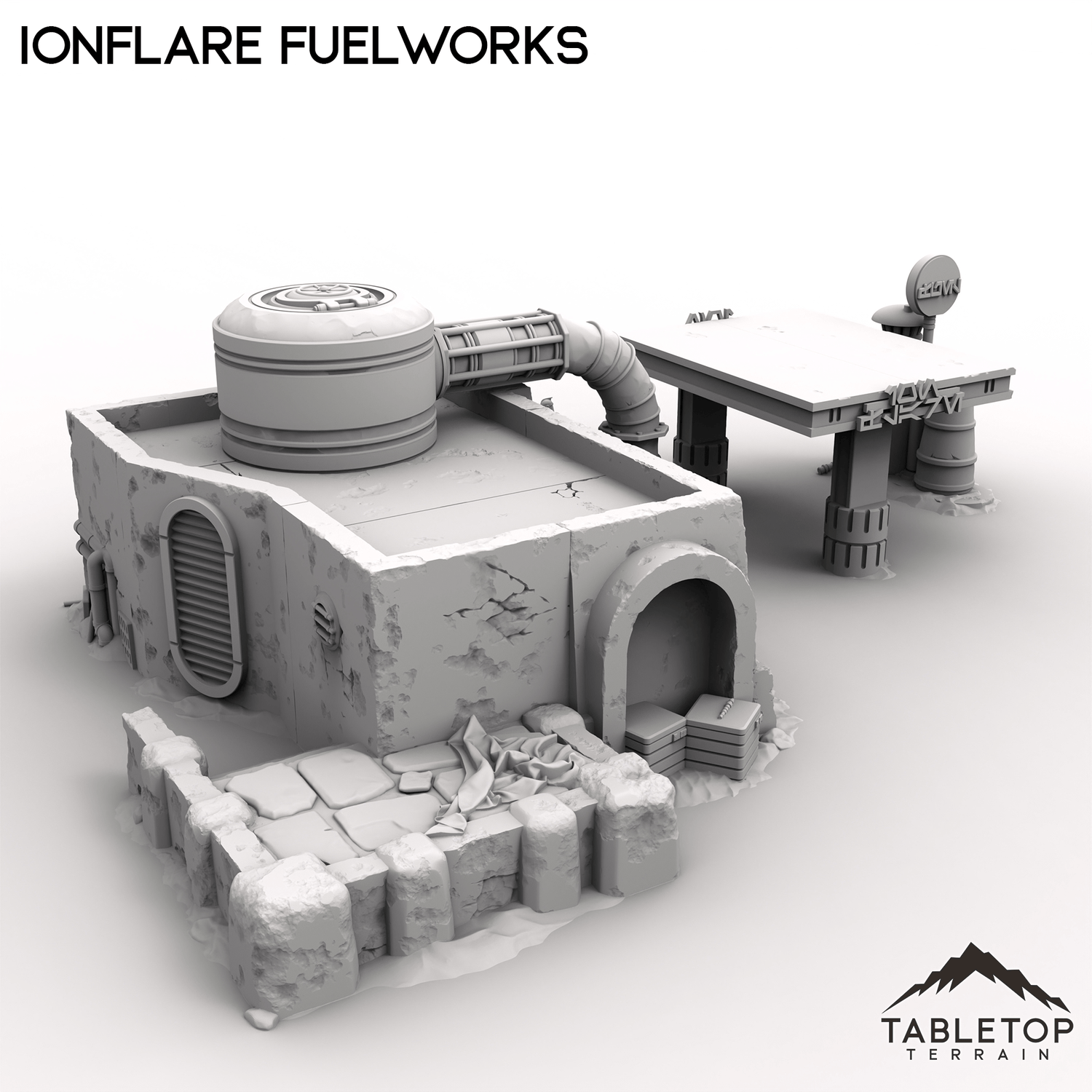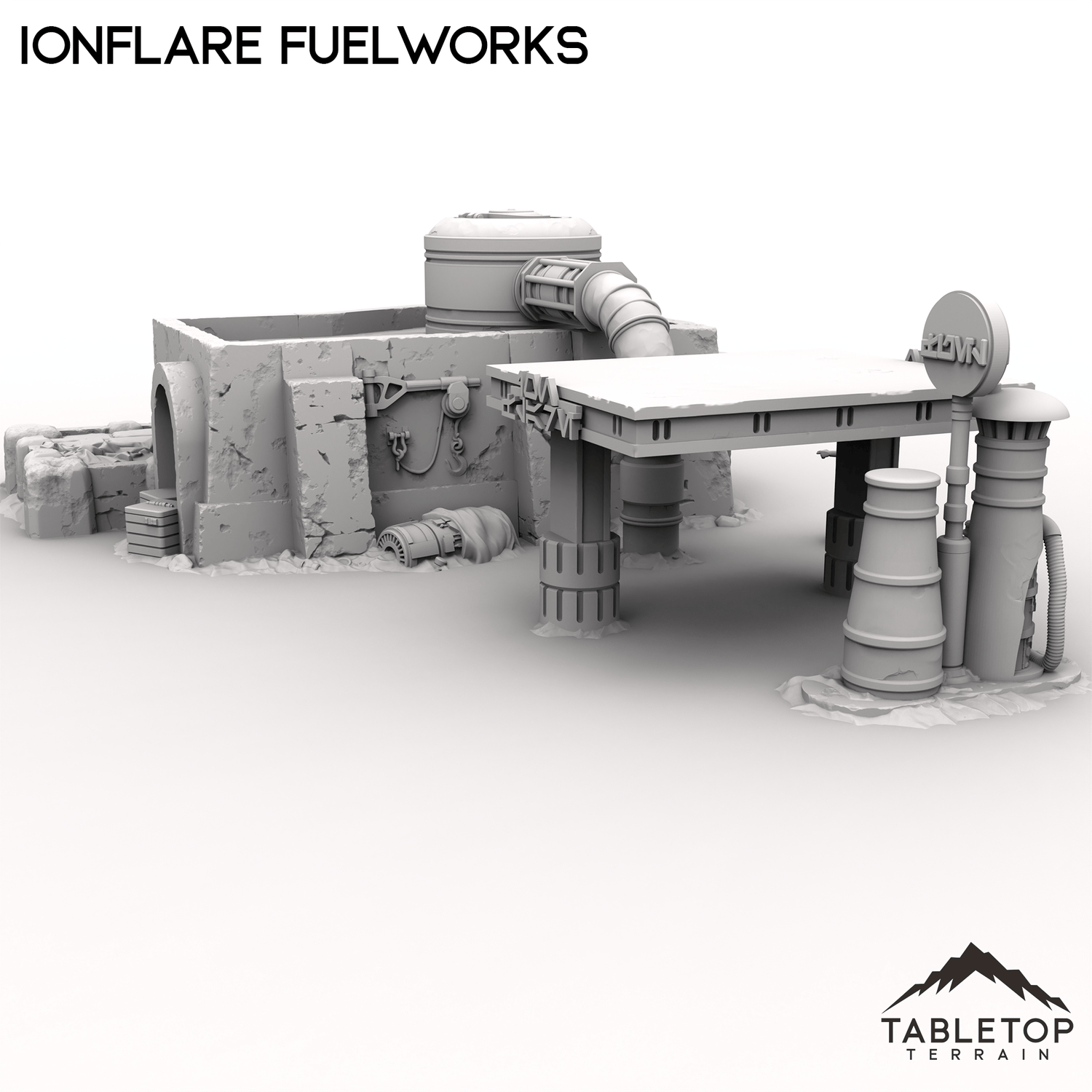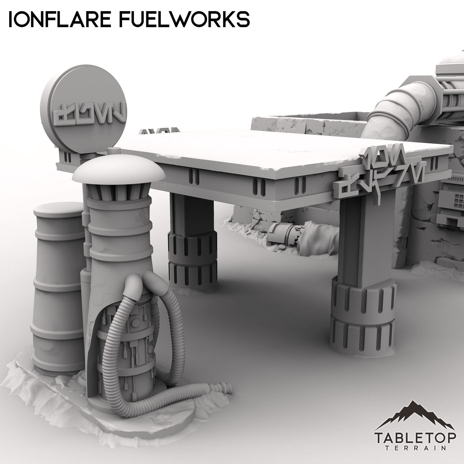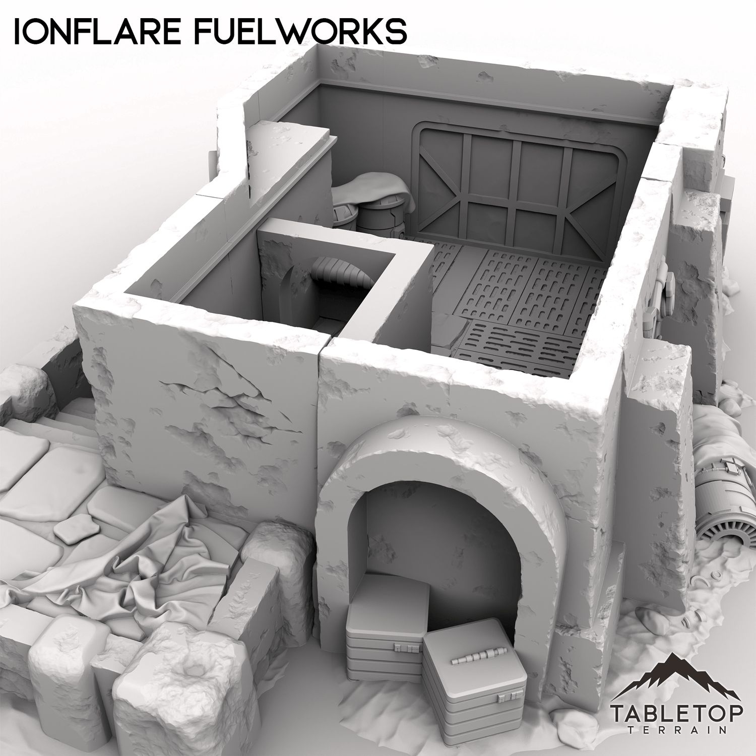 Ionflare Fuelworks is a rugged refueling station, the kind of place where players refuel their vehicles, swap a few credits, and maybe hear a rumor or two. Its worn walls and scattered supplies show it’s seen plenty of traffic, from cargo haulers to bounty hunters looking for a quick pit stop. Perfect for a tense standoff or a shady deal.