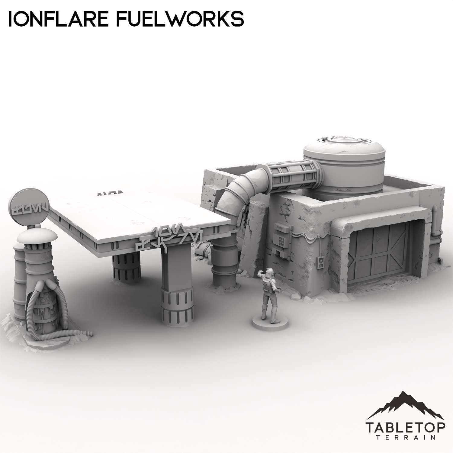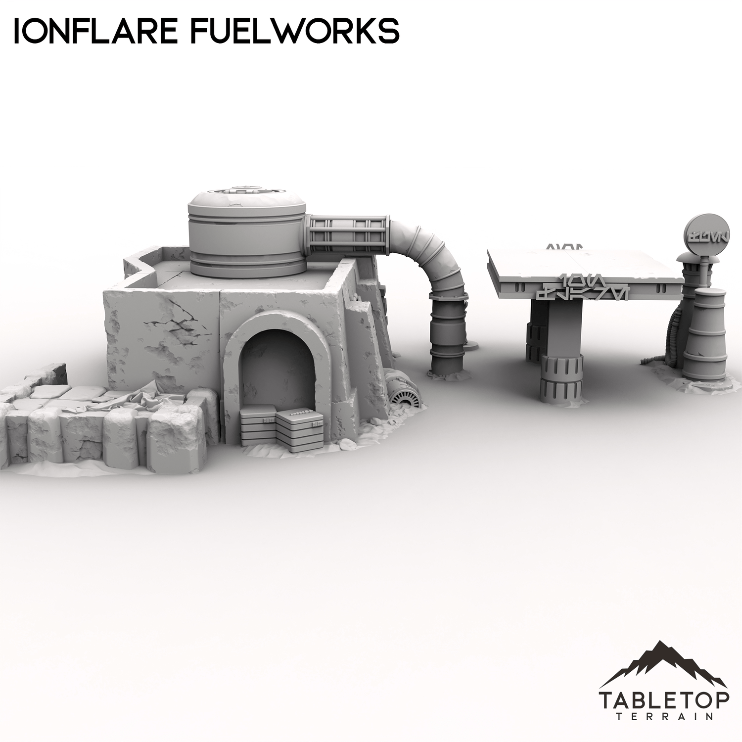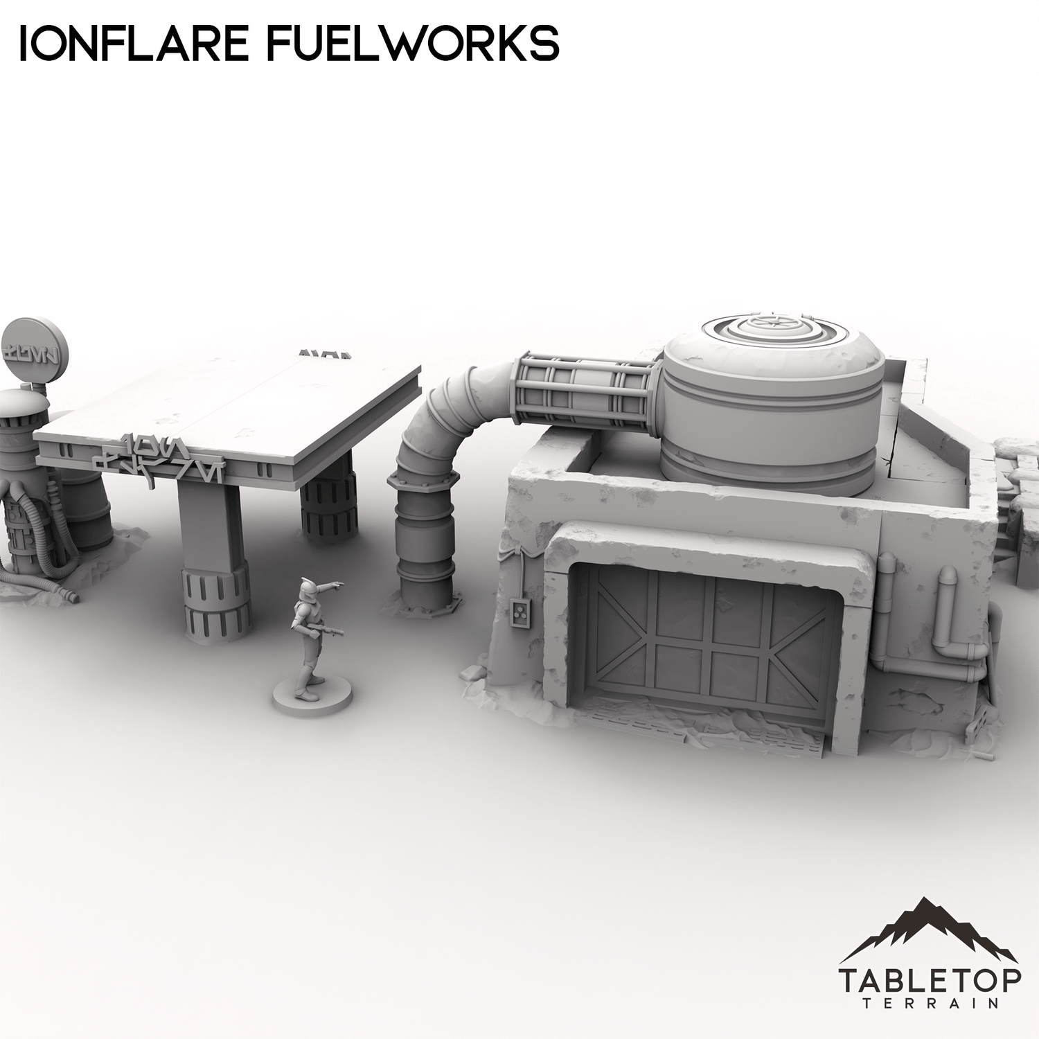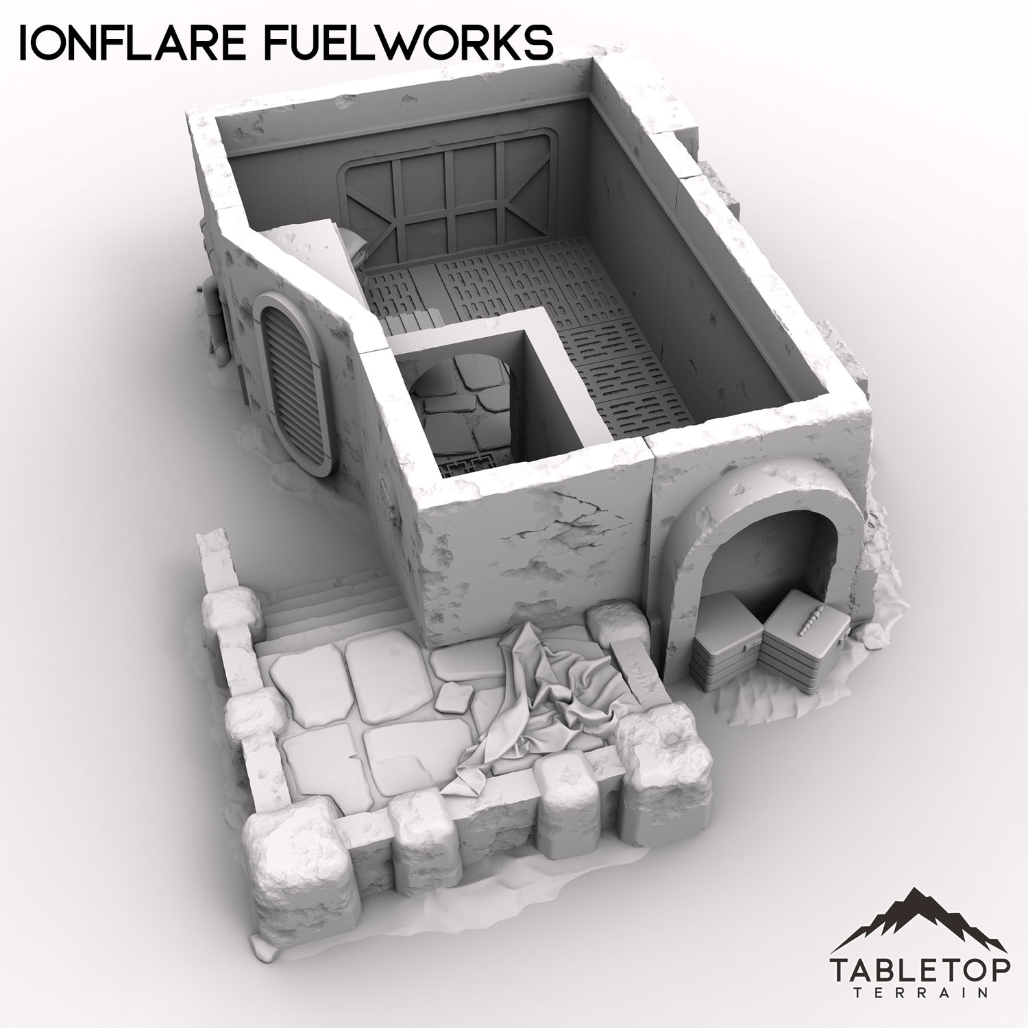 Ionflare Fuelworks is a rugged refueling station, the kind of place where players refuel their vehicles, swap a few credits, and maybe hear a rumor or two. Its worn walls and scattered supplies show it’s seen plenty of traffic, from cargo haulers to bounty hunters looking for a quick pit stop. Perfect for a tense standoff or a shady deal.