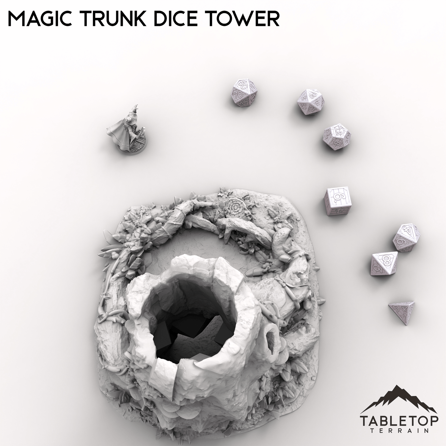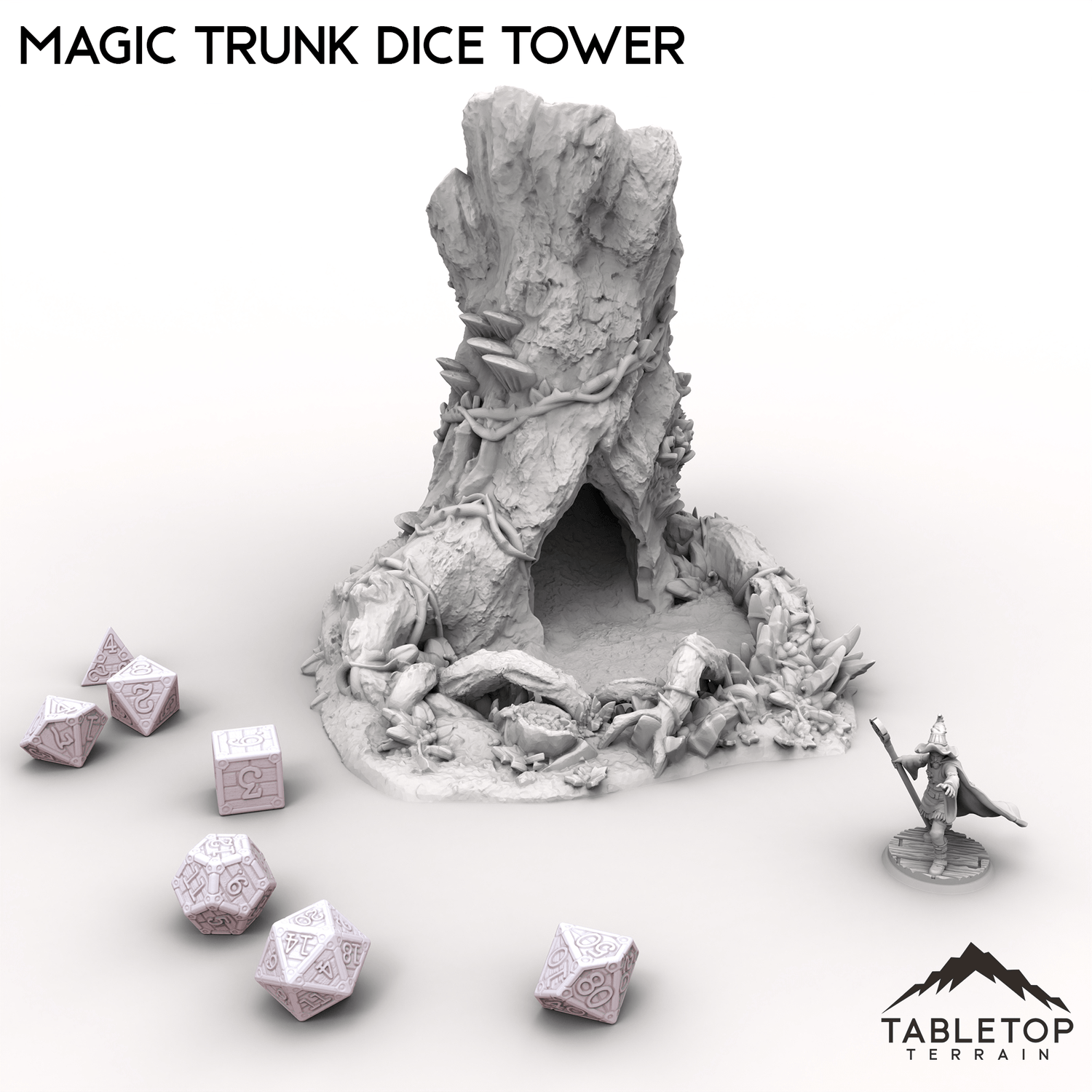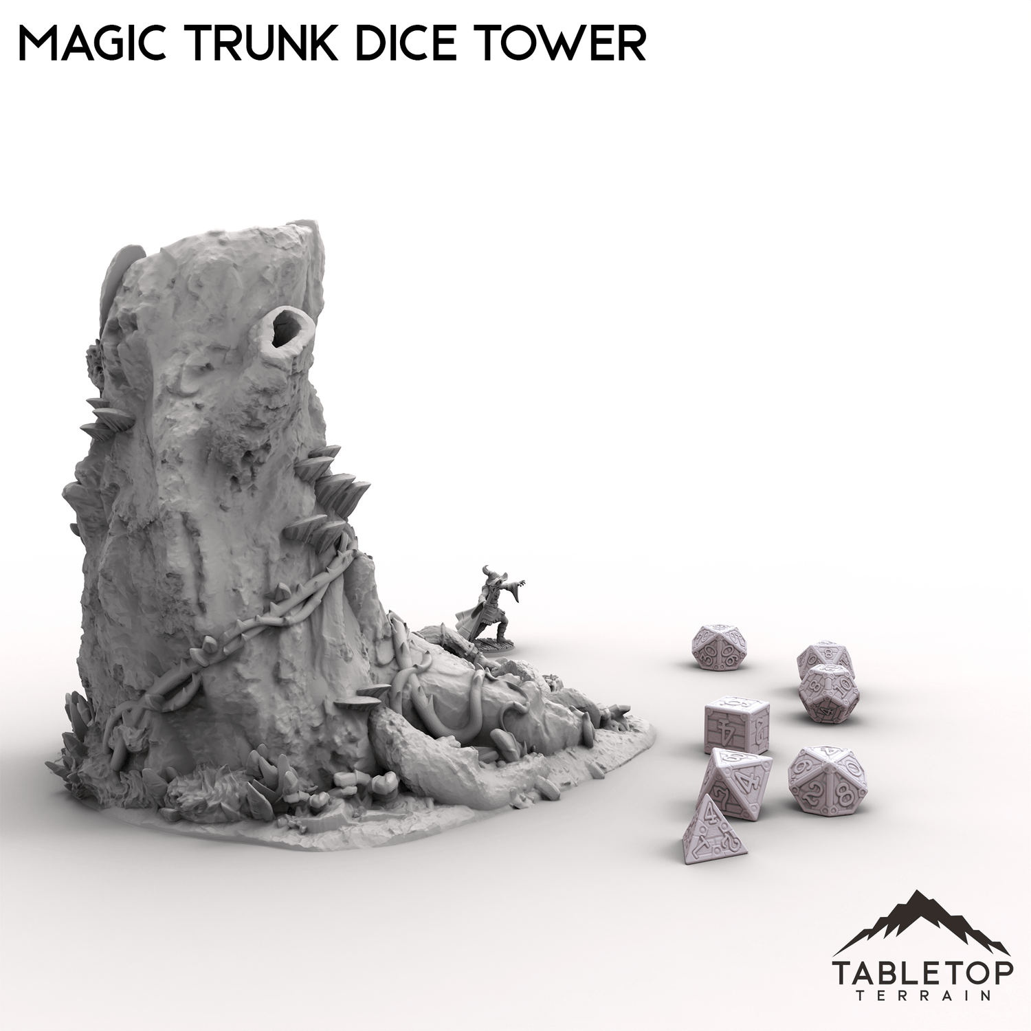 This Magic Trunk Dice Tower blends nature and mysticism into one. Drop the dice in at the top, and they rattle through the hollowed-out core before rolling out of the roots below. Perfect for adding a touch of enchantment to your game.