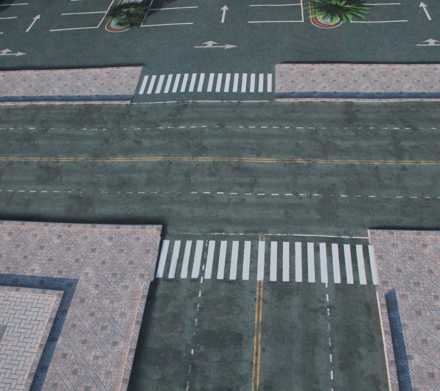 In addition to be playable on its own, this mat is designed to be playable next to Modern City 2 and give the appearance of a continuous city mat. Useful for multiple games or larger games.