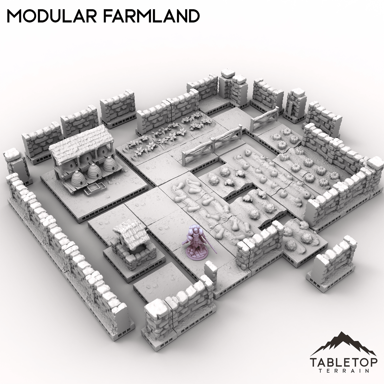 This set is a fully Modular Farmland, completely able to be arranged however you need! Each part, from the walls to the flooring to the farm-tiles themselves, are all able to be locked together using the provided clips. The photo shown for this item is one way they can be put together, but other layouts can be made for whatever is needed.