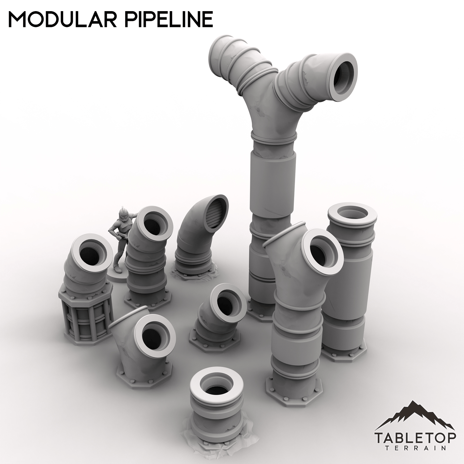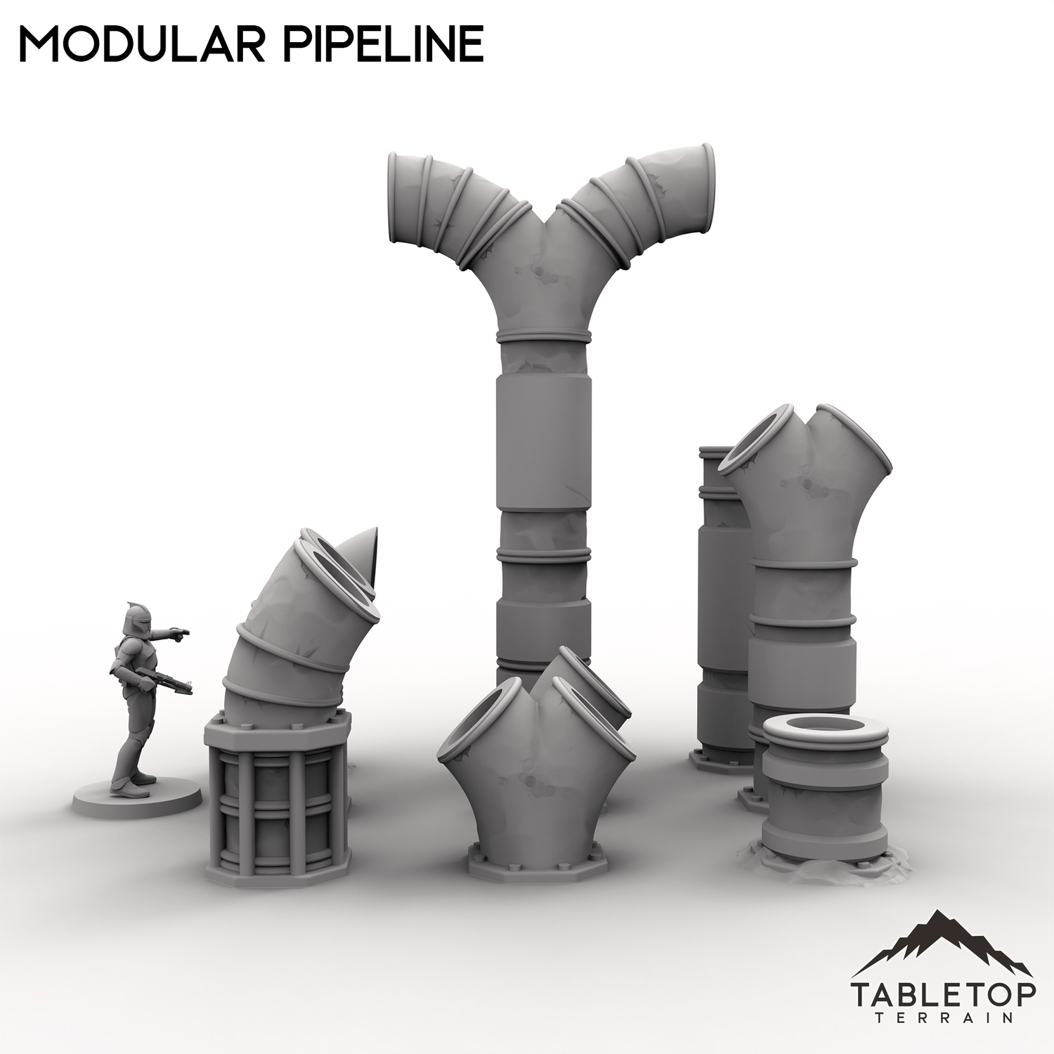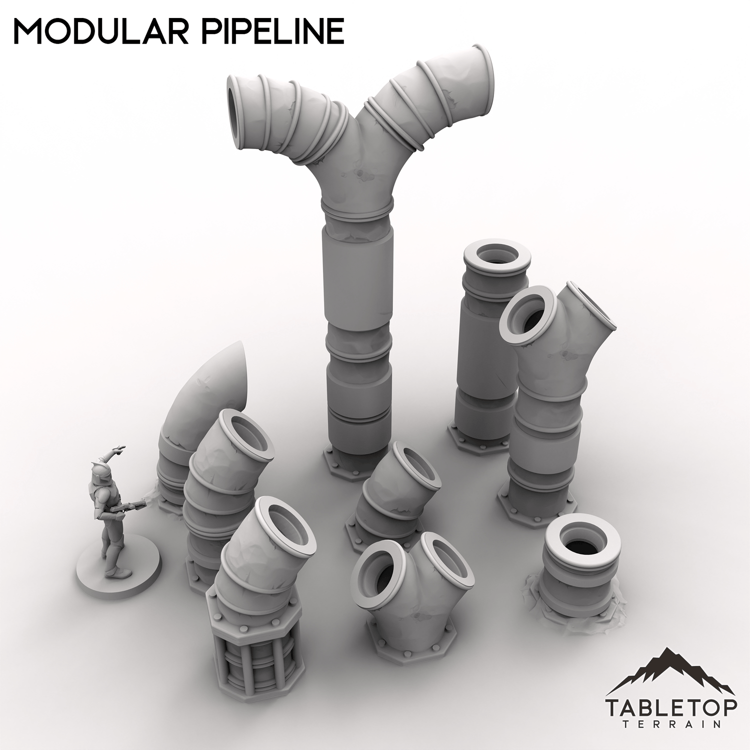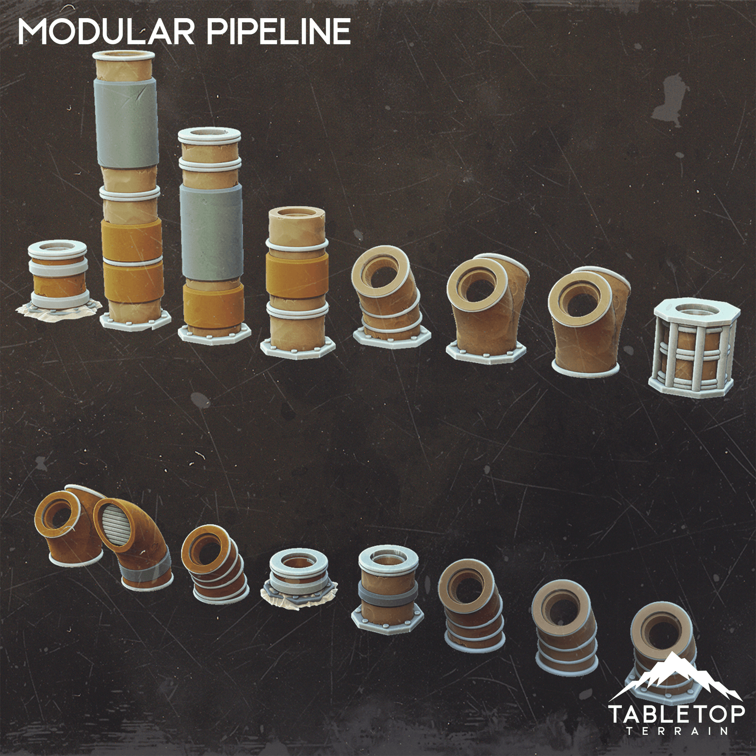 The Modular Pipeline consists of a number of segments you can assemble however you want! With sturdy connectors and reinforced sections, it can transport water, fuel, or other essential resources wherever they’re needed. Perfect to go with the rest of the Mos Jemra or other sci fi or industrial sets.