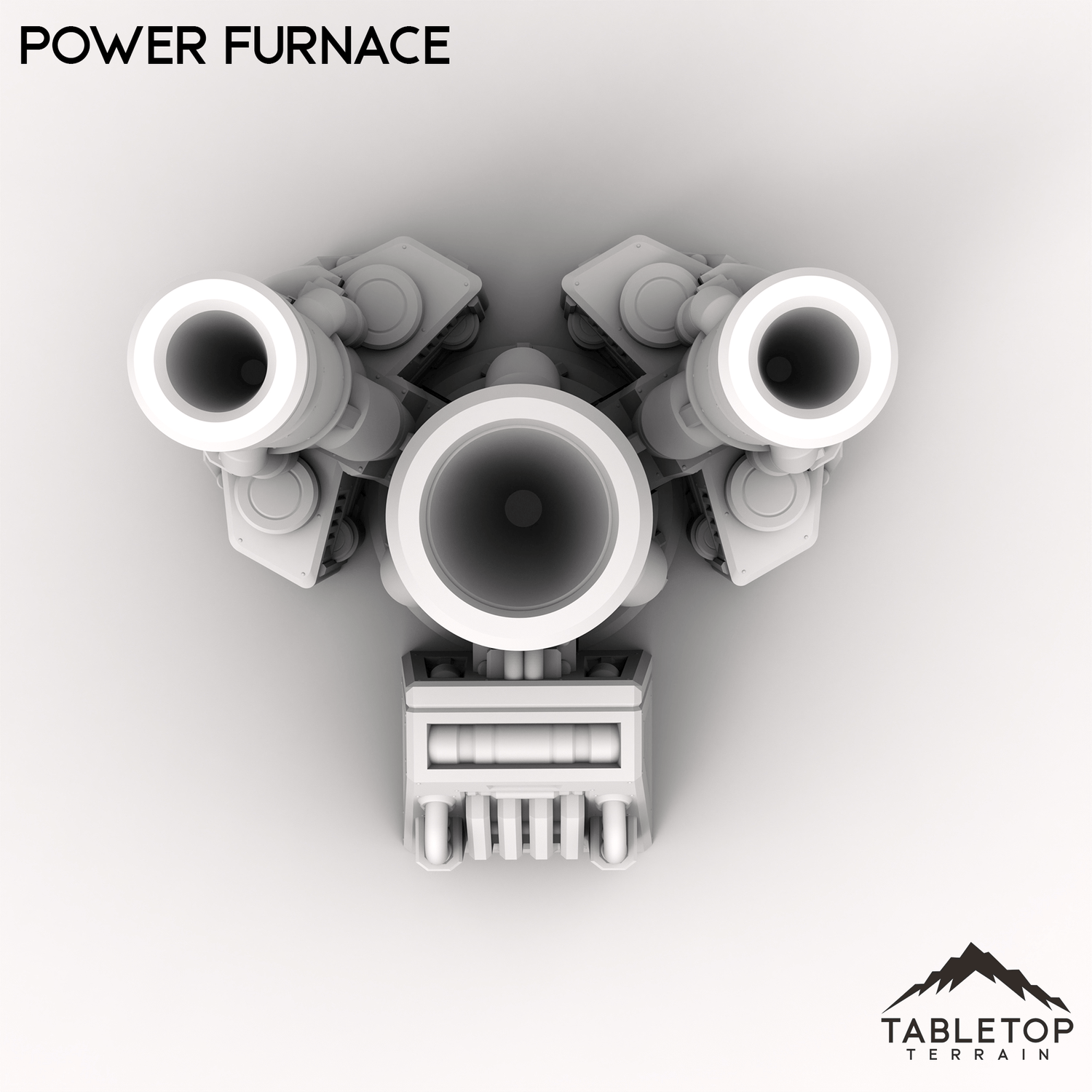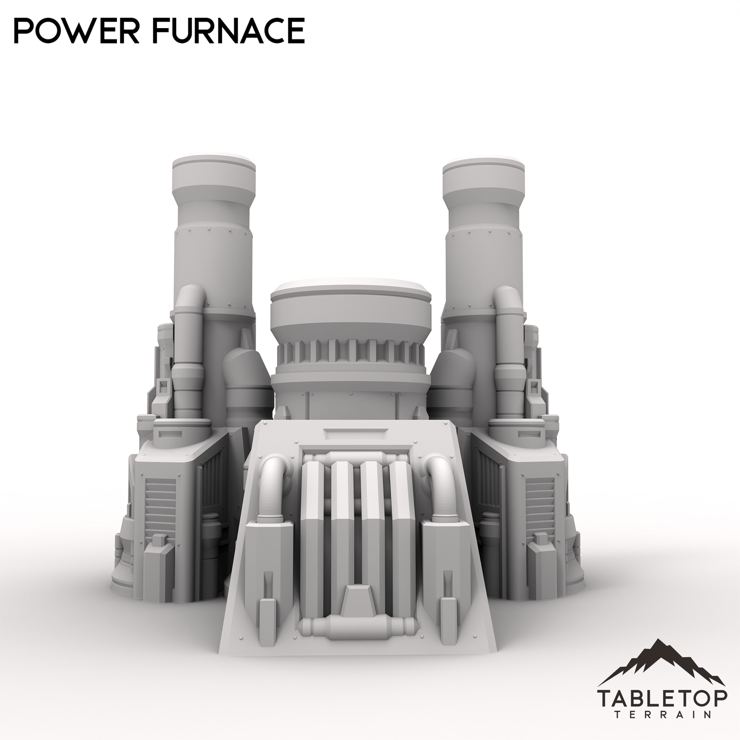 The Power Furnace is a towering structure featuring a central smokestack and twin auxiliary stacks with a heavy-duty generator attached. Designed for high-output operations, this furnace radiates heat and power, making it a centerpiece for refineries, factories, or war-foundries.