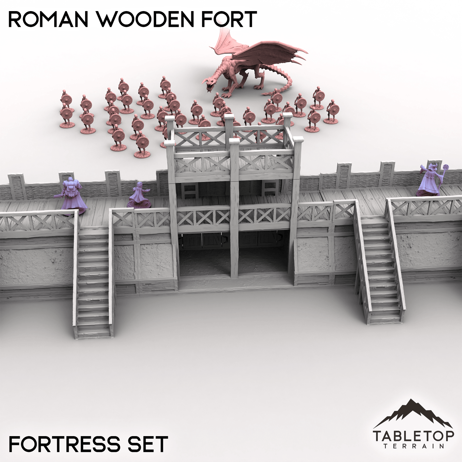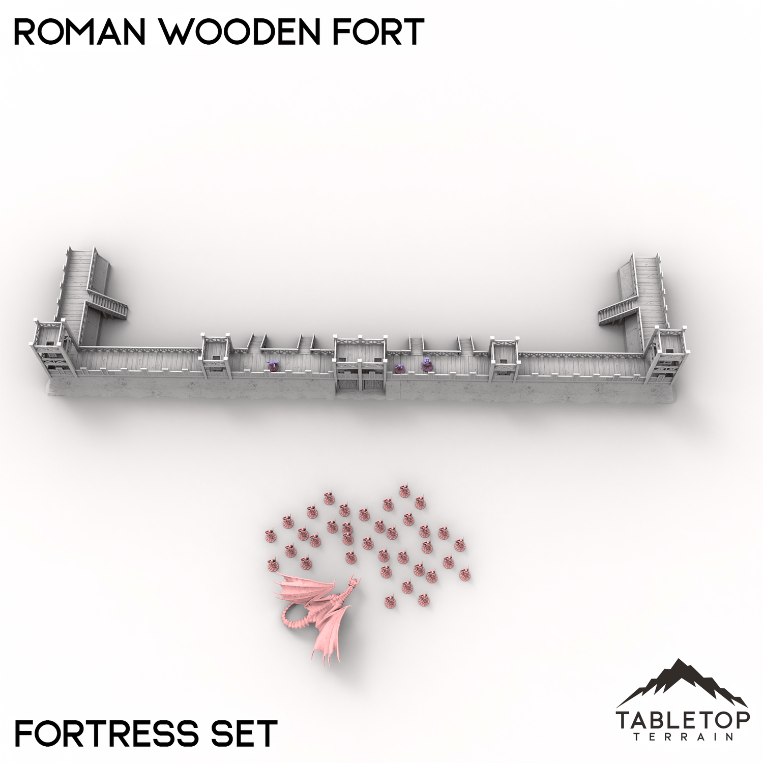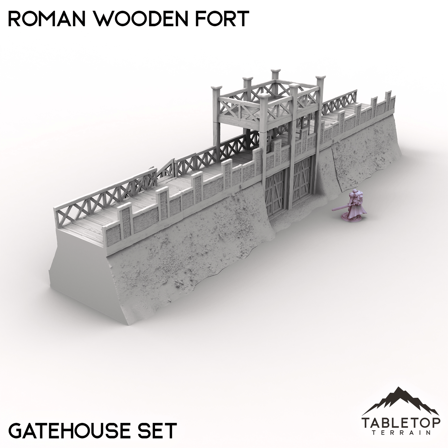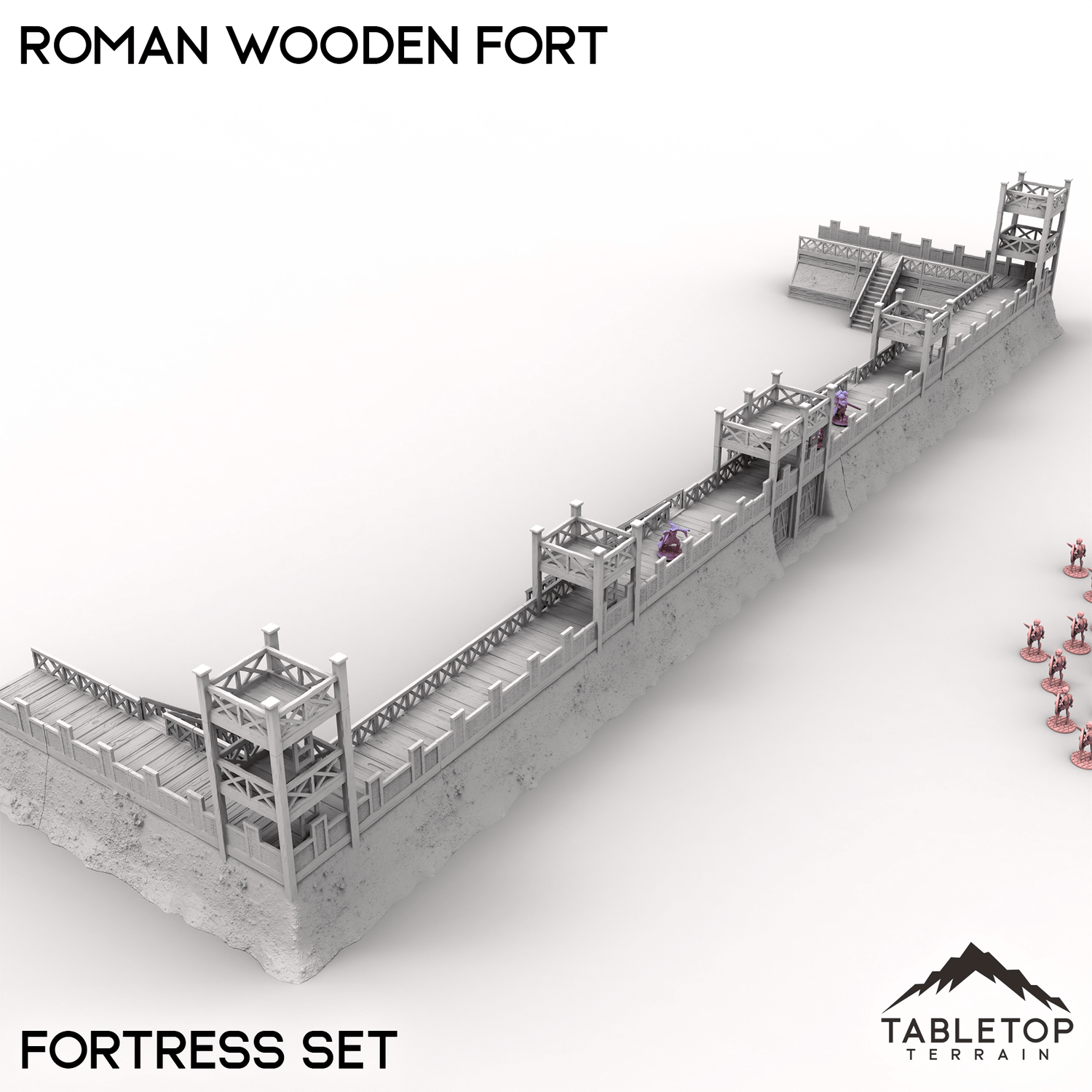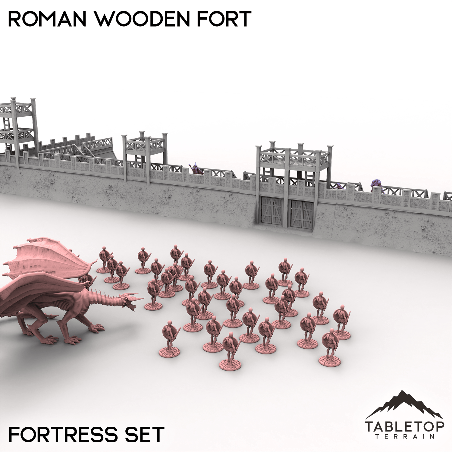 The Roman Wooden Fort is a massive set of fully modular walls and a powerful gatehouse. We offer two sets: the large fortress set, which is perfect for massive battles and large tabletop layouts. Or the Gatehouse set, which is made for smaller tabletop layouts or lower-sized battles. The walls are all textured to match classical design and function and feature functioning doors on hinges.