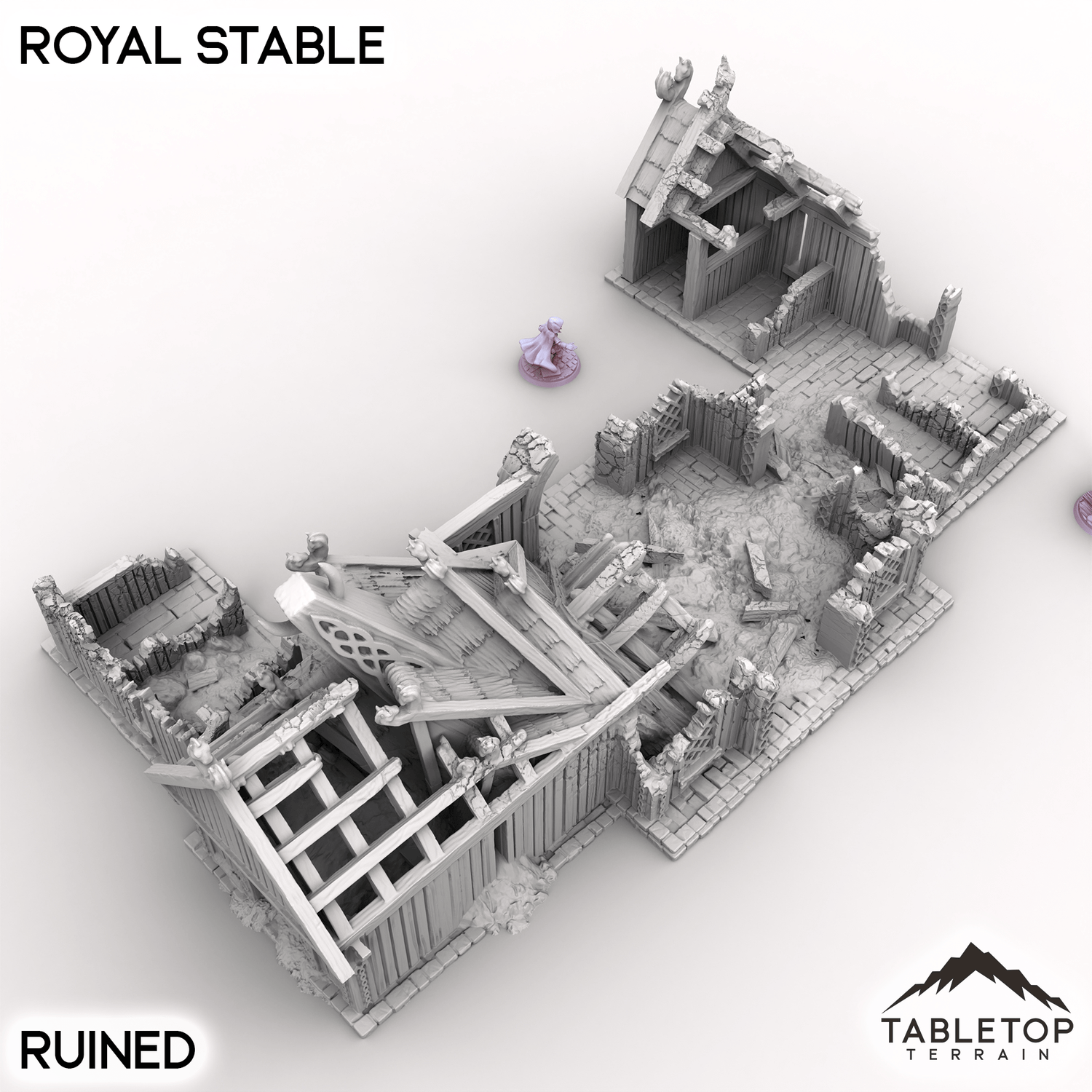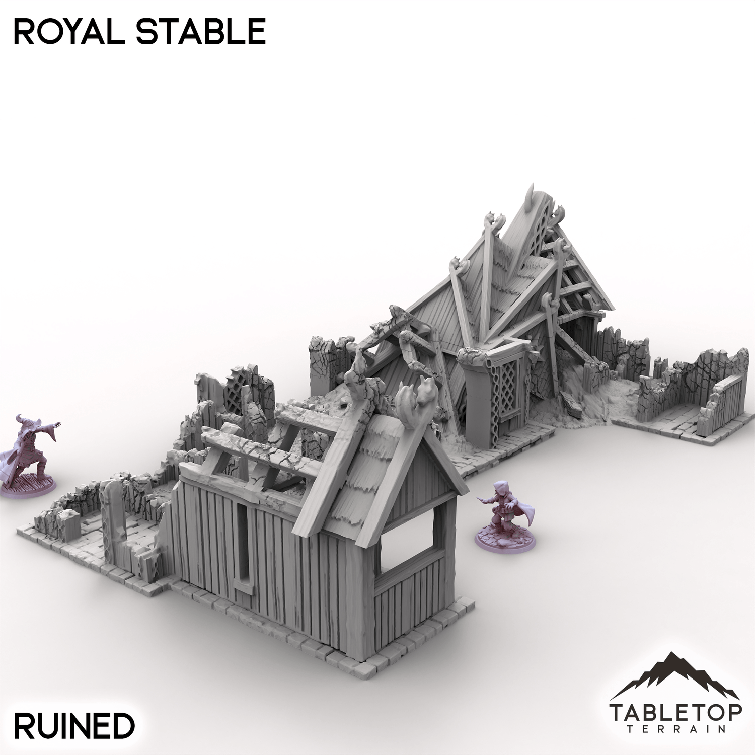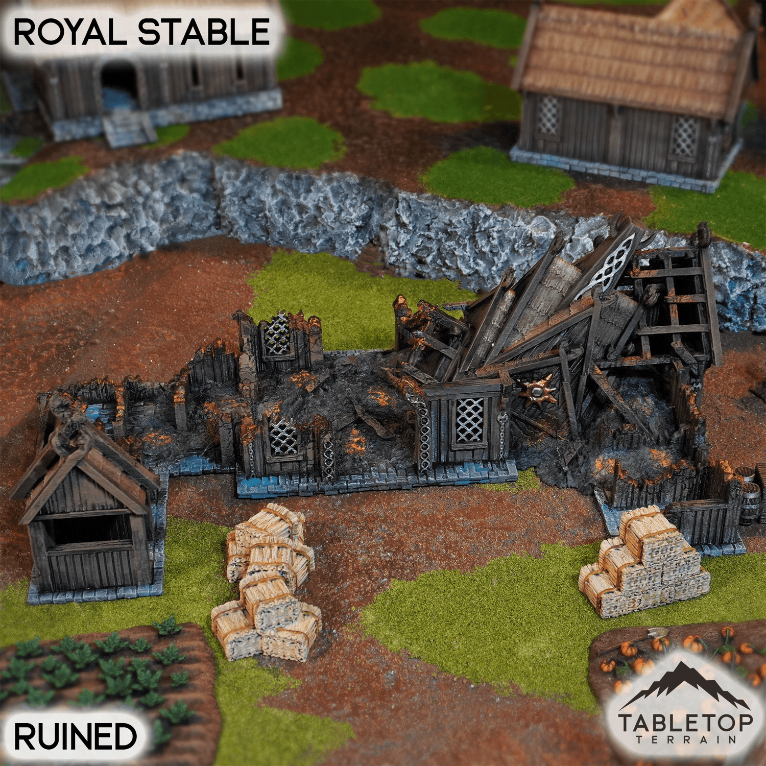 The Royal Stable is a large building from the Kingdom of Saxonia collection that comes in either an Intact version, or a Ruined version. The building features detailed texturing both inside and out, with plenty of room to fit minis inside while in use. We recommend using this set with other buildings from the Kingdom of Saxonia set to mix and match a large town tabletop.
