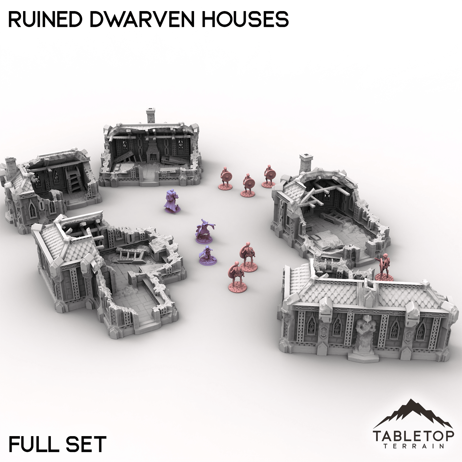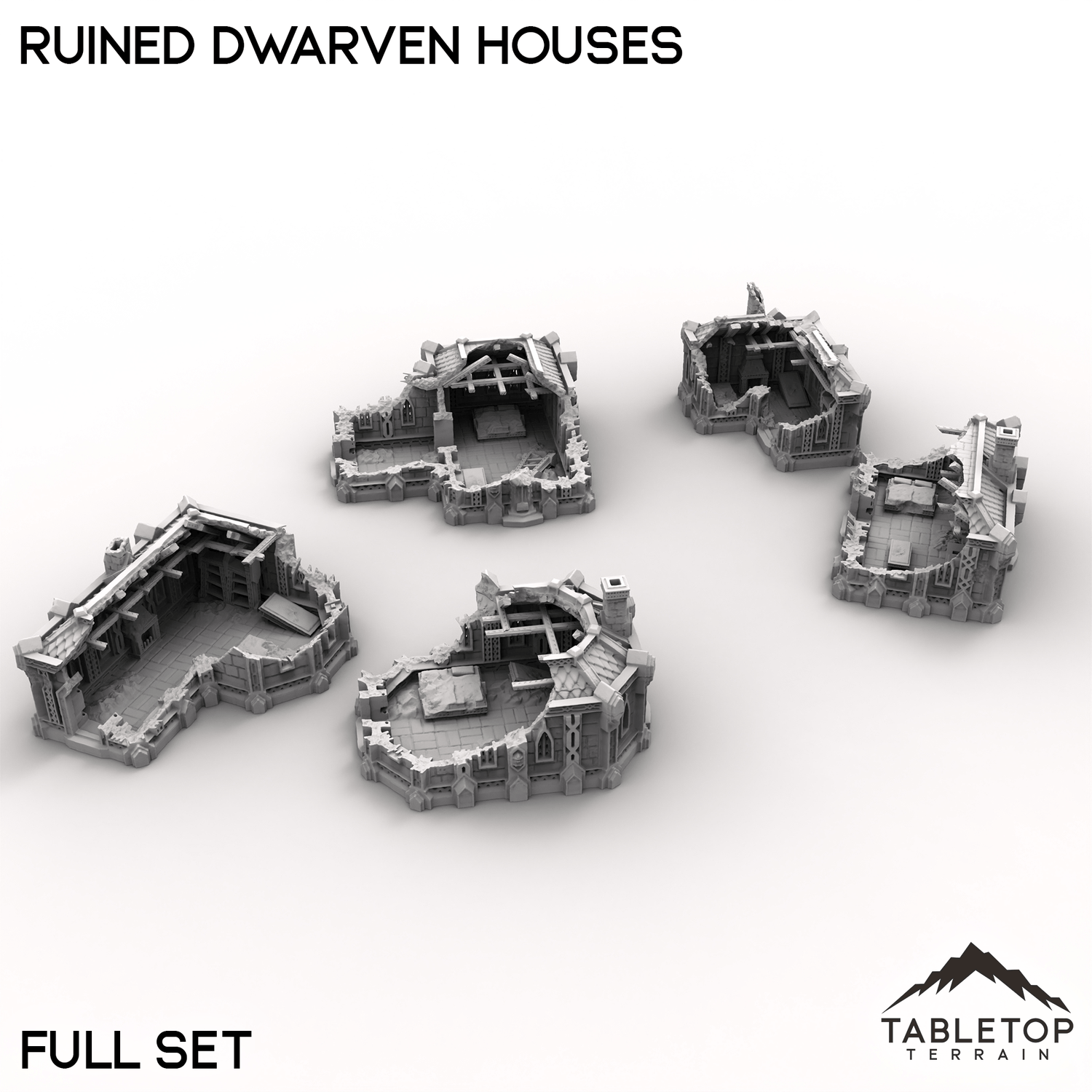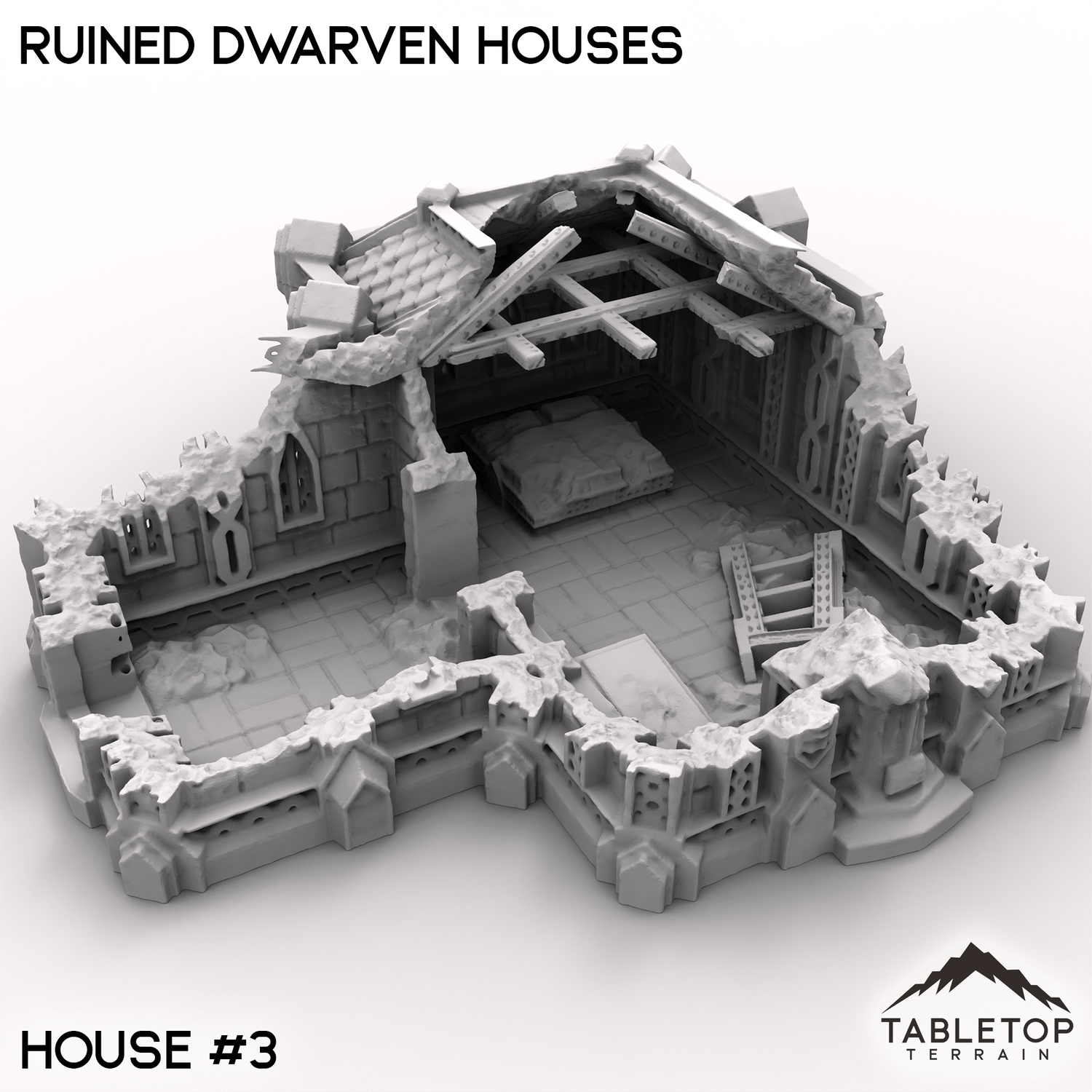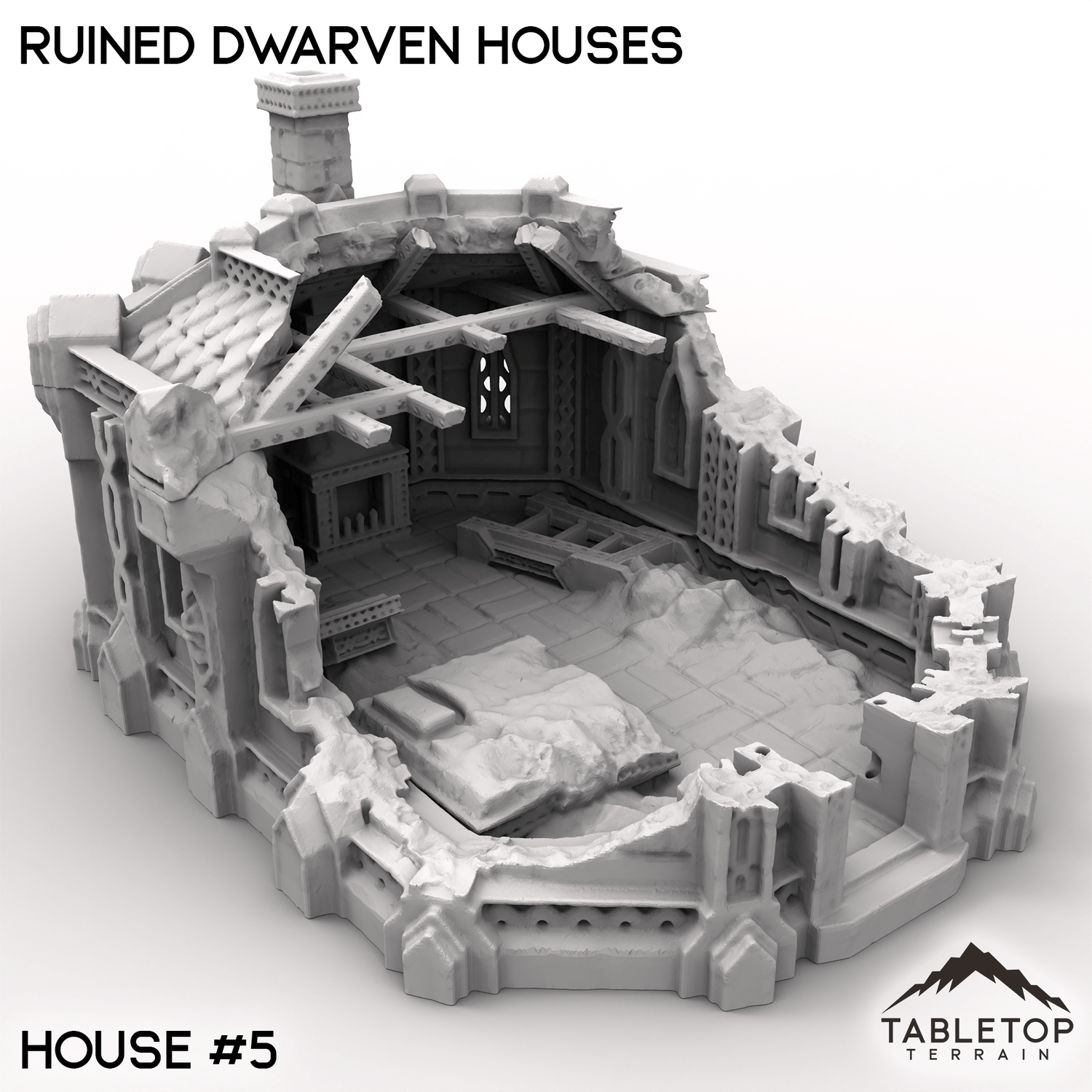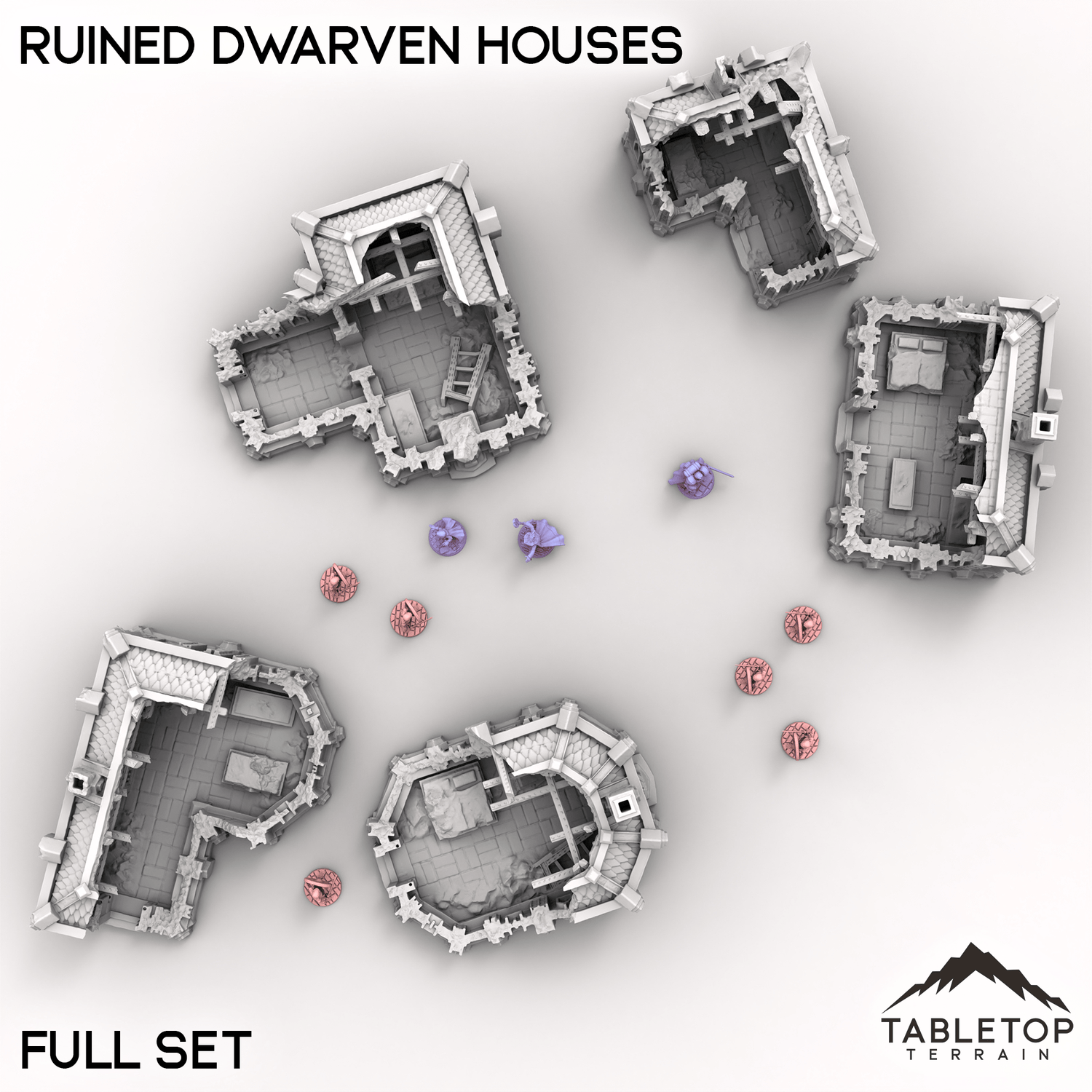 The Ruined Dwarven Houses showcase sturdy stone walls cracked and crumbling from centuries of neglect, with sections of roof completely missing. Collapsed beams and shattered masonry scatter the interiors making them ideal for close-quarters encounters and ambushes. Buy each piece individually, or the whole set at a discount.