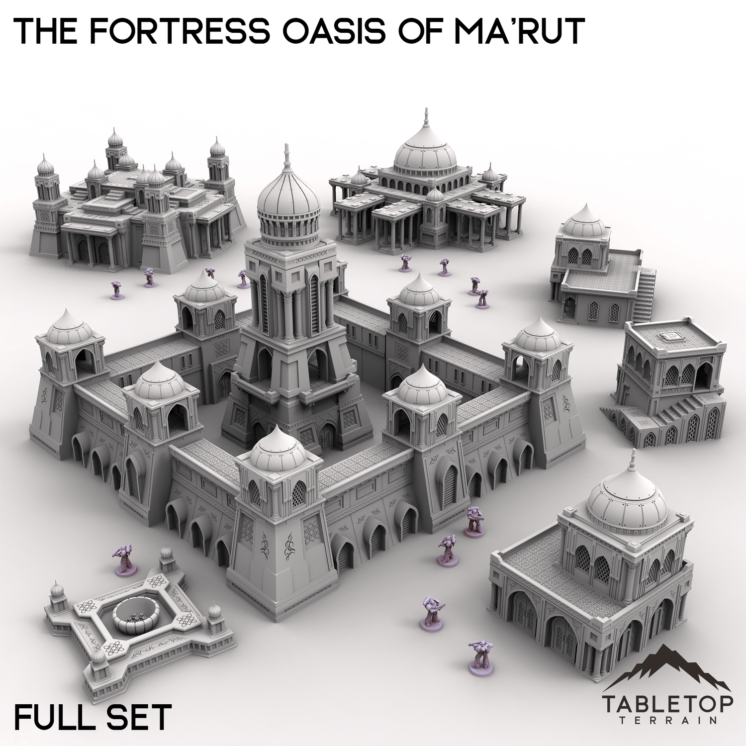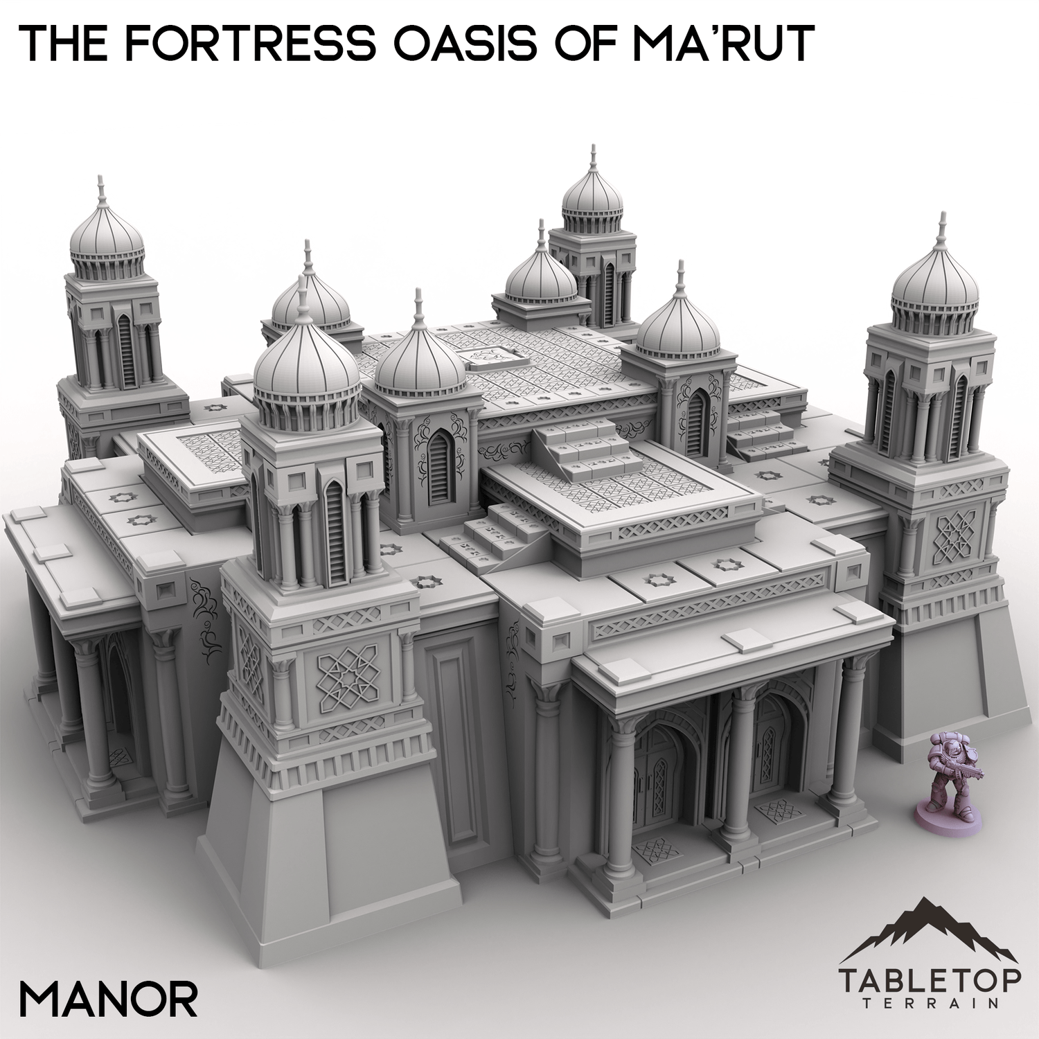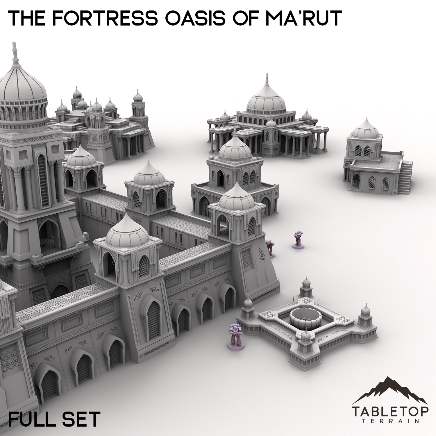 The Fortress Oasis of Ma’rut brings a rich blend of opulence and grandeur to your tabletop. This set includes a grand palace, elegant manor, residential hab blocks, detailed fountains, and fortified walls that surround the complex. Whether it's a desert stronghold, trade hub, or ancient city, the combination of architecture and scenery creates a vibrant setting full of narrative potential.