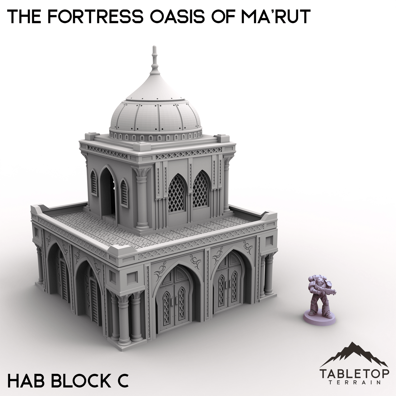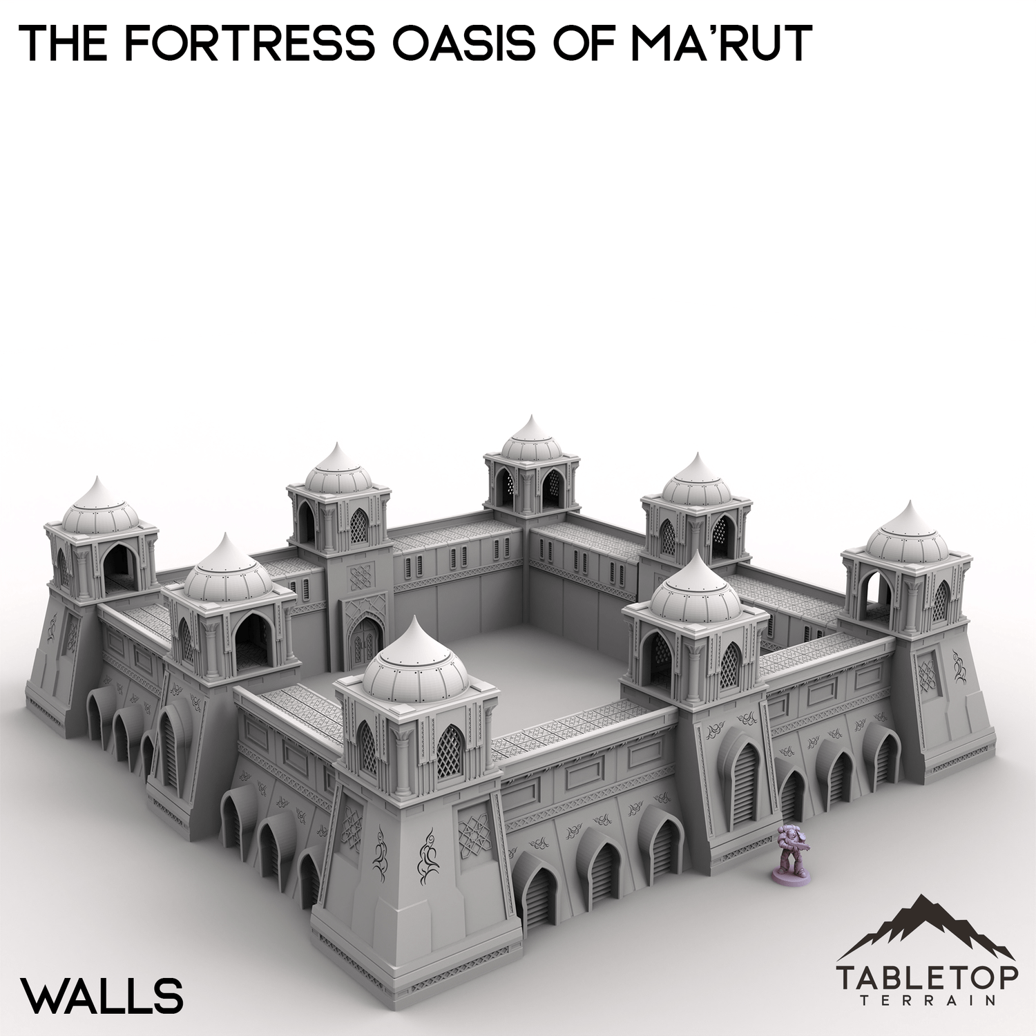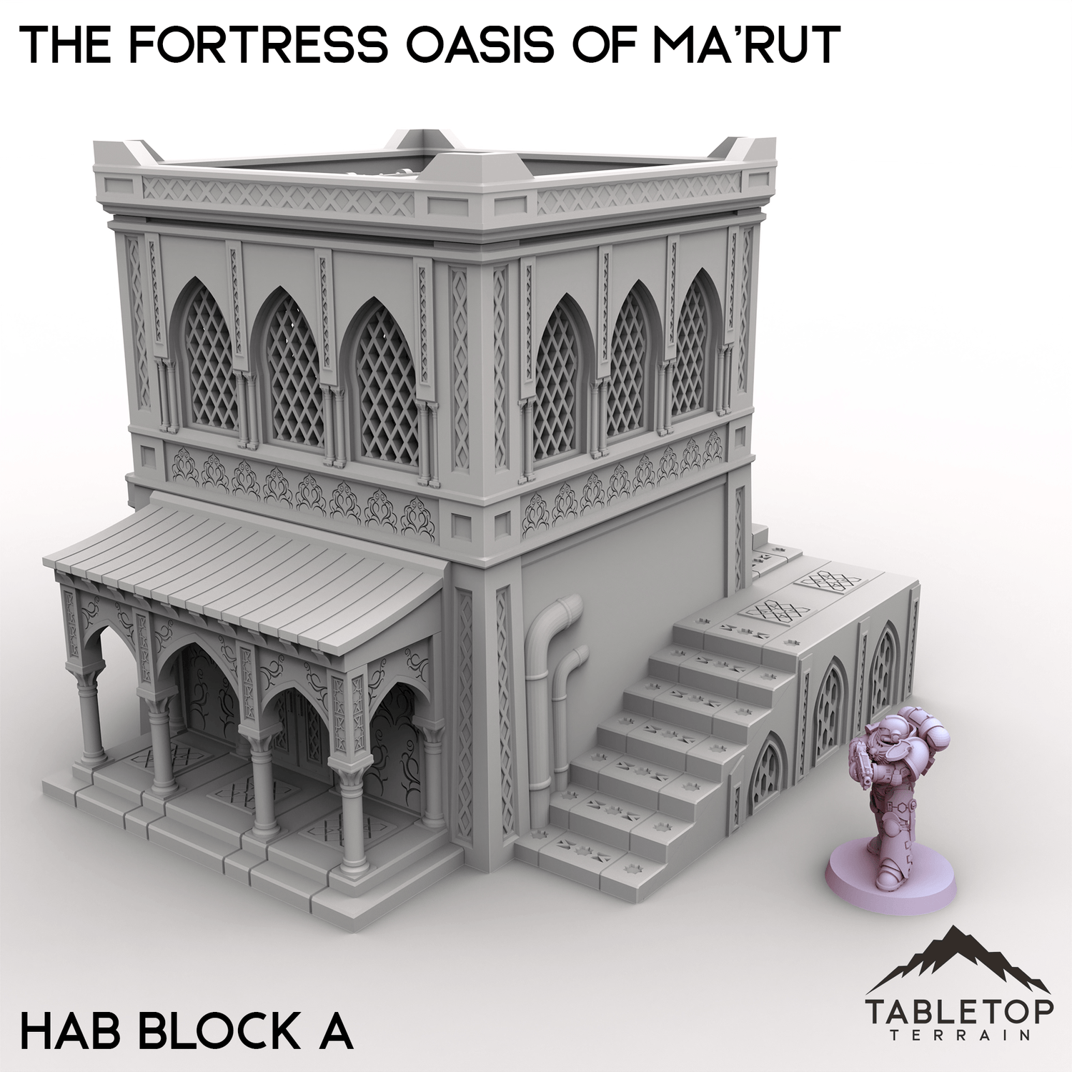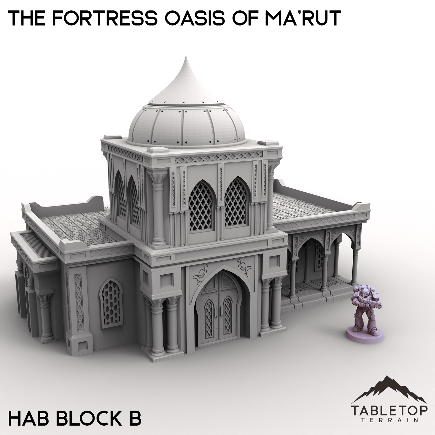 The Fortress Oasis of Ma’rut brings a rich blend of opulence and grandeur to your tabletop. This set includes a grand palace, elegant manor, residential hab blocks, detailed fountains, and fortified walls that surround the complex. Whether it's a desert stronghold, trade hub, or ancient city, the combination of architecture and scenery creates a vibrant setting full of narrative potential.