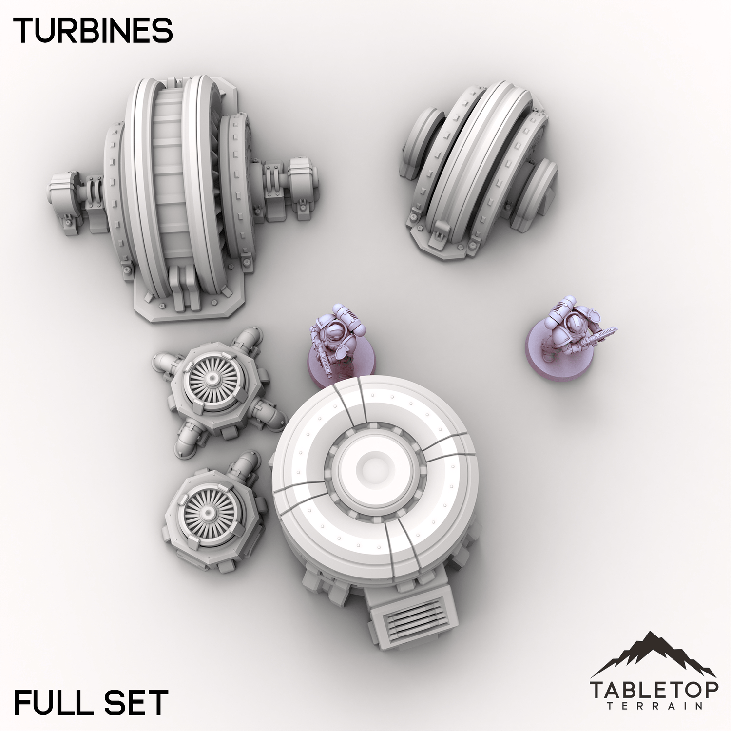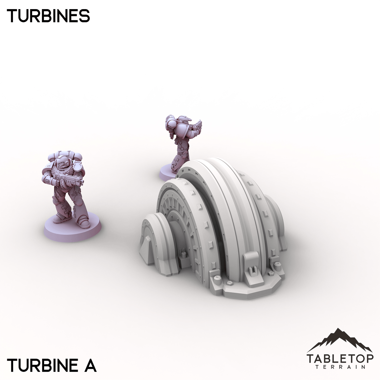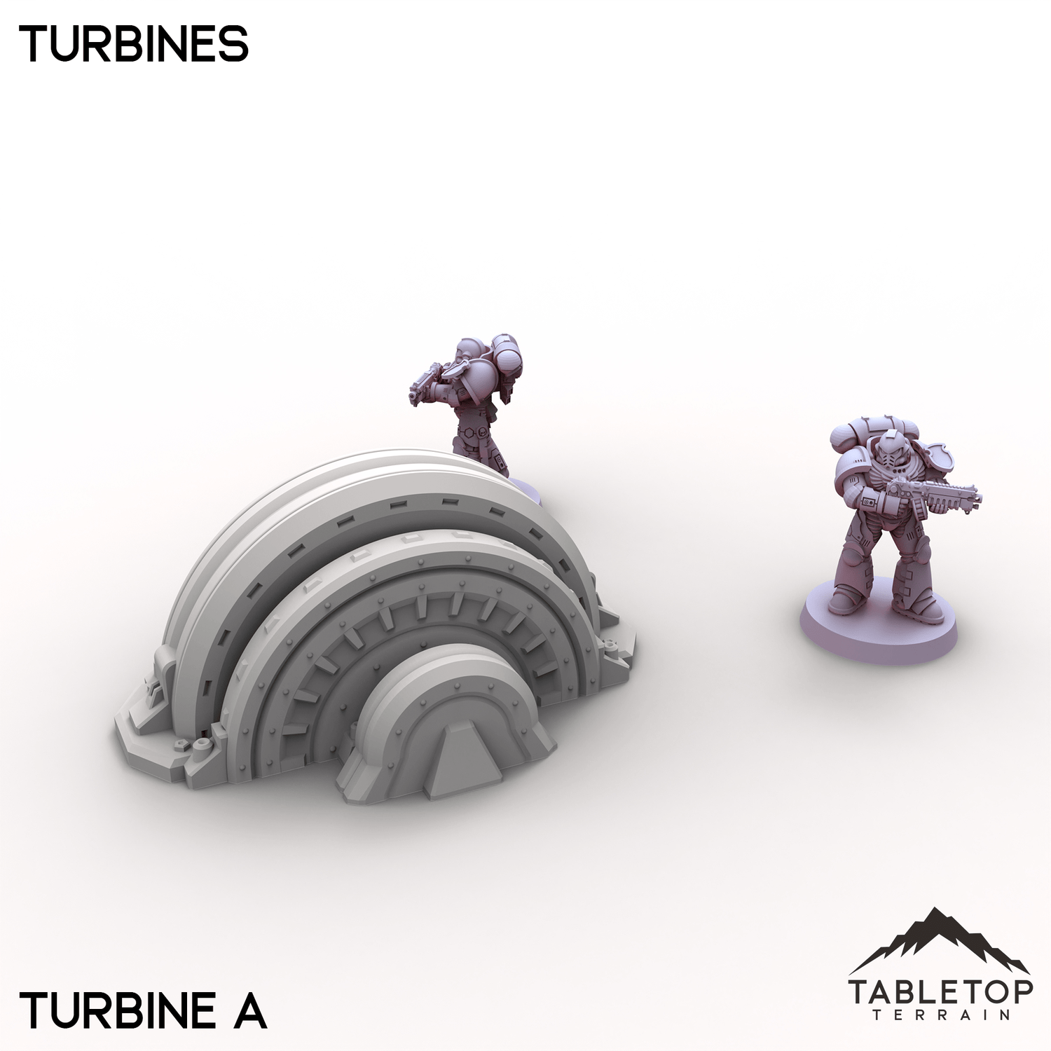 These Turbines convert raw energy into industrial power with a constant thrum and rotation. Packed with exhaust stacks, intake vents, and armored housing, they’re ideal as power infrastructure for bases, outposts, or refineries.