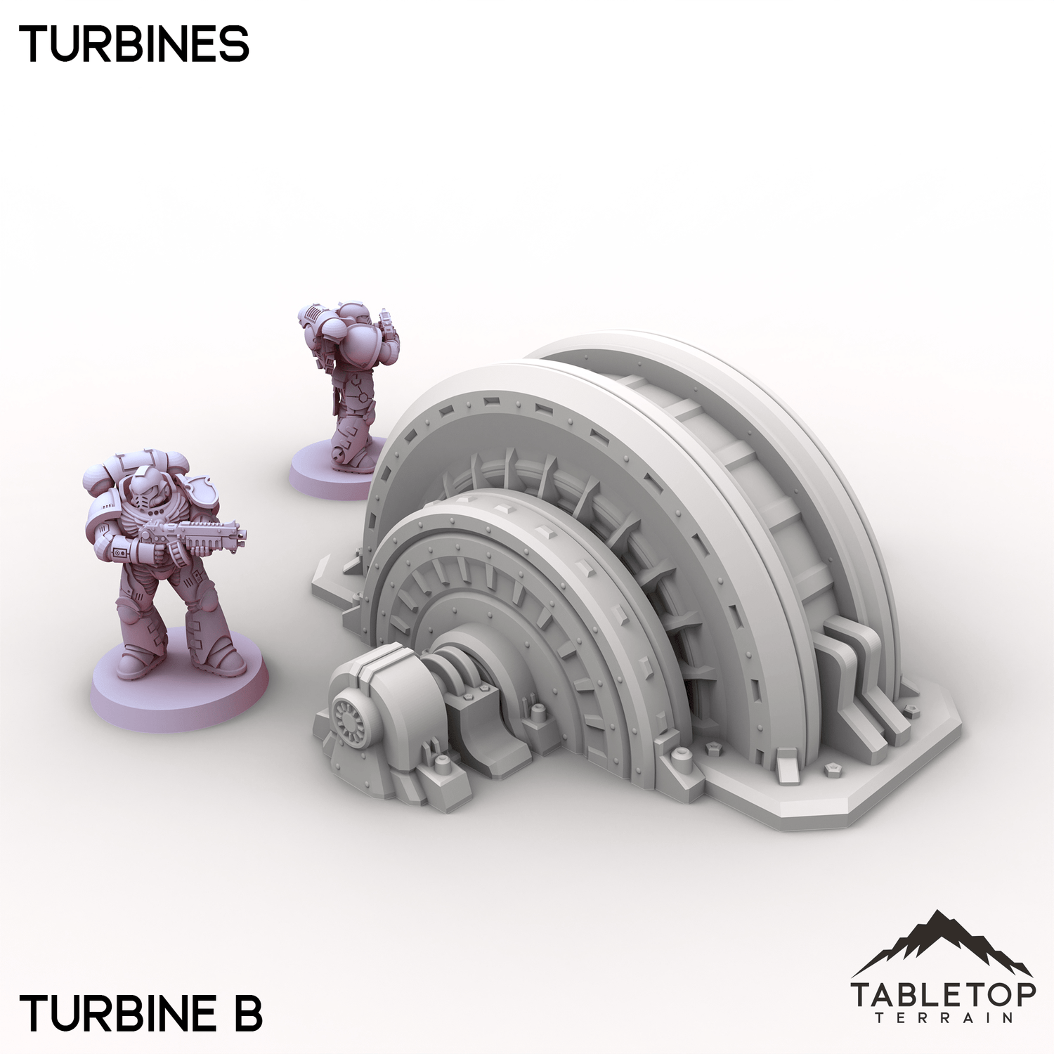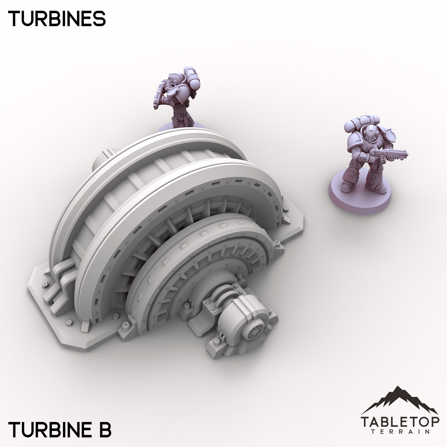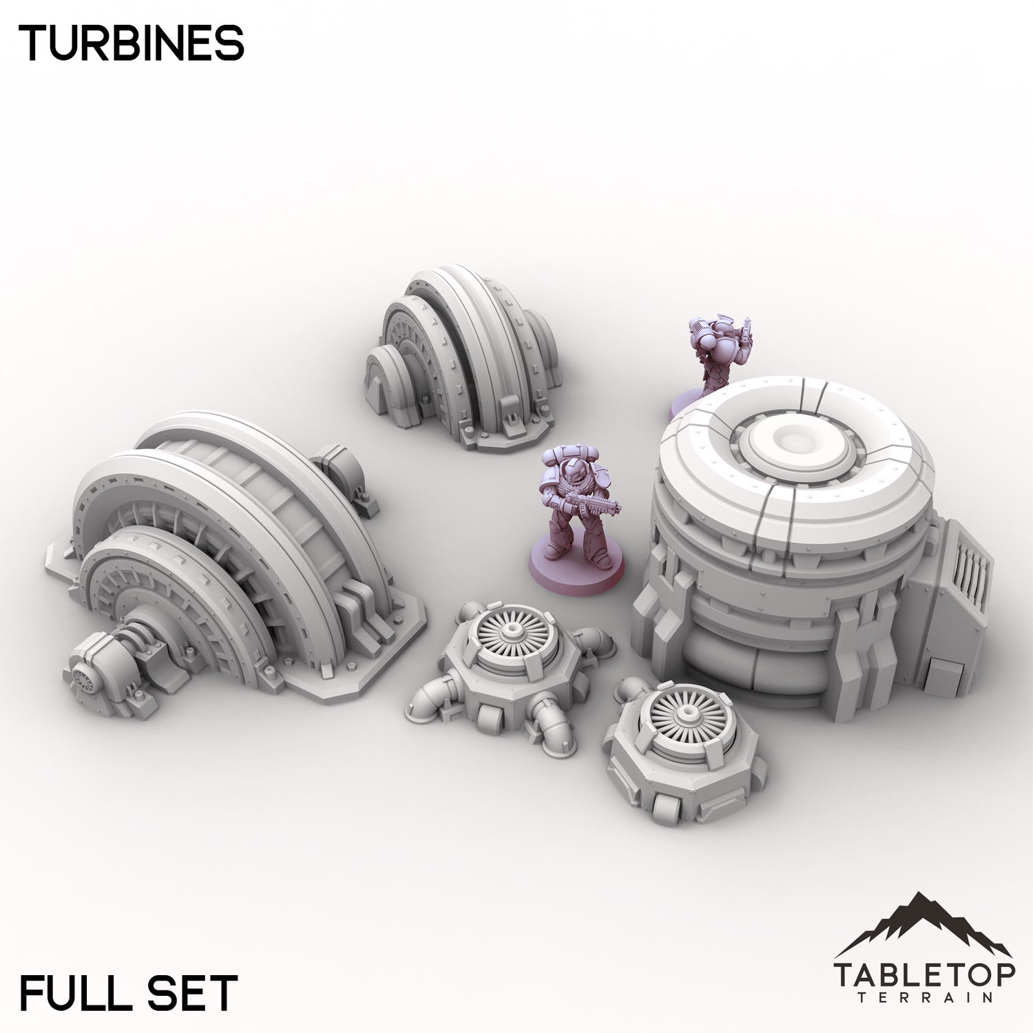 These Turbines convert raw energy into industrial power with a constant thrum and rotation. Packed with exhaust stacks, intake vents, and armored housing, they’re ideal as power infrastructure for bases, outposts, or refineries.