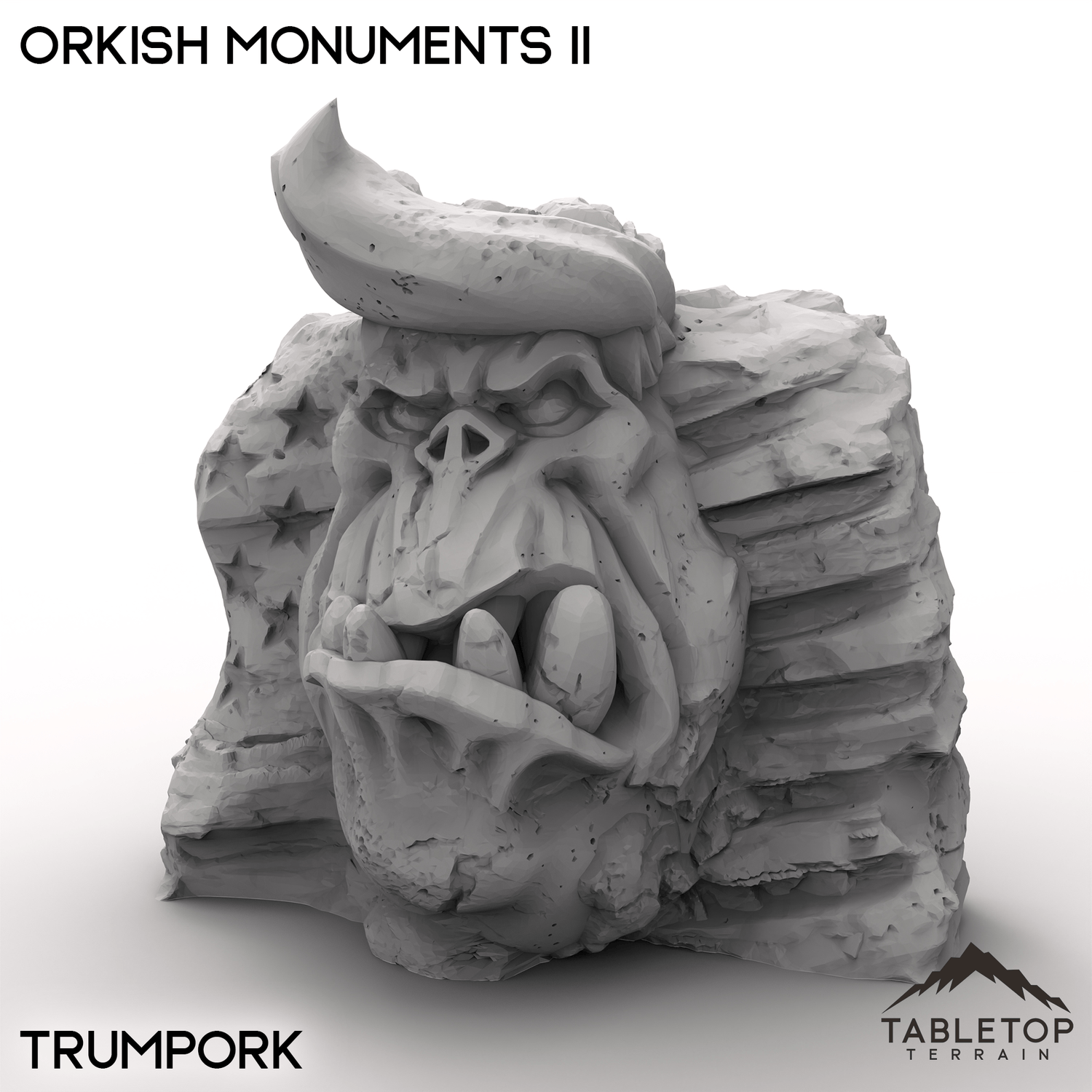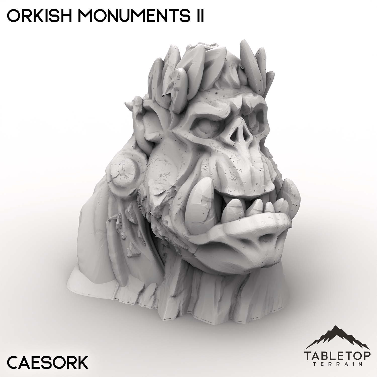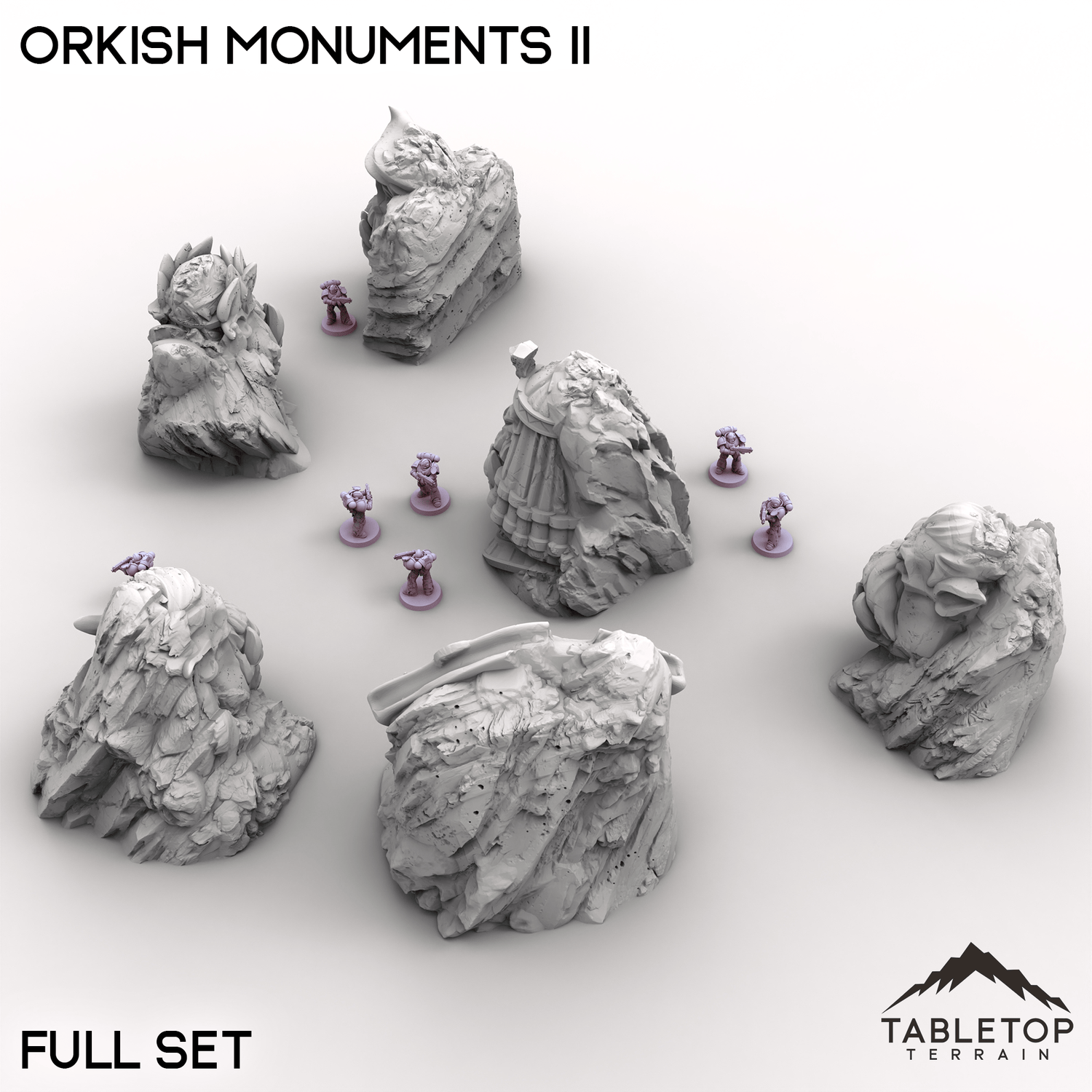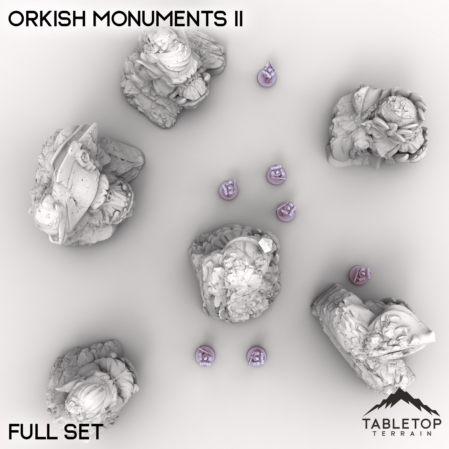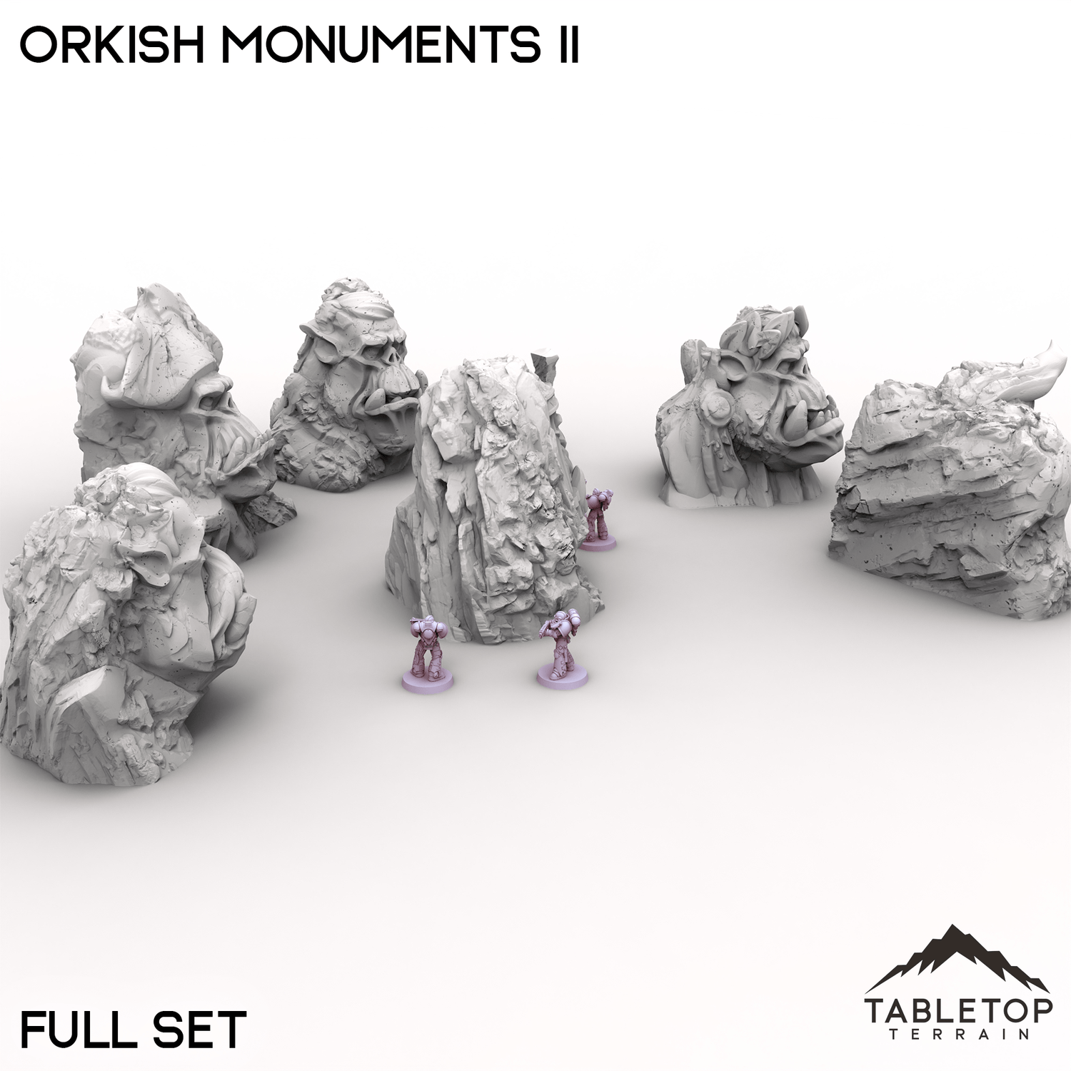 These Orkish Monuments set features stone effigies of warlords inspired by leaders from Earth’s history with a orkish twist. Perfect for adding humor to your battlefield or display, this set is sure to get a good laugh from anyone who spots them.