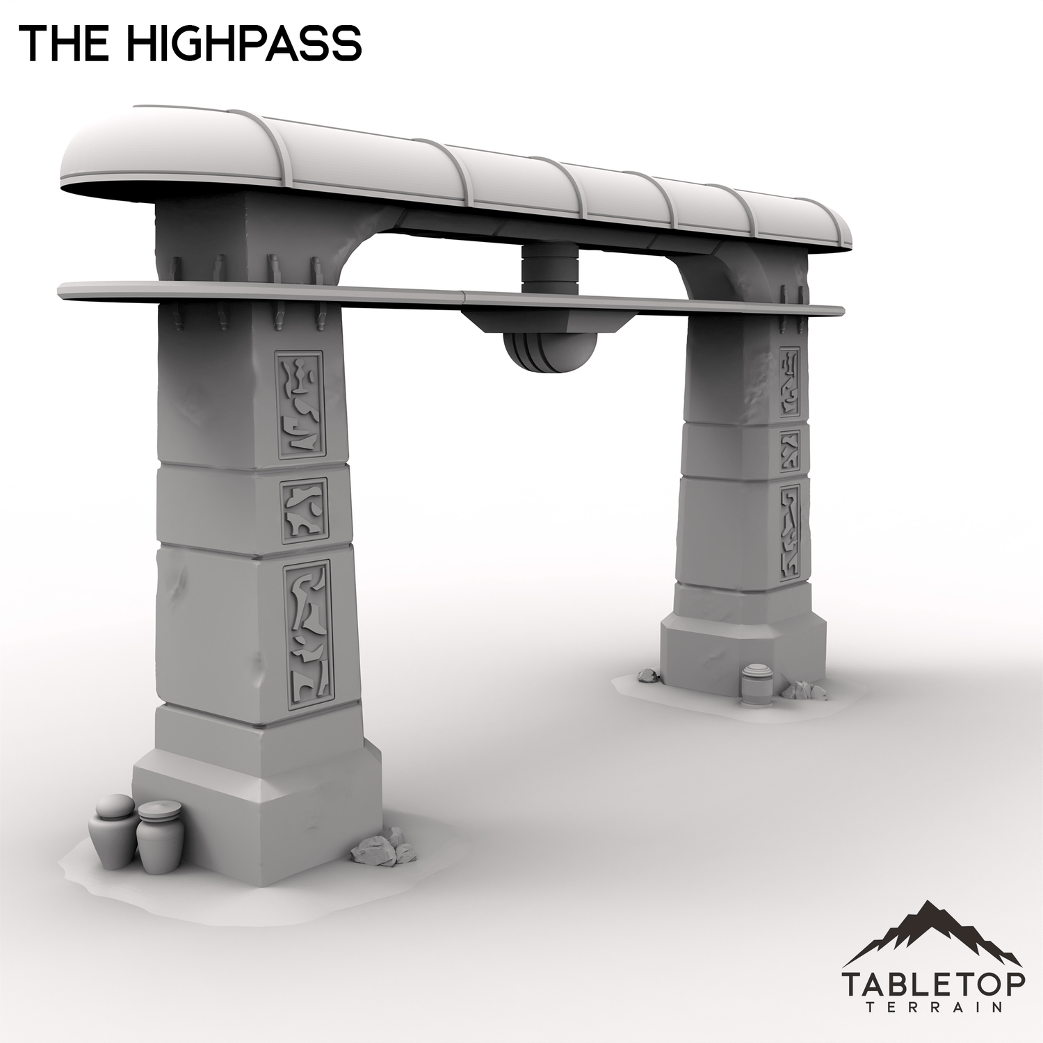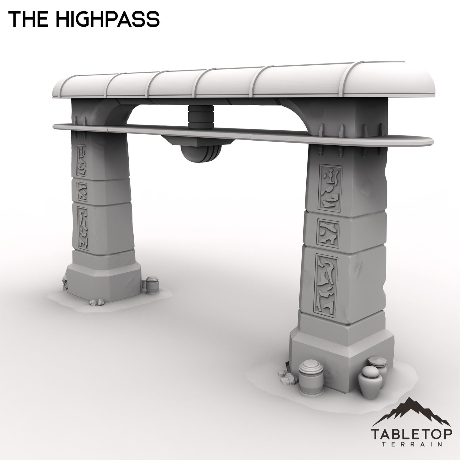 The Highpass is a tall bridge, with massive spotlights and detailed stone pillars supporting the pathway they hold aloft. The Nomad's Sanctuary sets are all perfect for sci-fi games, cyberpunk tabletops, or desert outposts. Each building is made to be easy to setup and paint.