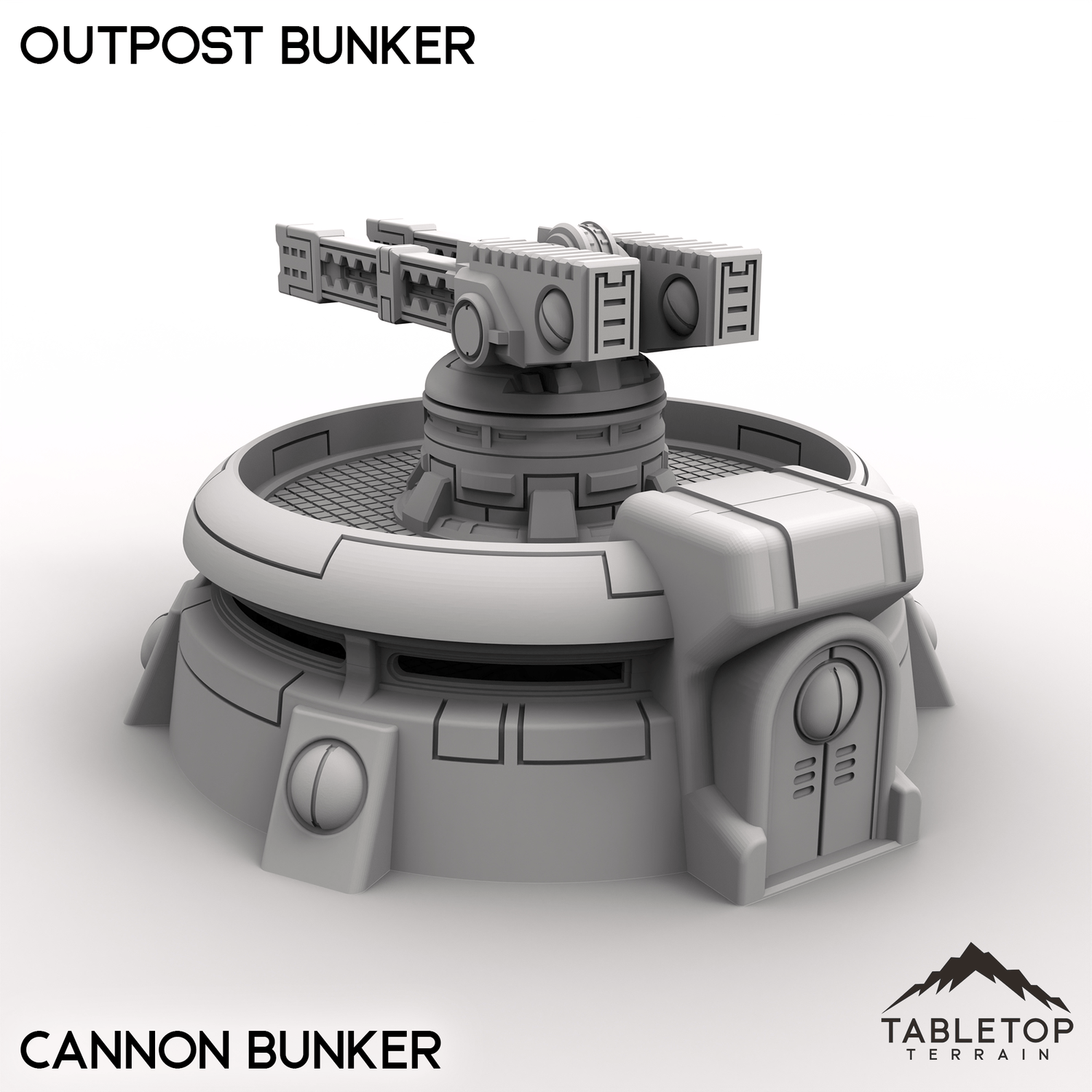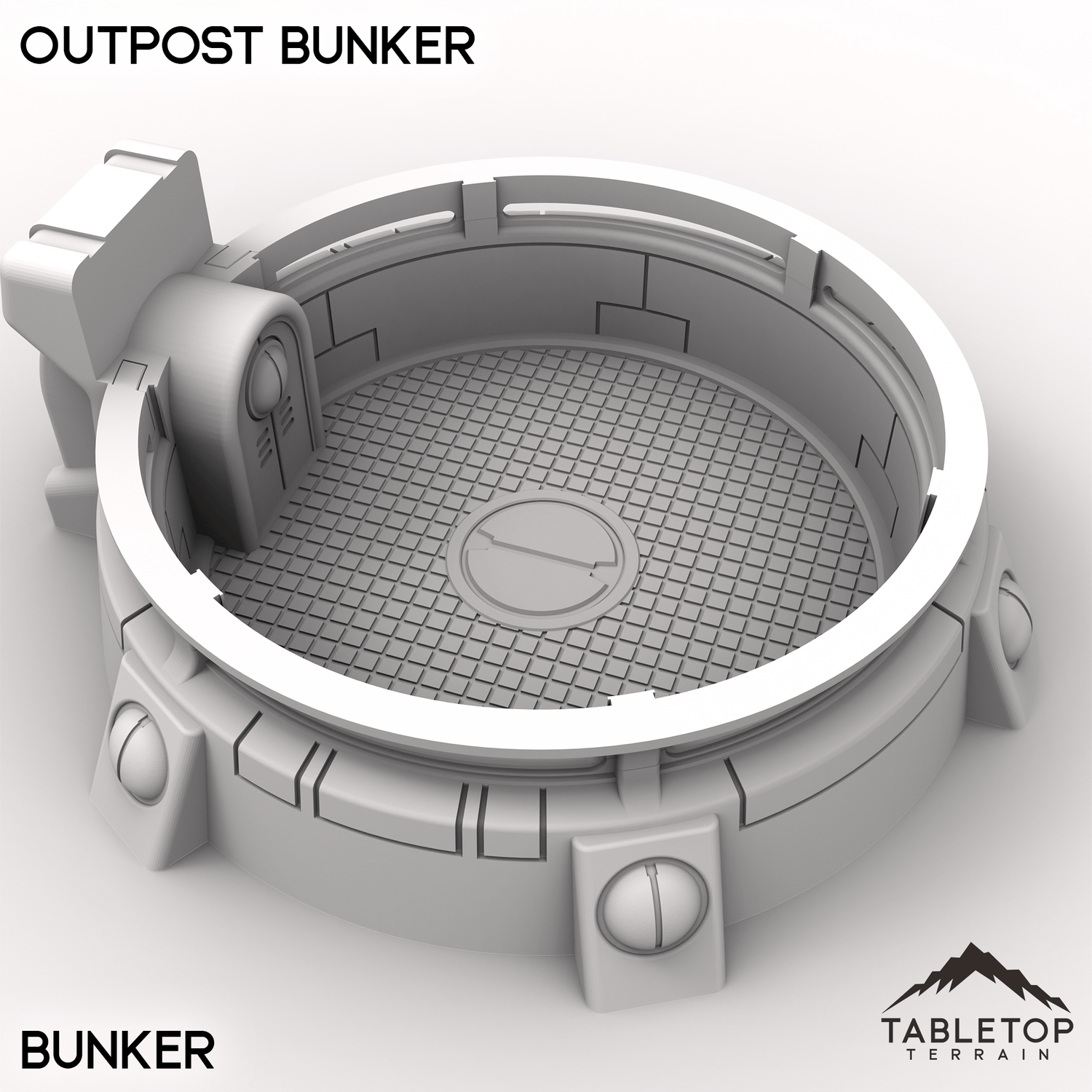 The Outpost Bunker is circular with narrow firing slits cut around its perimeter. One variant has a solid, low roof that makes the whole structure feel squat and defensive. Another swaps the roof for a defensive platform giving lookouts a place to stand, while the last version mounts a heavy gun on top, turning the bunker into a strong defensive point.