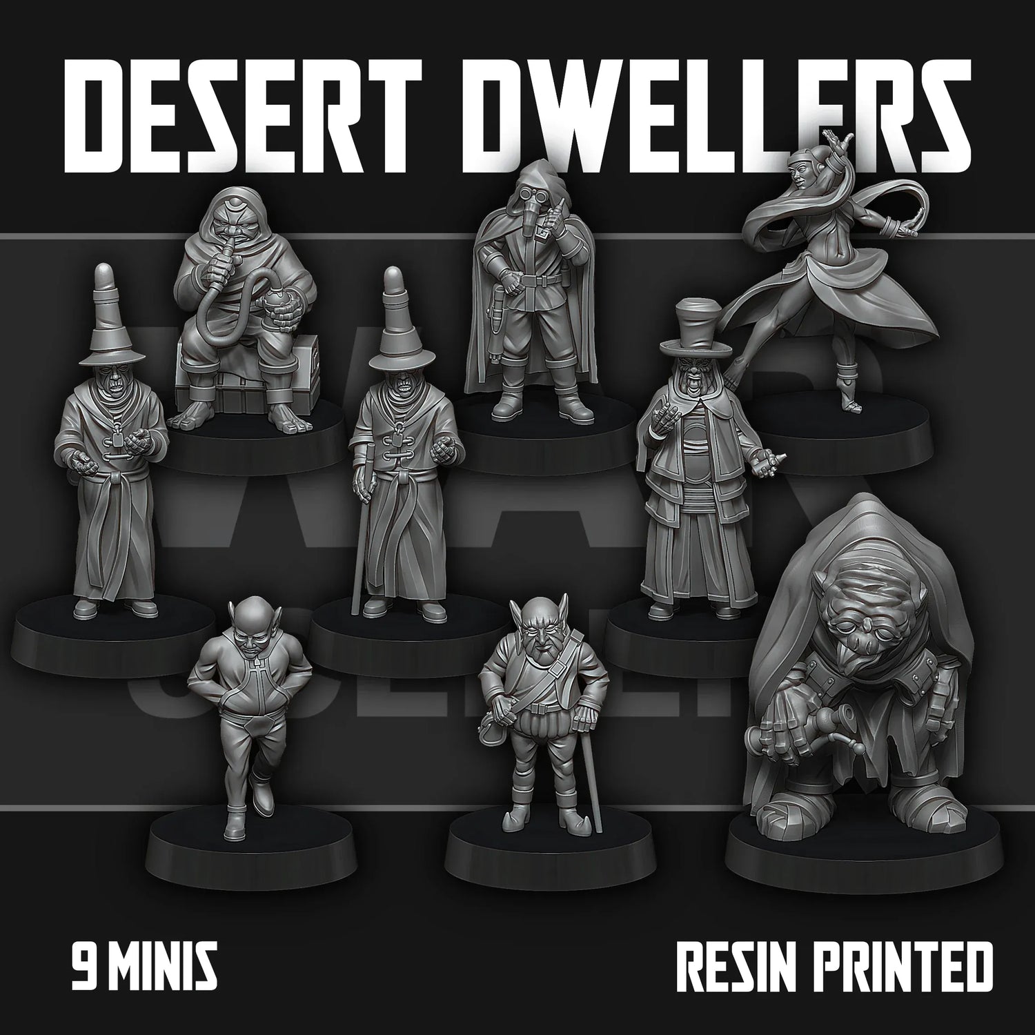 Included: 10 Desert Dwellers in 1:47 (35mm) scale and 10 27mm bases.