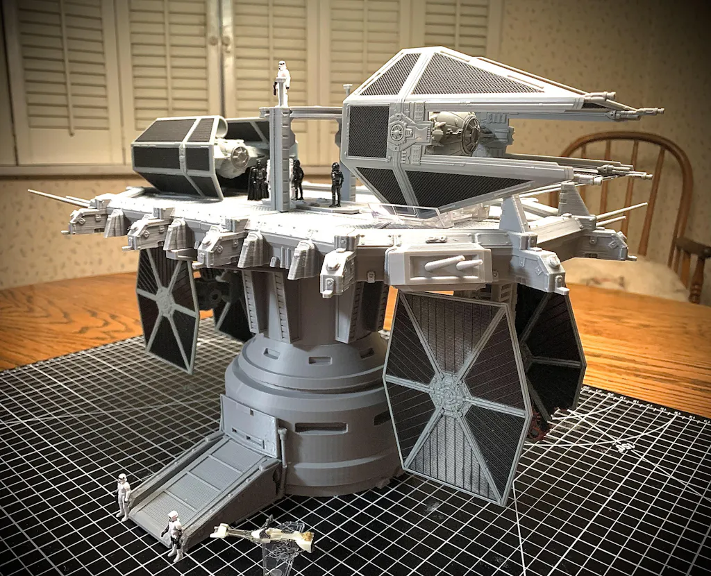 The Grimdark Landing Platform is a large landing pad with control station and ramp for infantry to climb up. If you are looking for a smaller version, check out the Grimdark Landing Pad.