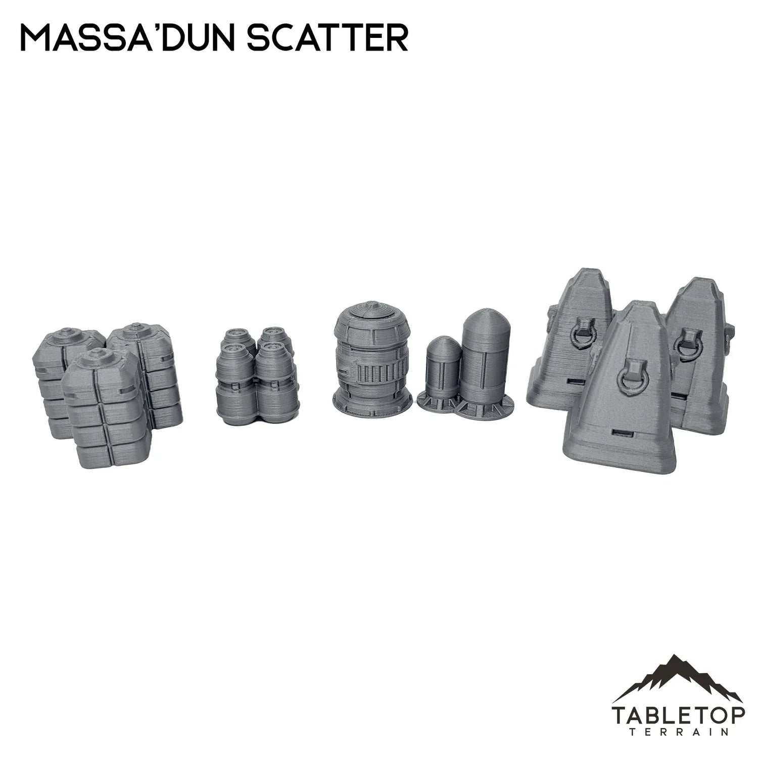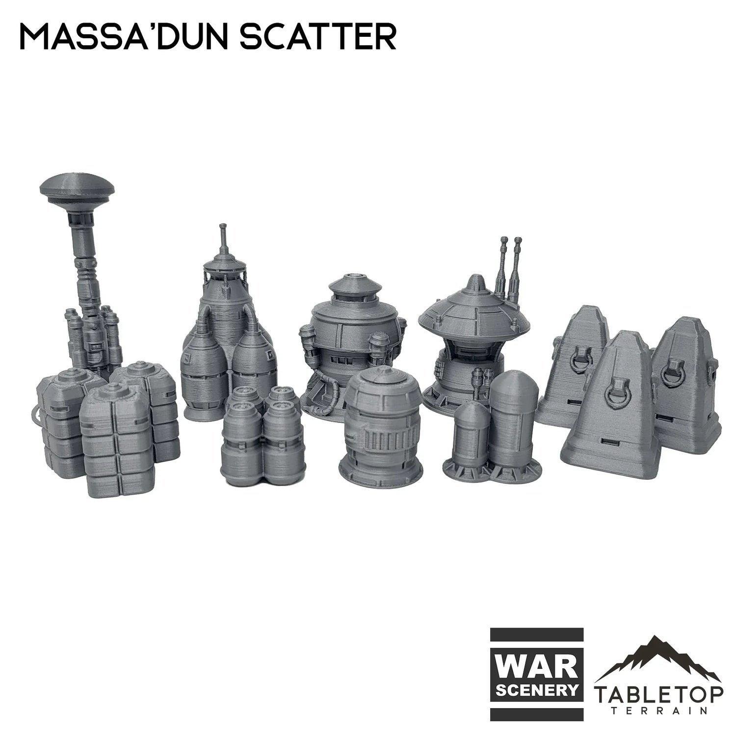 The Massa'Dun Scatter set is an Outer Rim styled terrain set featuring crates, barrels, fertilizers, and defrosters. The set is printed in 40mm, 28-35mm (1:47), 20mm, and 15mm scale. We recommend the 40mm scale for Shatterpoint and the 28-35mm (1:47) scale for Legion.