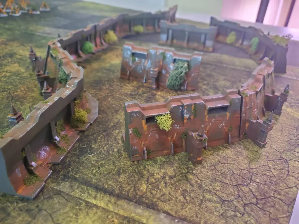 The Defense Walls set is part of the Wall of Saints collection. This set features of am mixture of different wall pieces for you to mix and match while creating your own stronghold. The walls in this set can work on their own on any tabletop, or can be combined with any other sets from the the Wall of Saints collection. The Defense Walls designed for sci-fi wargames, but can be used with any system.