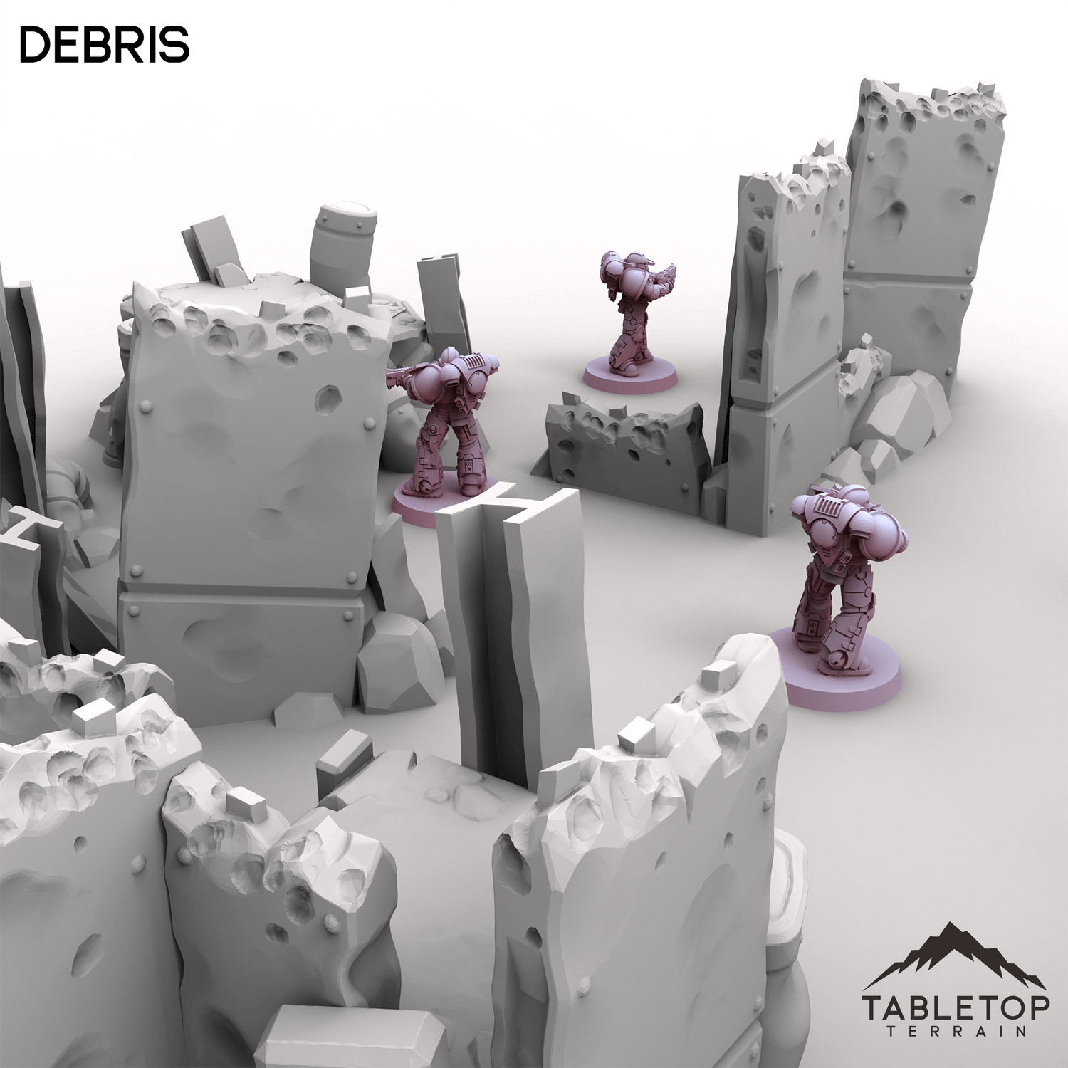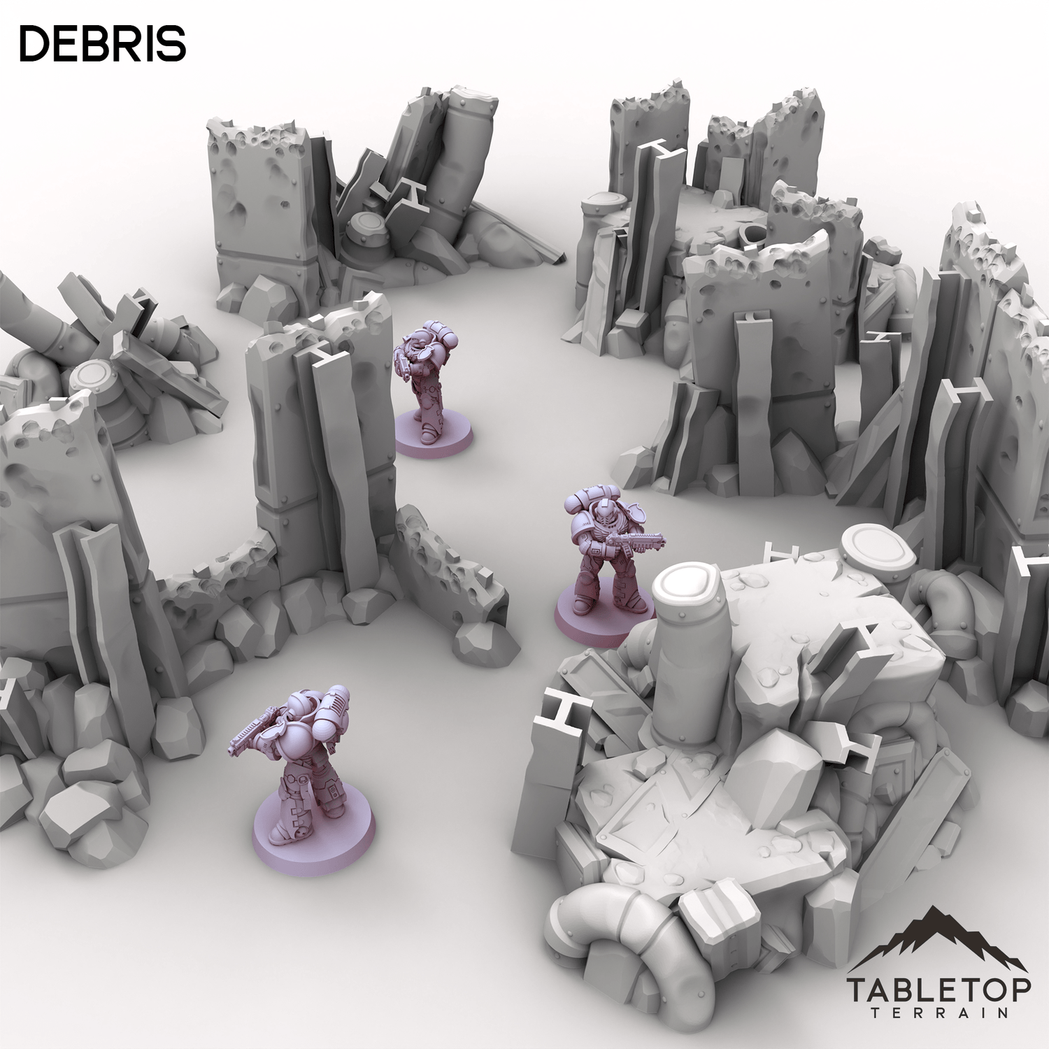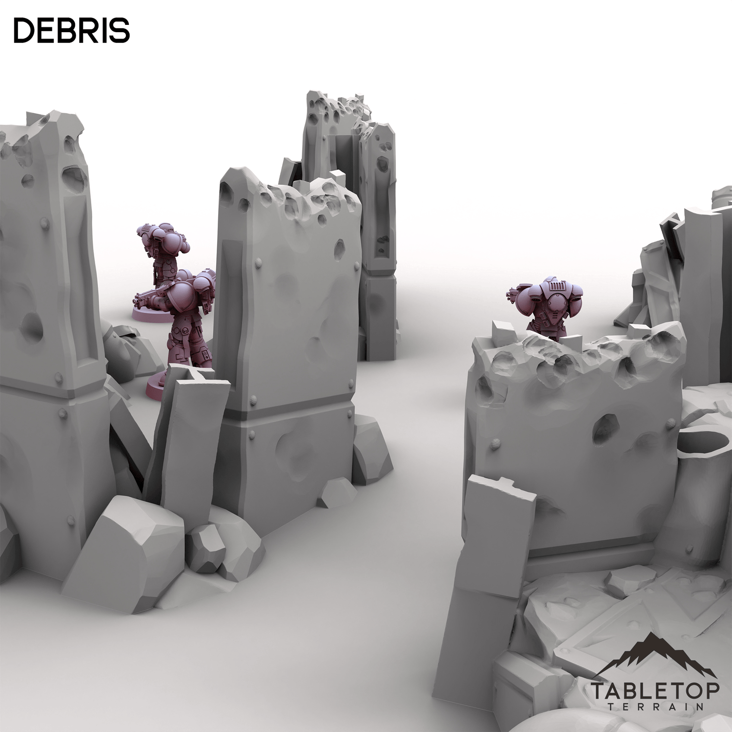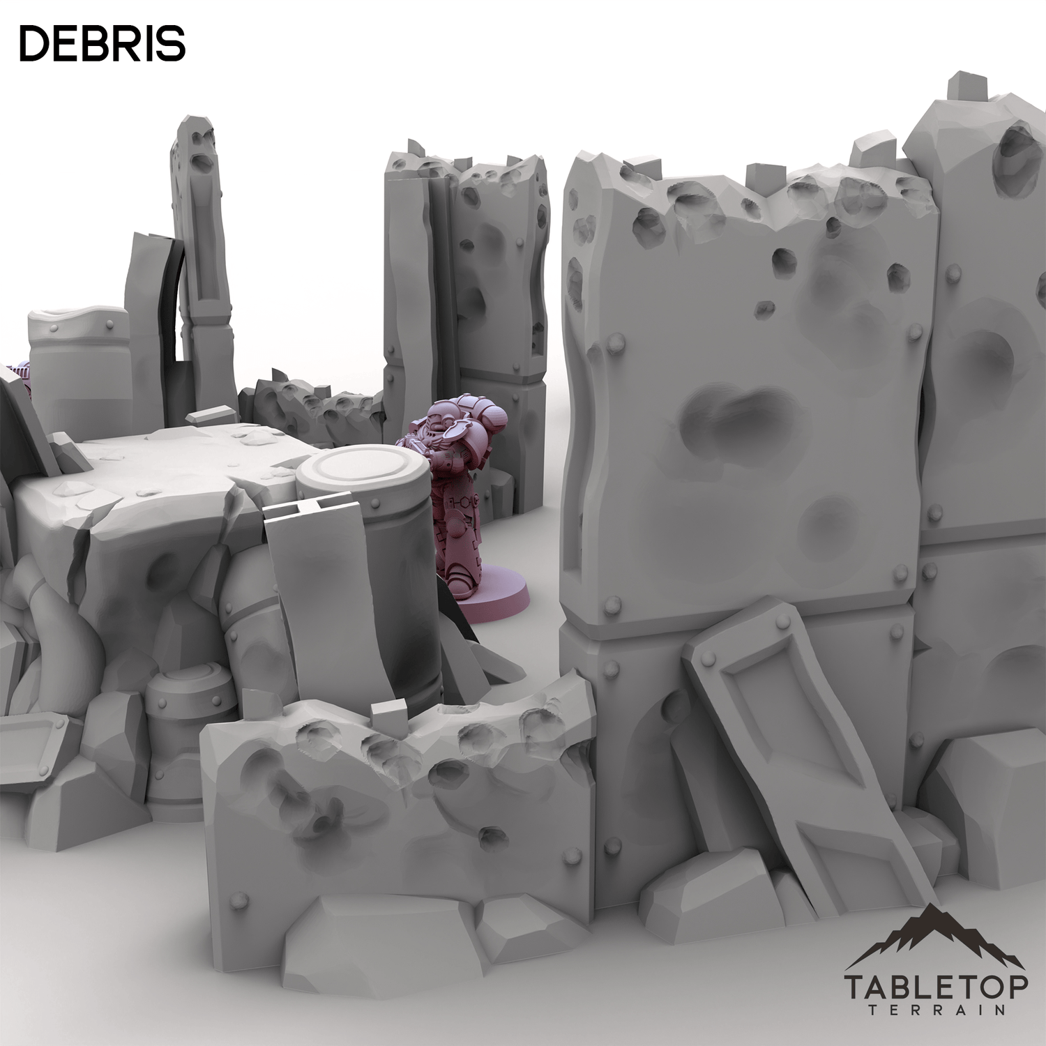 These pieces of Debris adds gritty realism and battlefield clutter to your tabletop scenes. Scattered wreckage, broken machinery, shattered walls, and fallen panels create dynamic cover and block lines of sight in natural, chaotic ways.