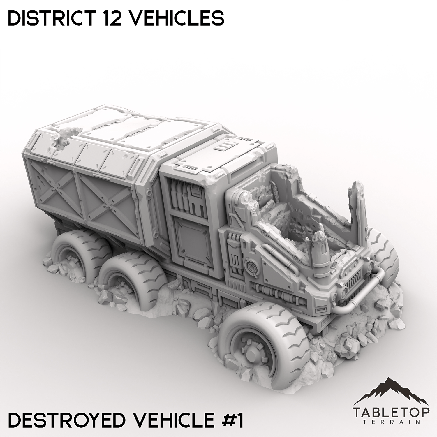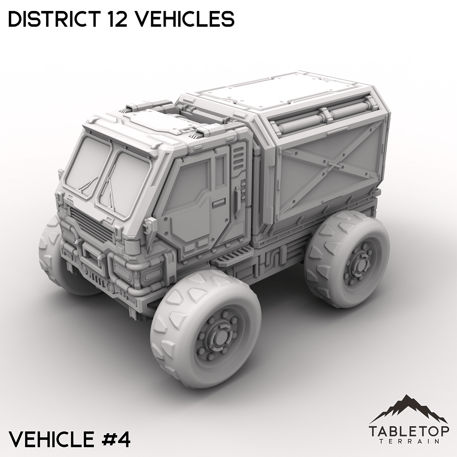 The District 12 Vehicles set features a rugged fleet of trucks, built for the harshest environments. These heavy-duty vehicles boast reinforced chassis, oversized wheels, plenty of space for hauling cargo, fluids or warriors. Some have even been knocked out in combat. Buy each one individually or the whole set at a discount.