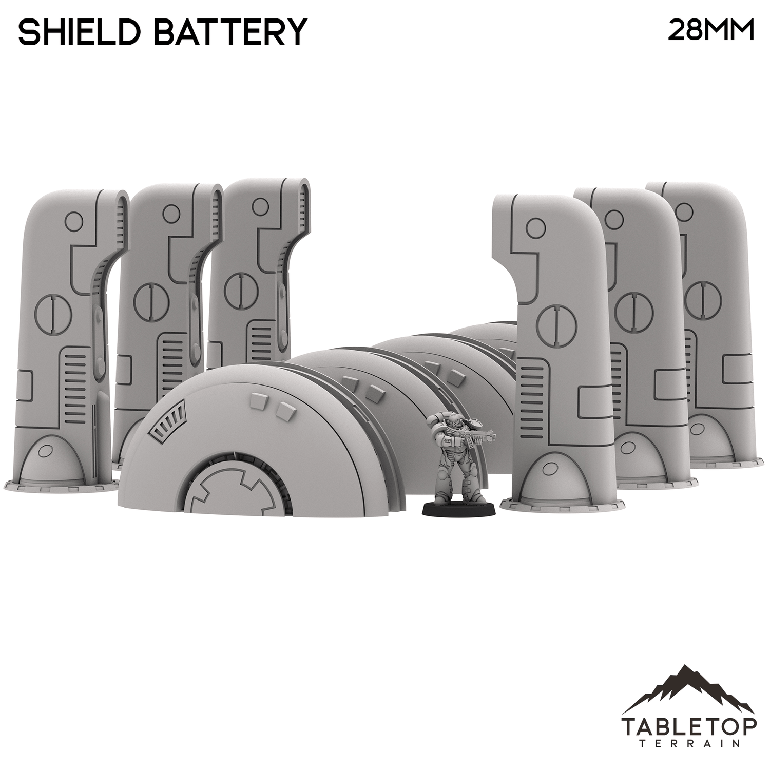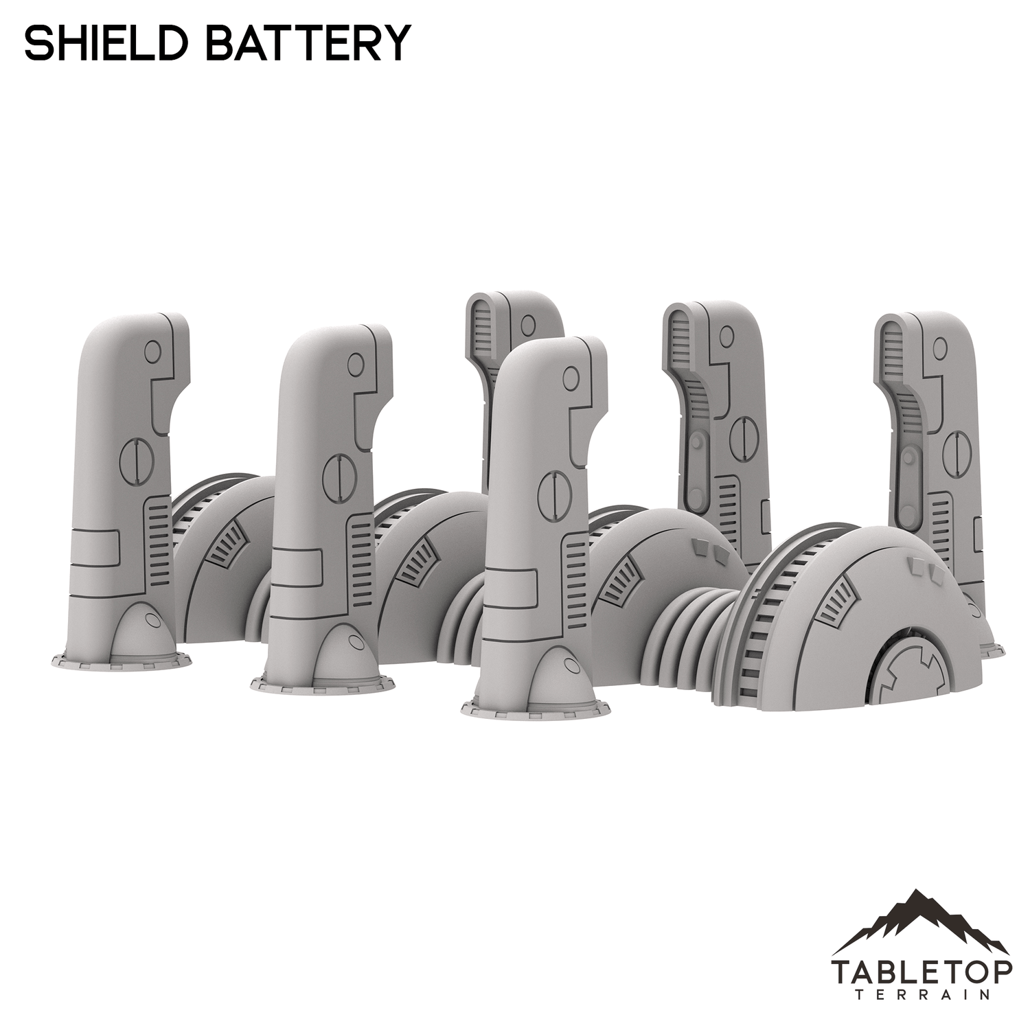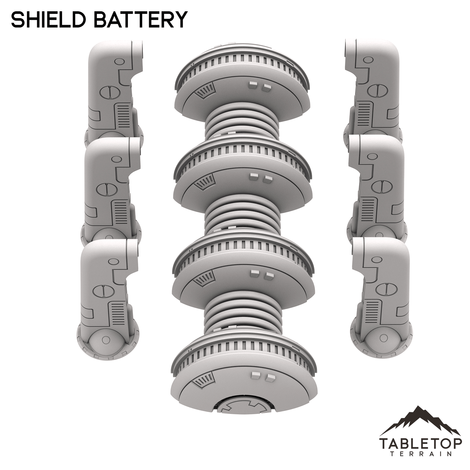 The Shield Battery is a modular shield generation battery. It comes with 6 external vents and four turbines. The pieces line up together to form the generator and do not require assembly.