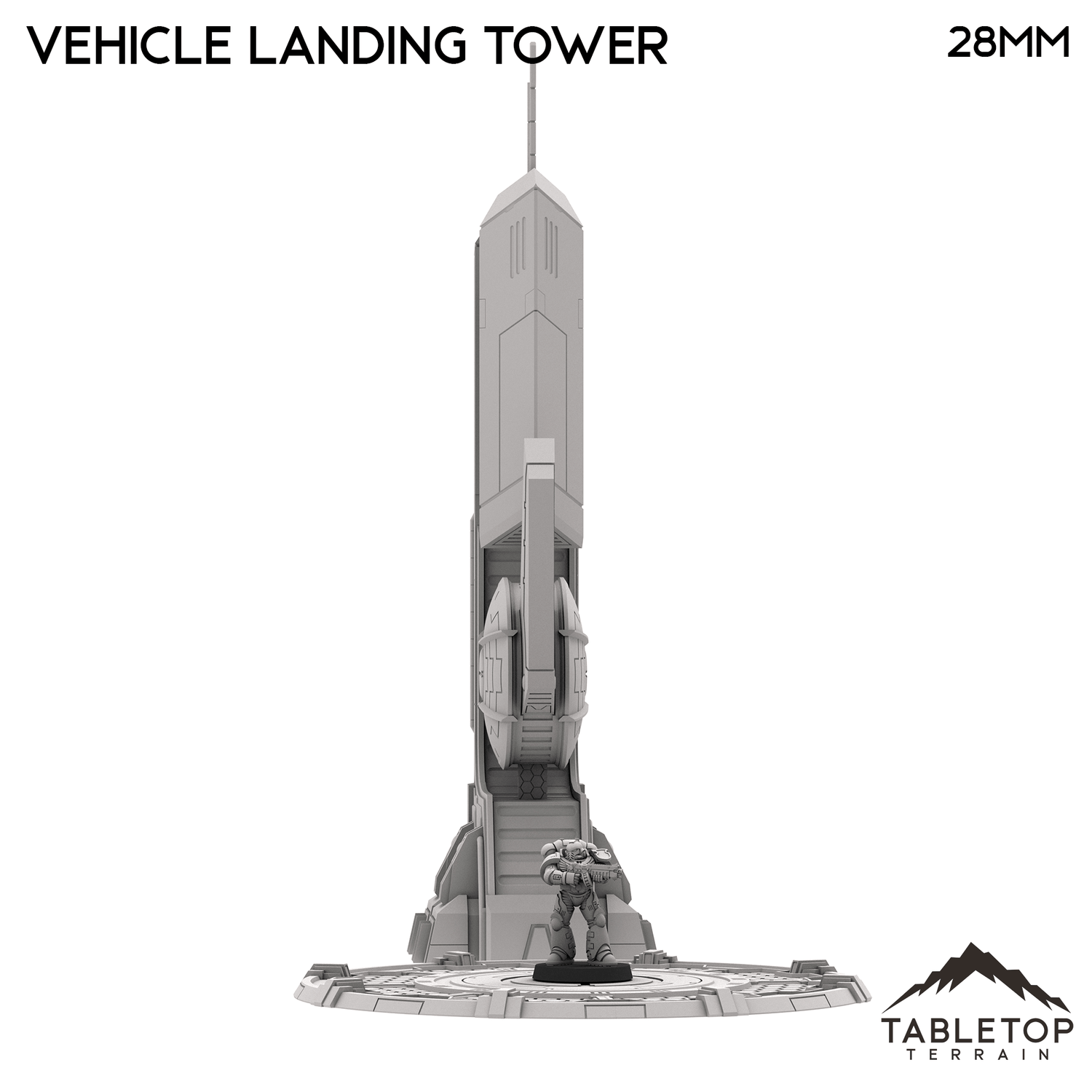In 28mm scale, the tower measures 140x84x315mm / 5.5x3.3x12.4 inches.