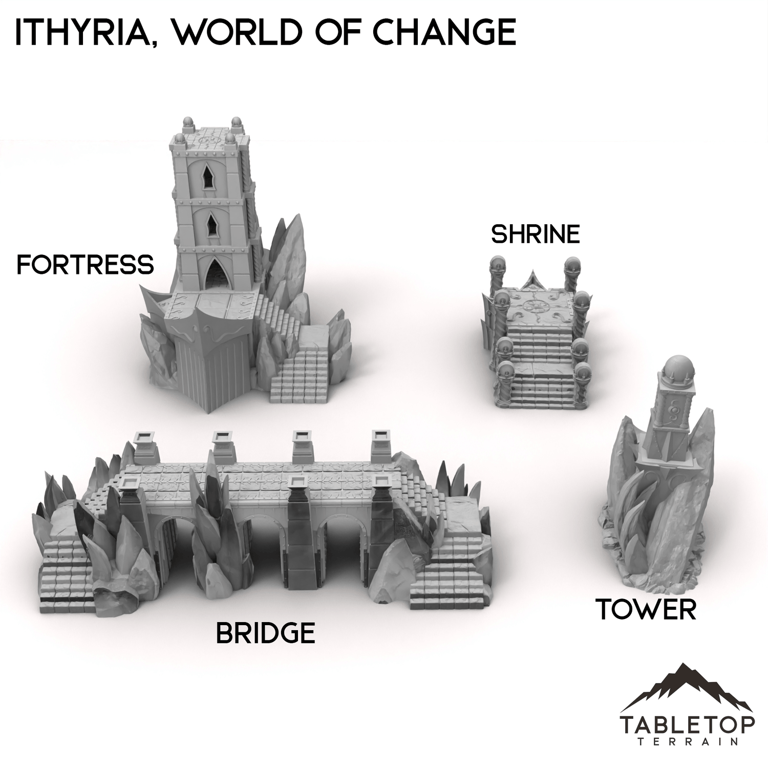 Explore the mystical realm of "Ithyria: World of Change" where decaying buildings are being taken over by nature's magic. Crystals of varying sizes and colors sprout from the ground. Ideal for fantasy adventures, this setting offers a unique environment for quests, magical discoveries, and epic battles in your tabletop campaigns.