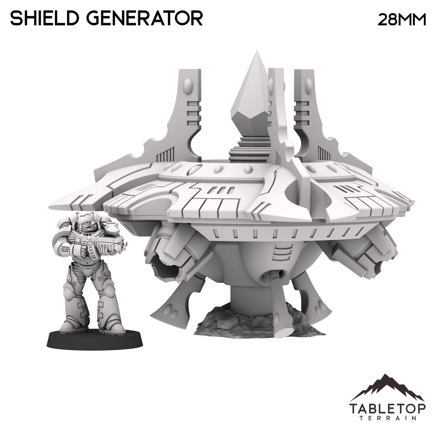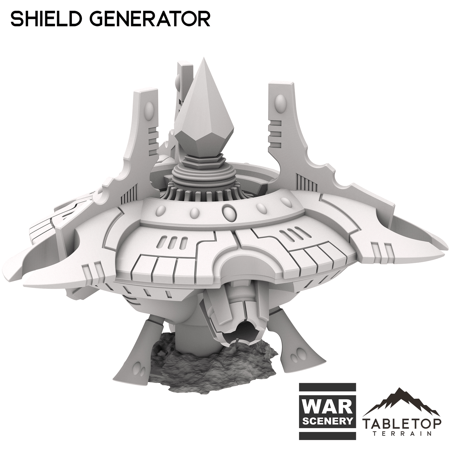 The Space Elves Shield Generator is a smaller, more defensible building that allows the creation and upkeep for a local shield. Careful placement of these shield can be used to leverage your army's power throughout the battlefield.