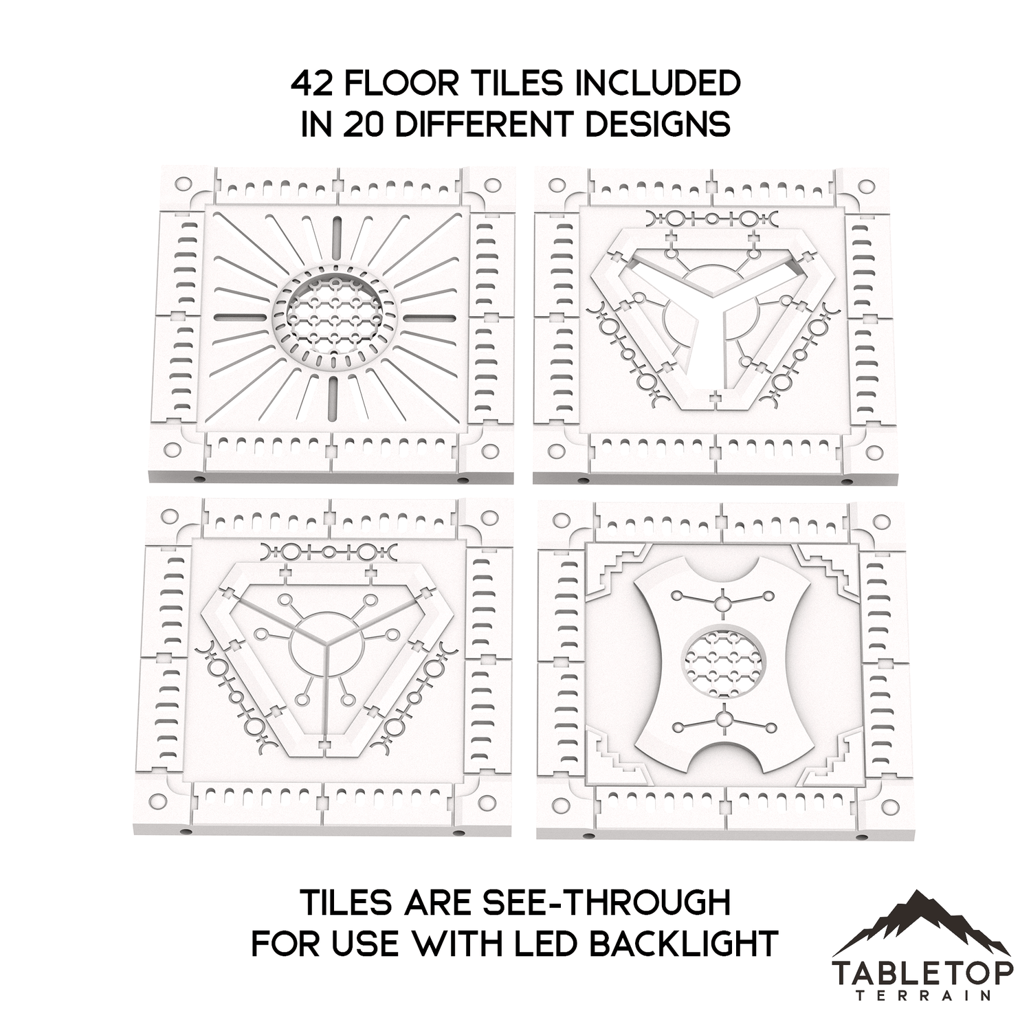Floor Set adds- 42 Floor tiles, 26 Floor Border Tiles, 56 Floor Risers for underneath LED lighting.