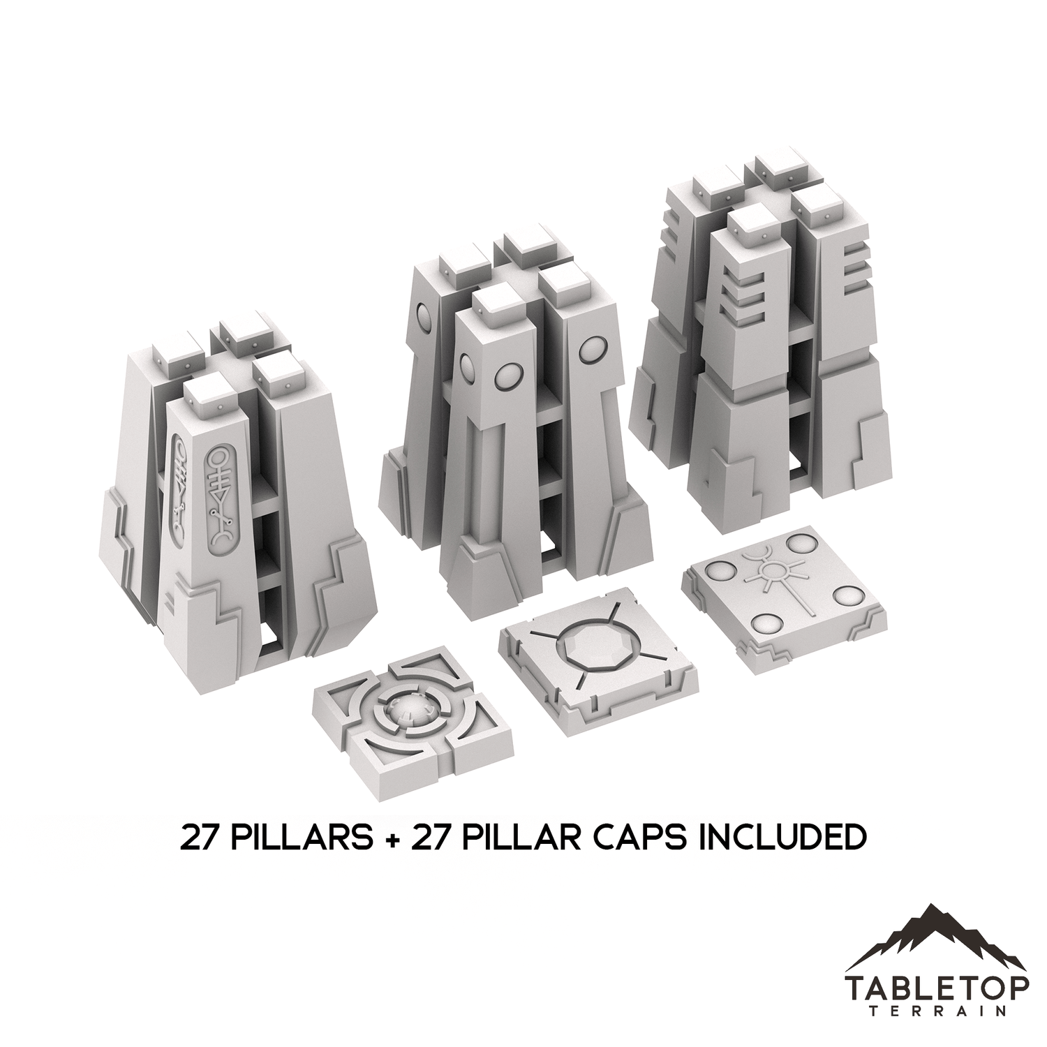 KT Set- 27 Pillars, 27 Pillar Caps, 14 Walls, 10 Doors, 4 Broken Walls, 2 Broken Beams, 2 Beams, 2 Dynamo, 2 Tanks, 2 Power Panels, 2 Pipes, 2 Control Panels.